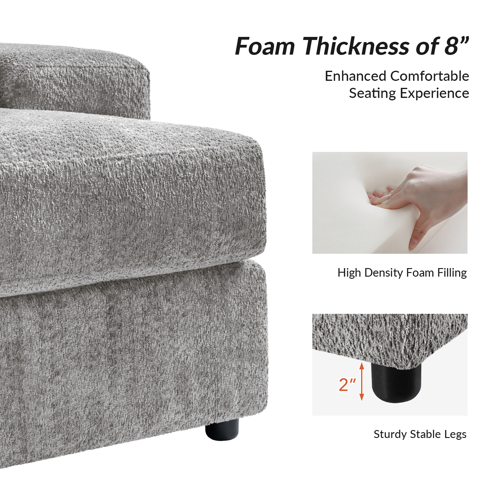 - Material: Chenille Fabric, Manufactured Wood, Plastic, Original Foam