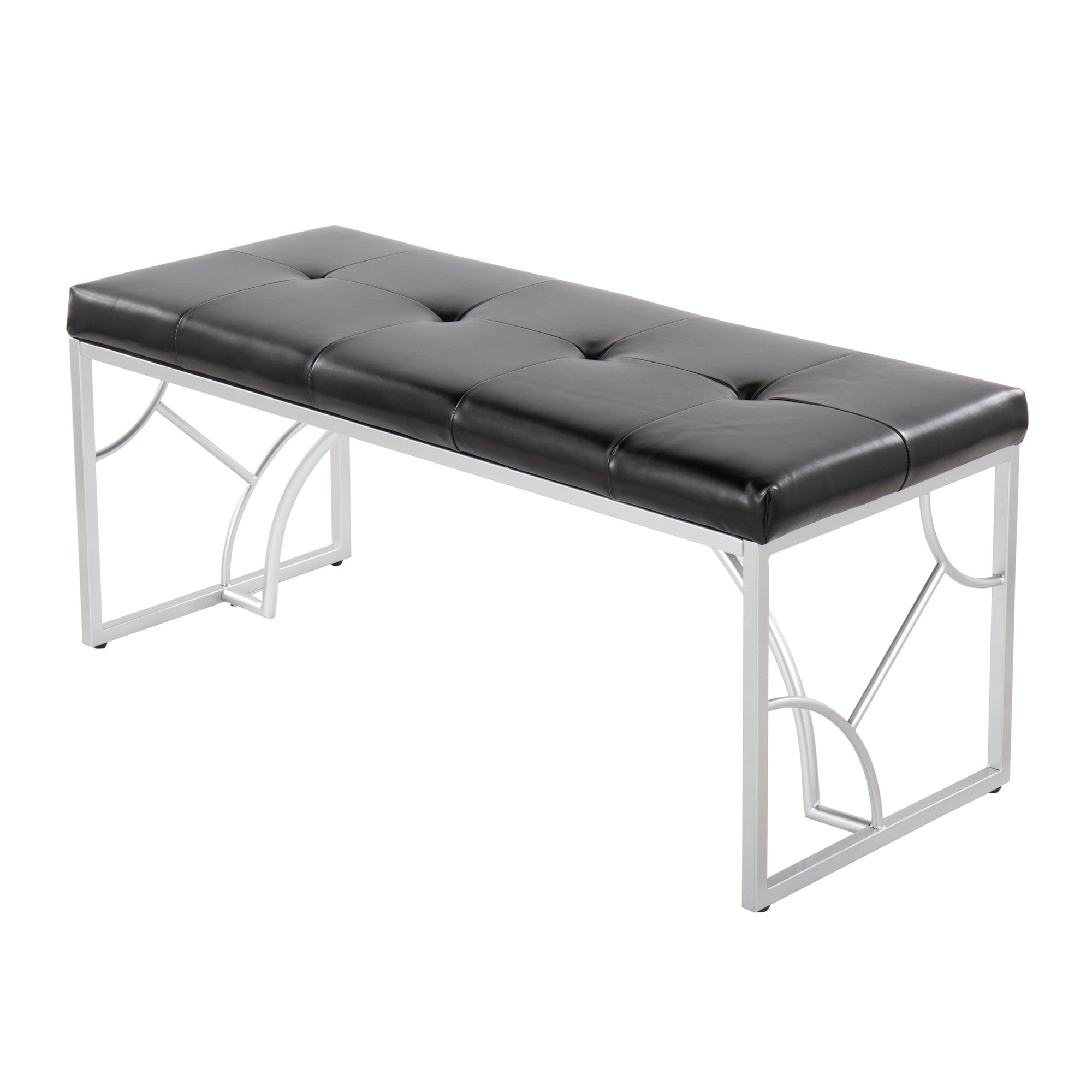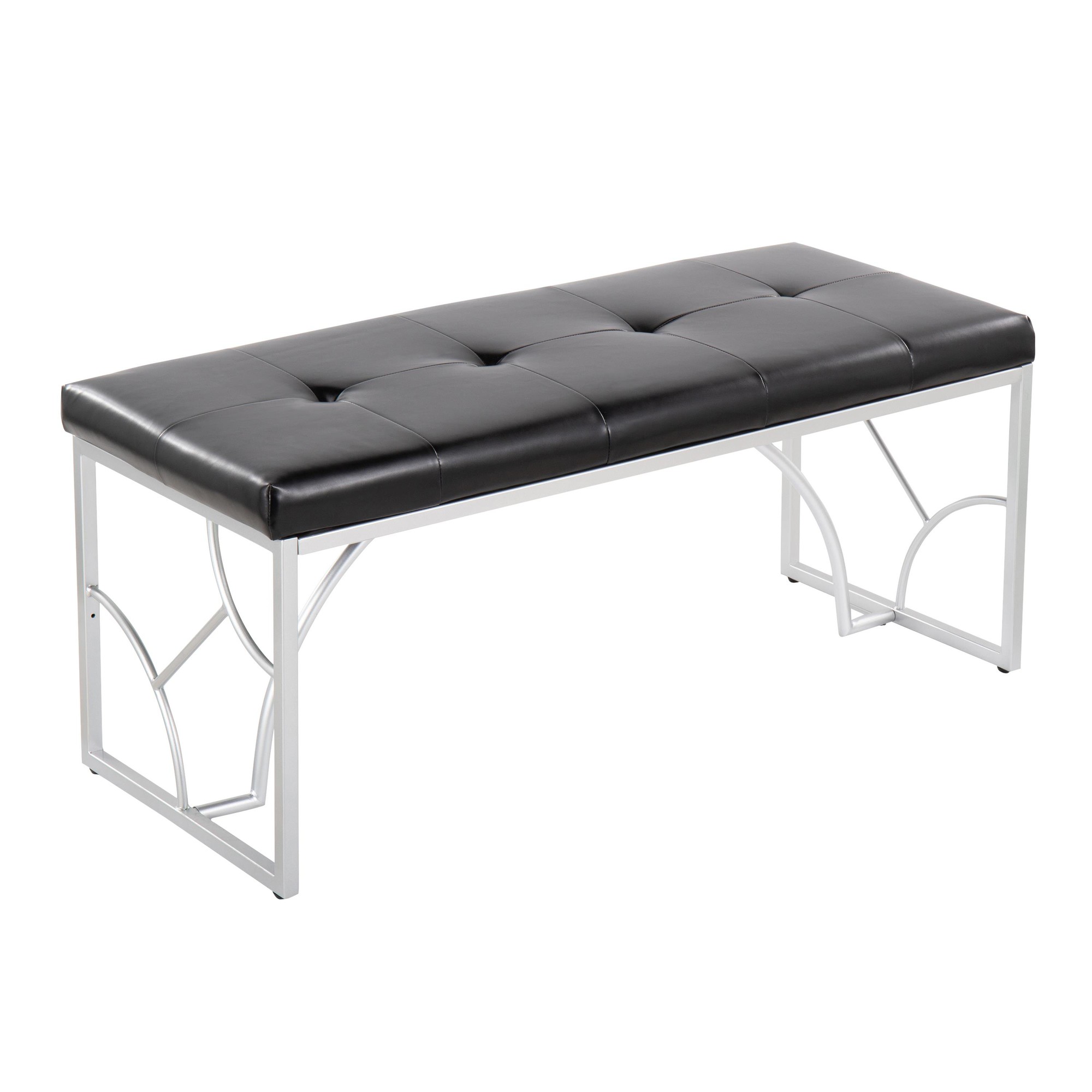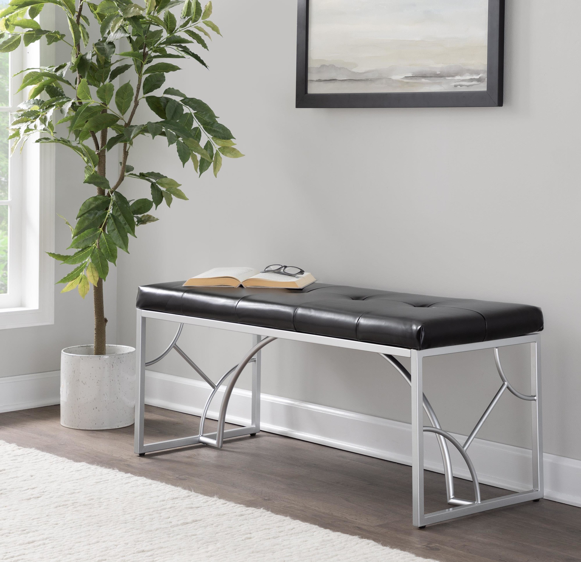 The Constellation Bench is a unique statement piece, adding modern elegance to any space. Its geometric silver metal frame and plush, padded, upholstered cushion provide both style and comfort. Perfect for an entryway, the foot of a bed, or as dining table seating, this bench elevates any room.