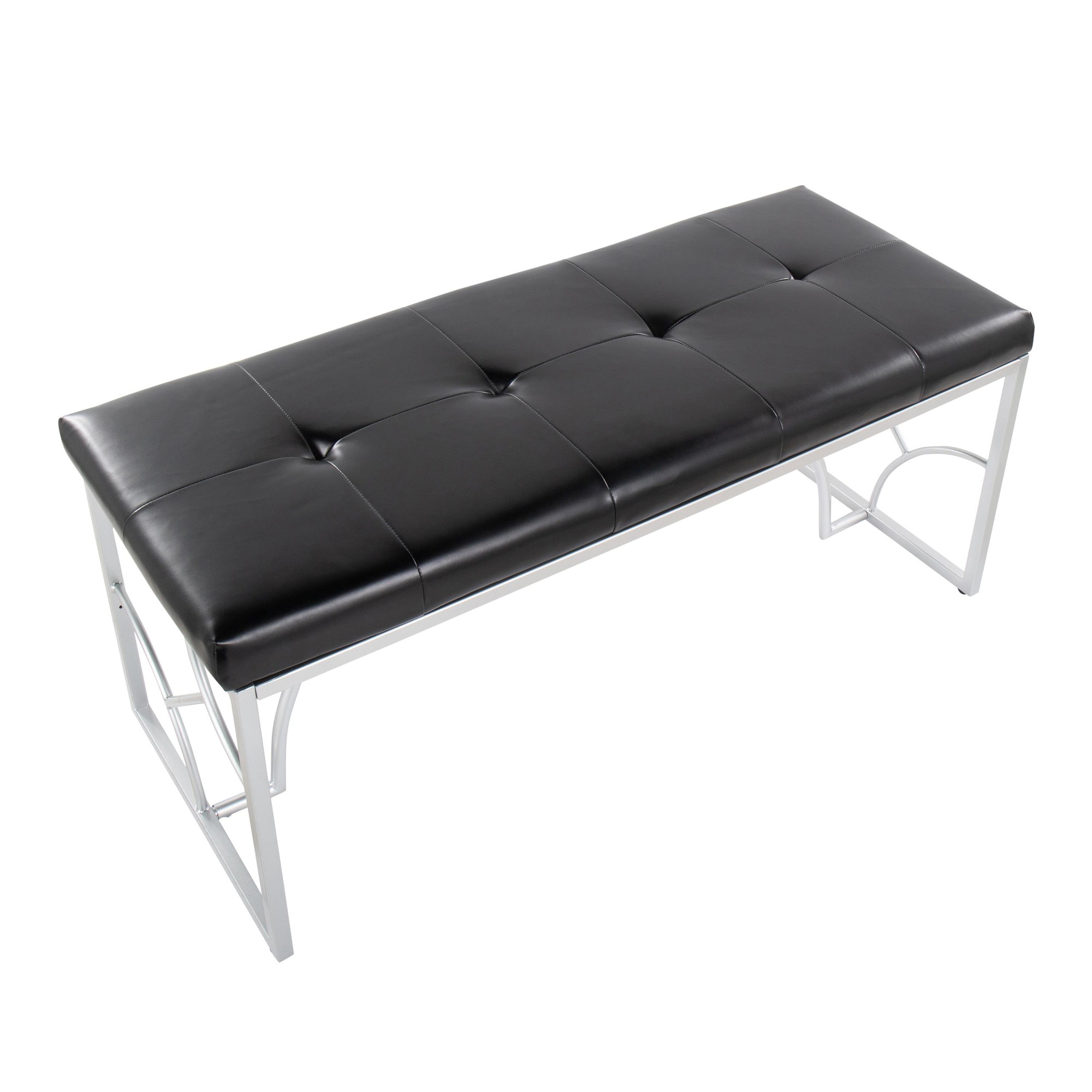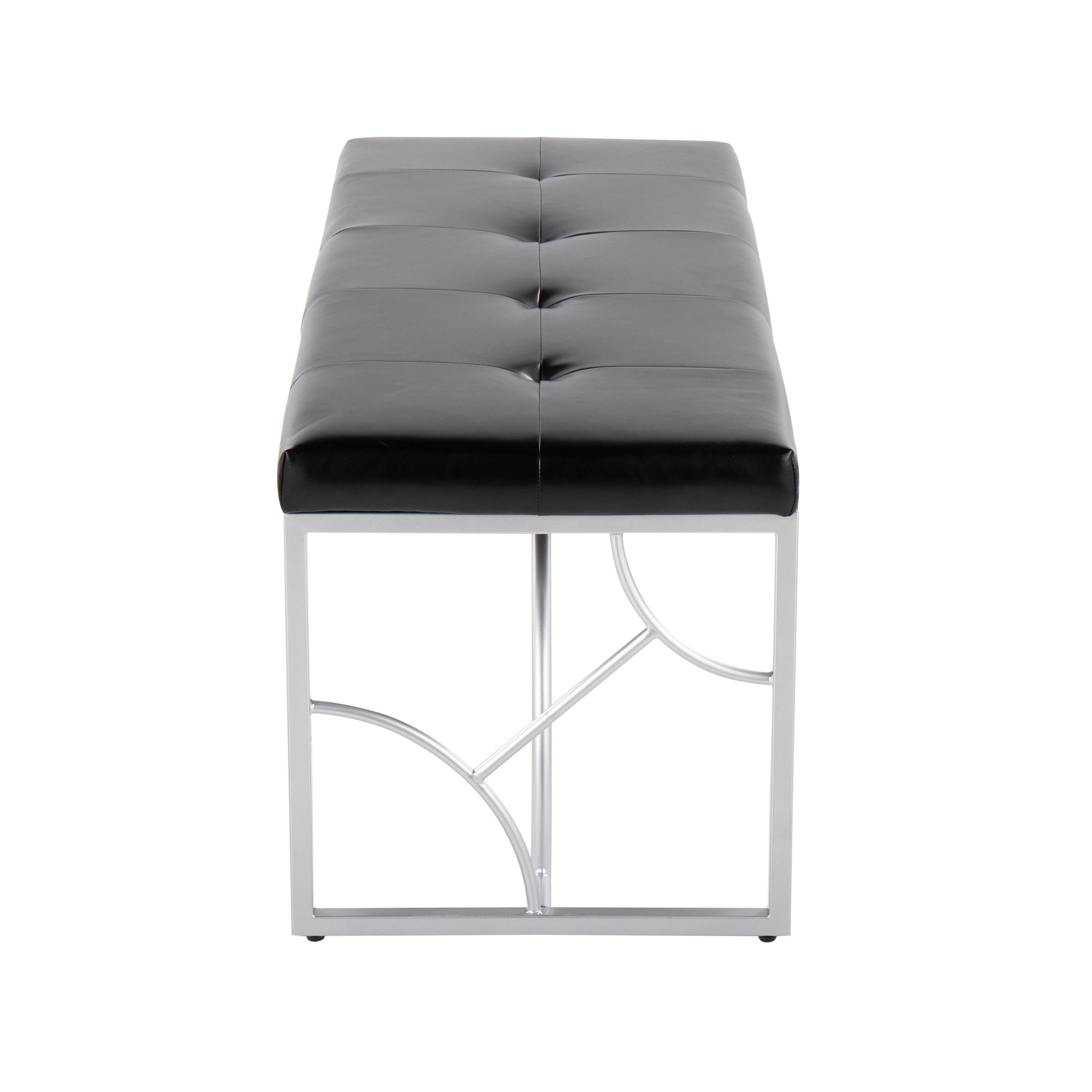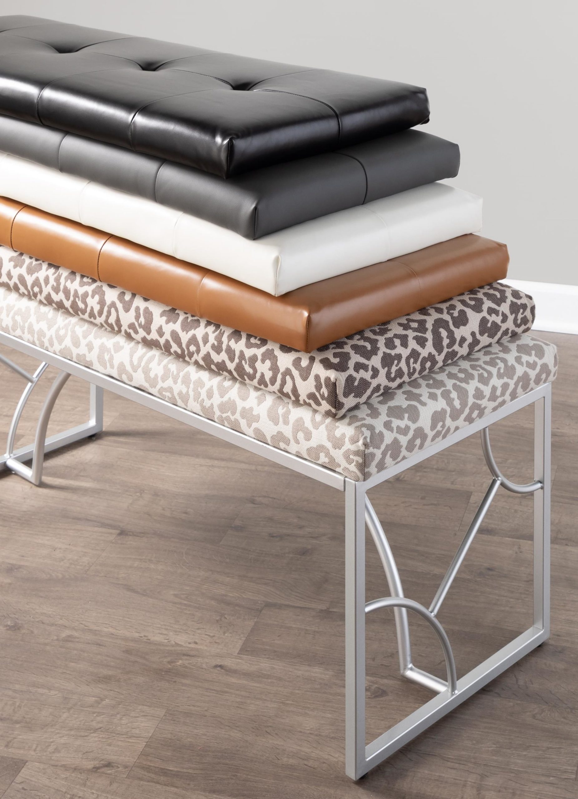 The Constellation Bench is a unique statement piece, adding modern elegance to any space. Its geometric silver metal frame and plush, padded, upholstered cushion provide both style and comfort. Perfect for an entryway, the foot of a bed, or as dining table seating, this bench elevates any room.