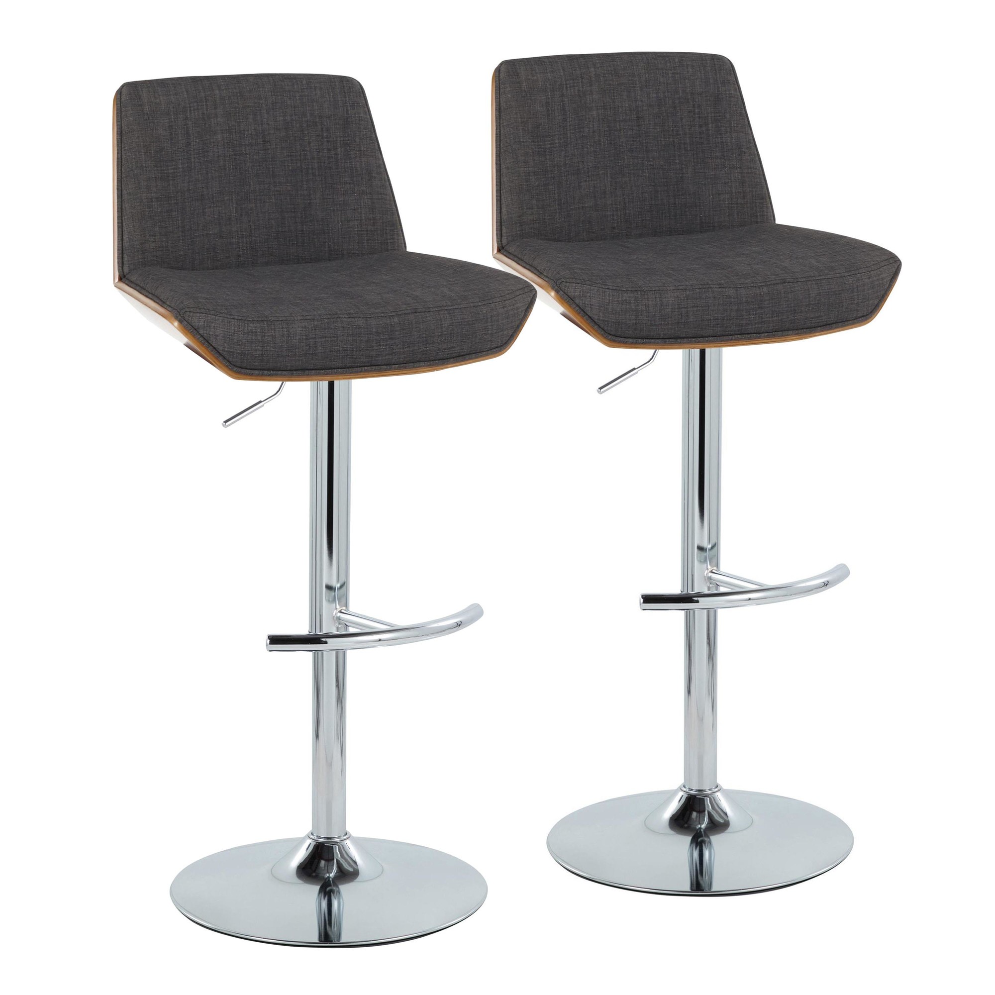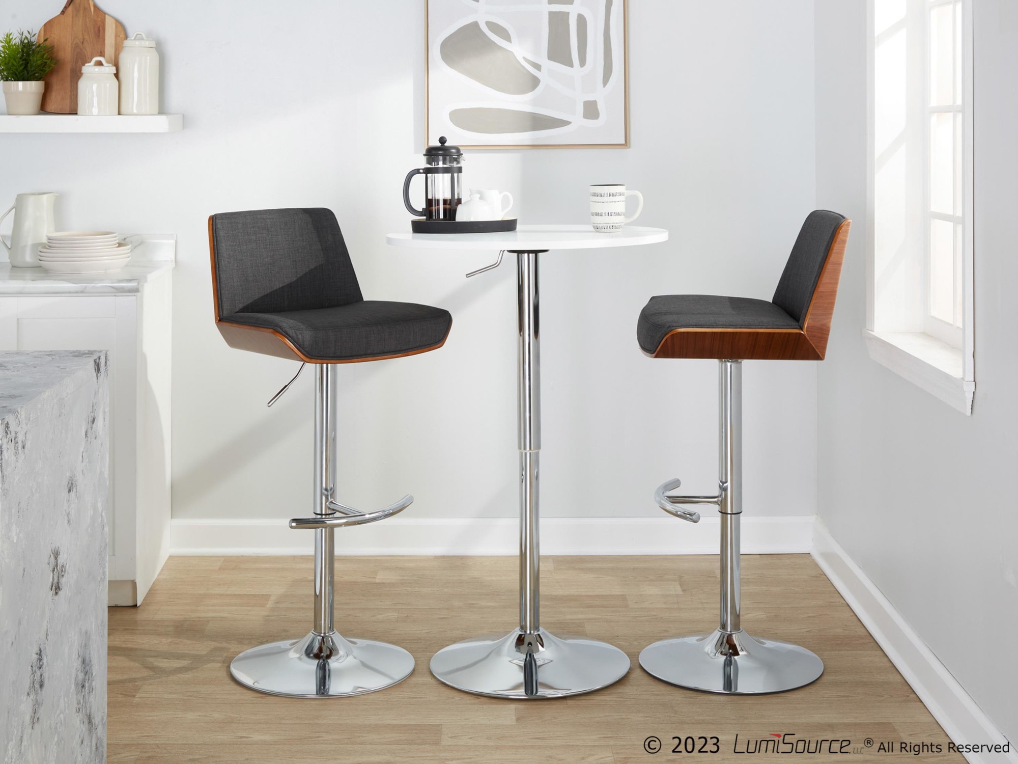 The Corazza Adjustable Barstools invite you to sit back and relax. These stools feature a wide, welcoming seat with comfortable upholstery and a convenient swivel function. An adjustable height mechanism and built-in footrest add to the modern and functional design.