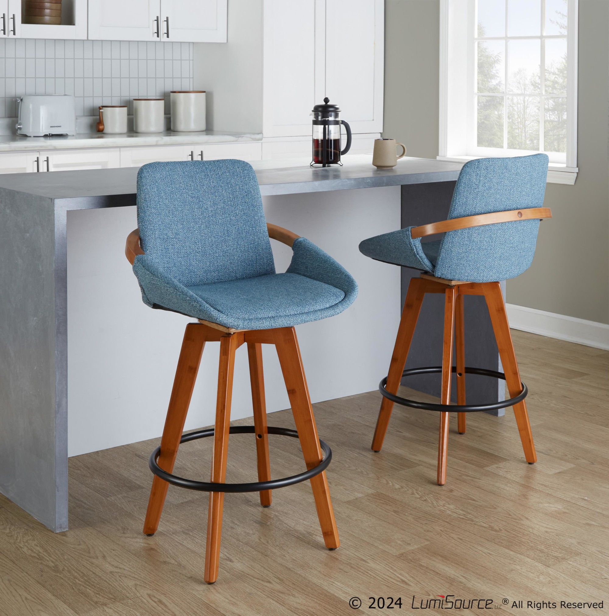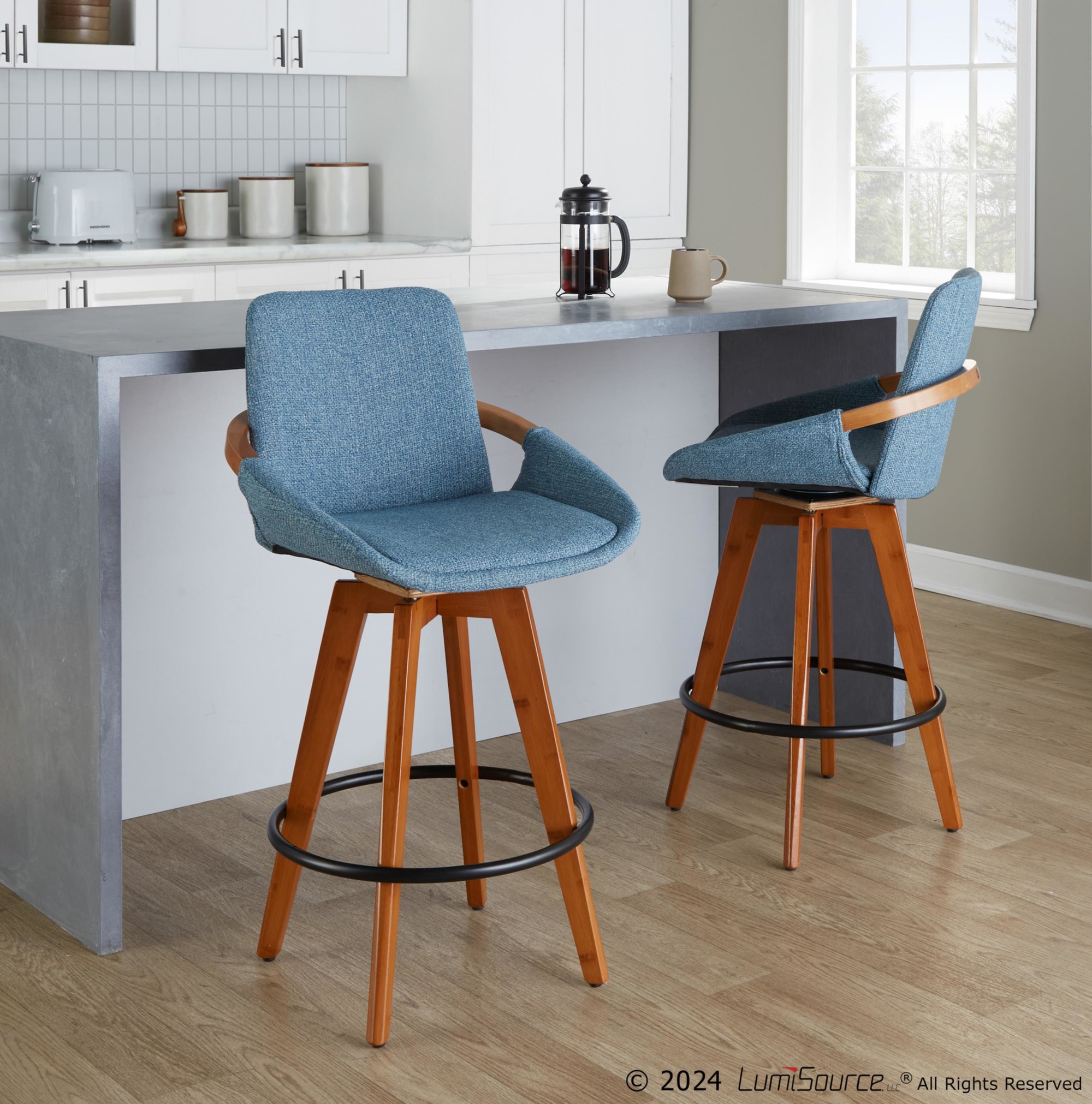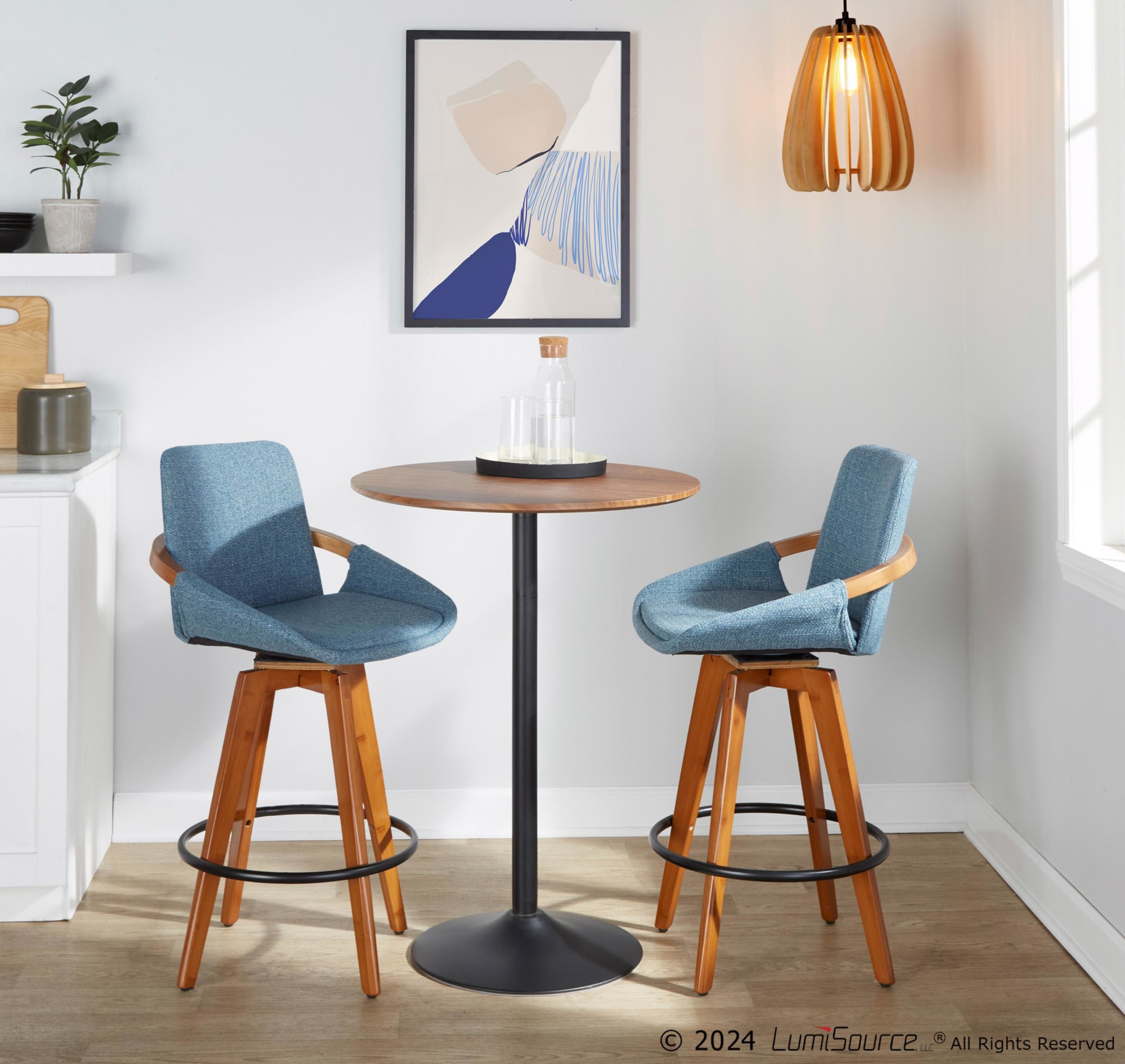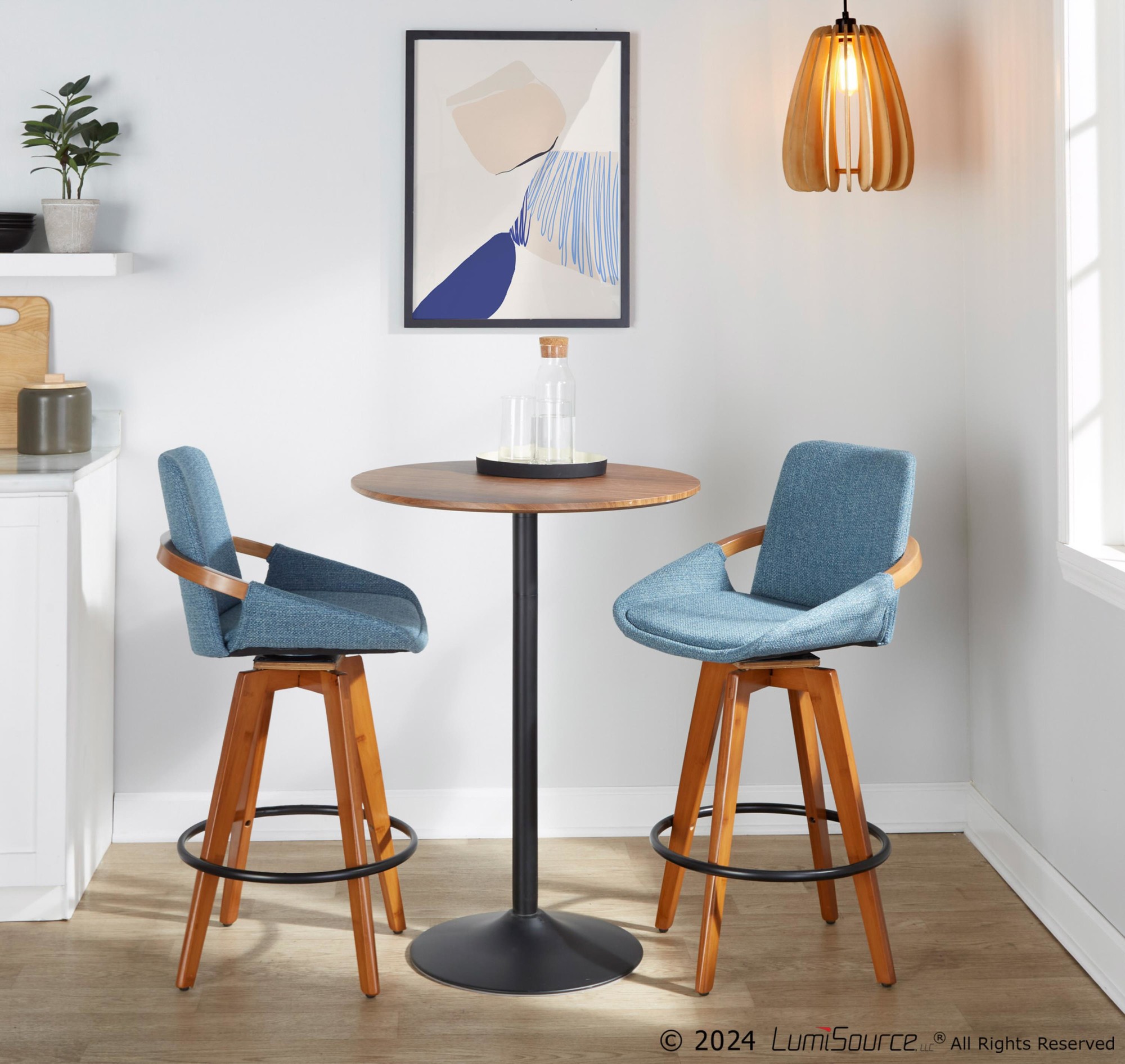 - Color: Walnut Bamboo, Blue Noise Fabric, Black Metal