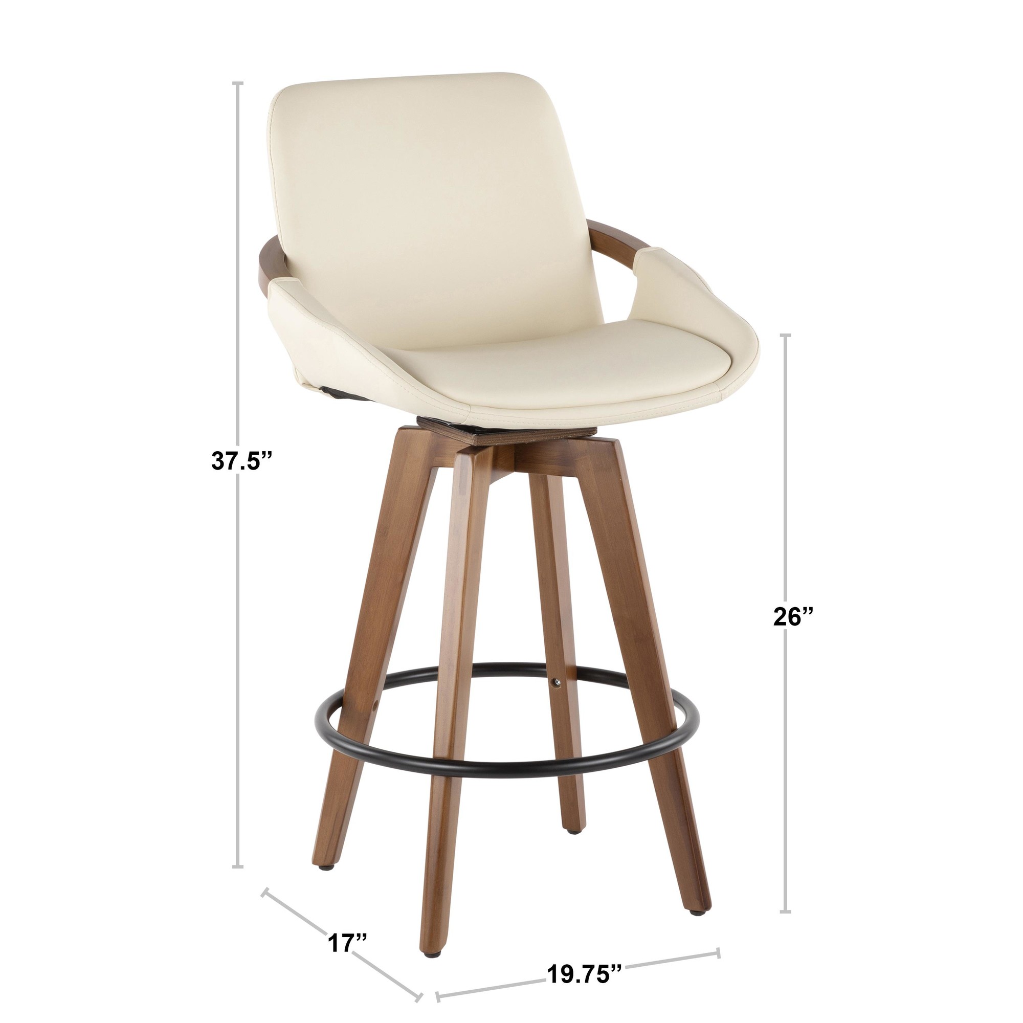The Cosmo 26-Inch Counter Stool is mid-century style and comfort rolled into one! This stool features a stylish fabric seat, accented by sleek walnut wood armrests and legs. Enjoy smooth swivel capability, making it a perfect addition to your man cave bar area. Choose the color that best fits your space and enjoy the blend of style and relaxation.