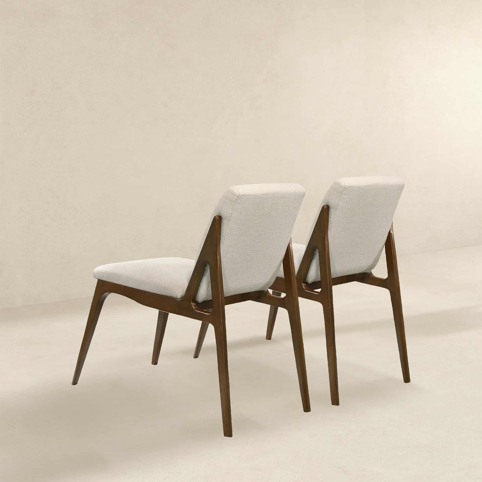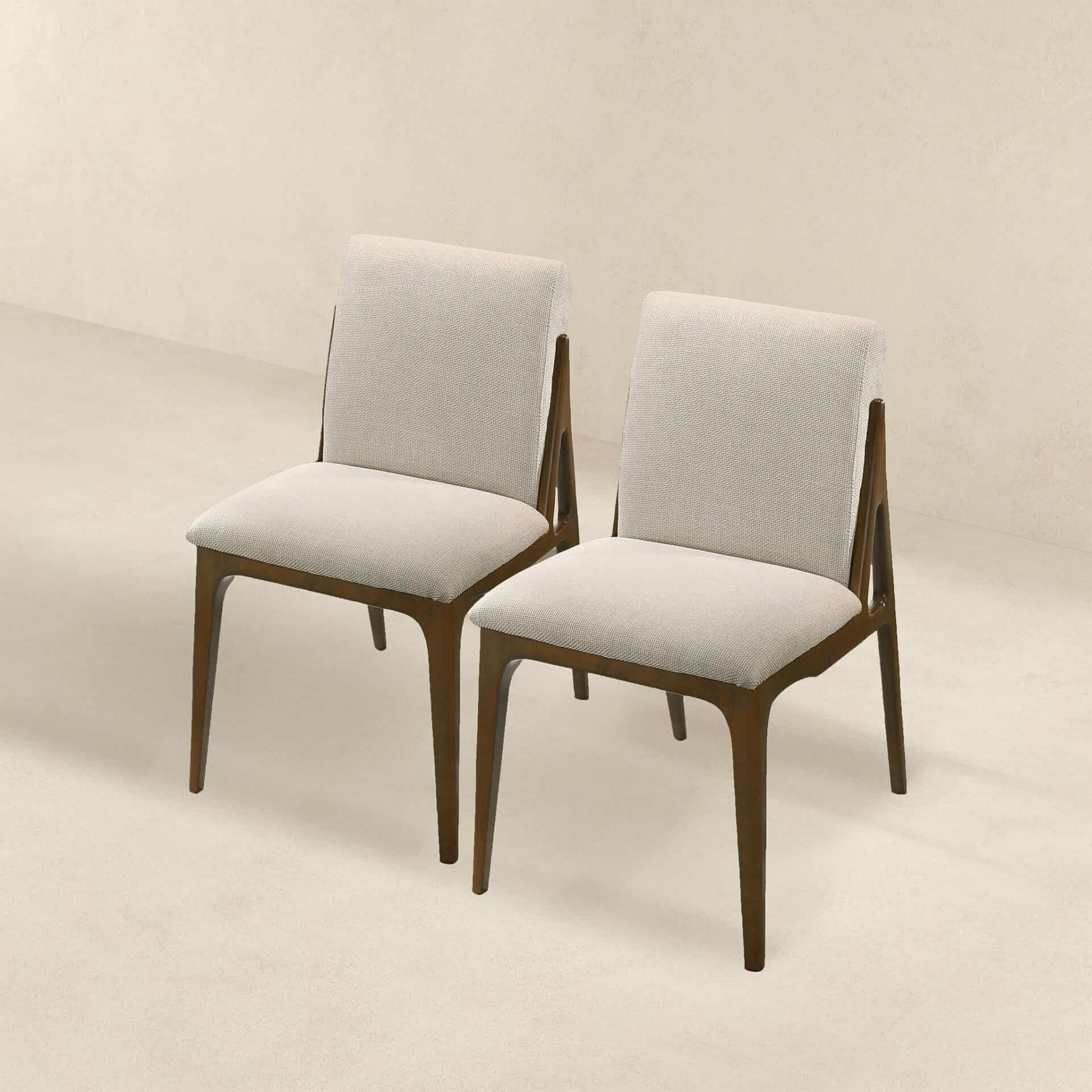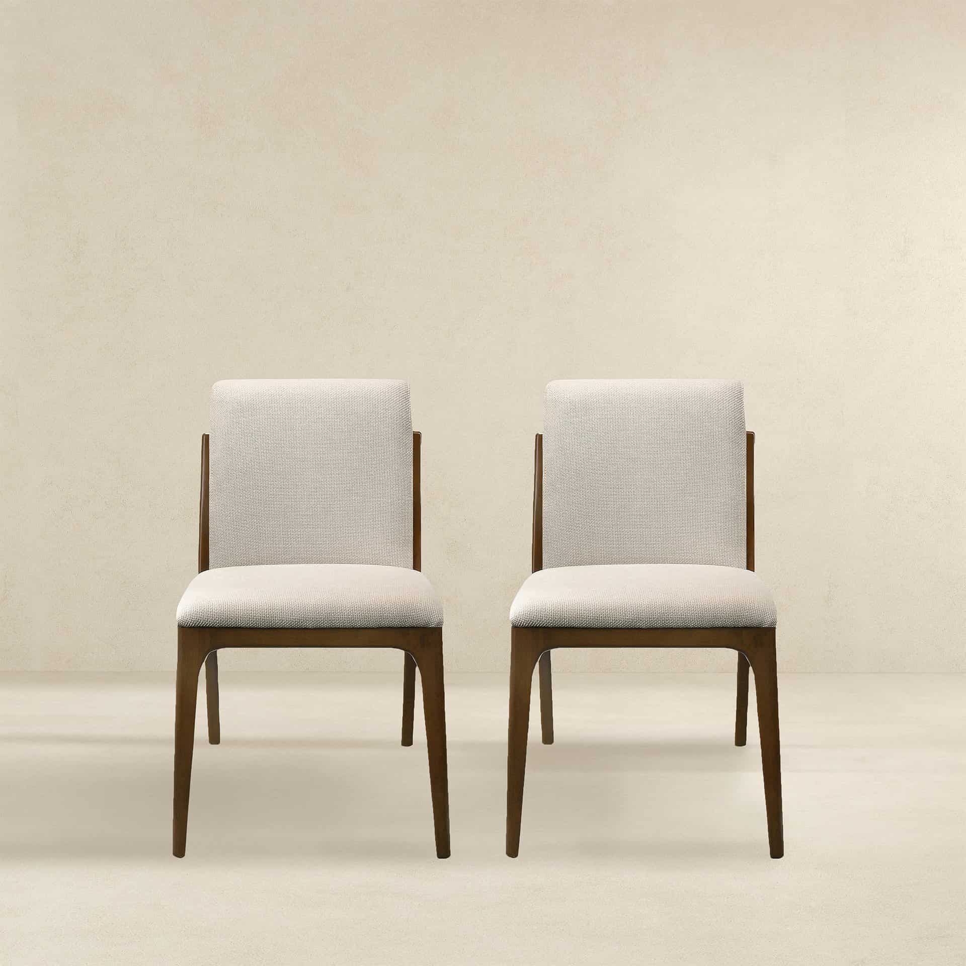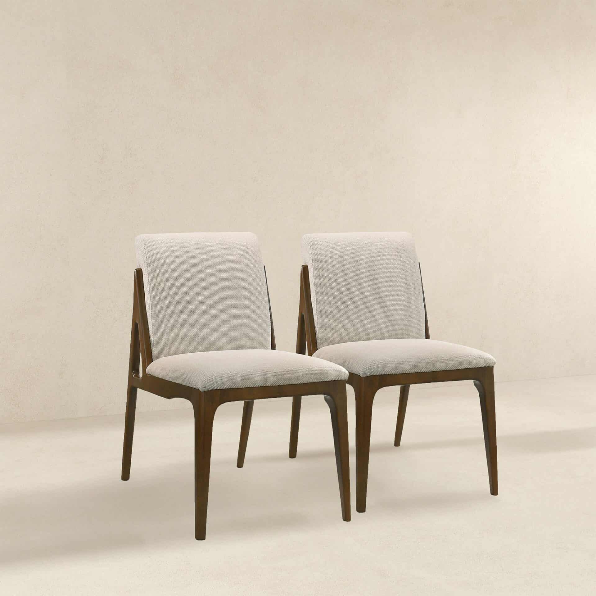 Presenting the Cream Fabric Contemporary Dining Chairs, a perfect blend of comfort, style, and versatility designed to elevate your living spaces. These dining chairs feature a sturdy walnut-colored hardwood base that adds a touch of mid-century contemporary elegance to your home. Upholstered in luxurious cream fabric, this set of two chairs delivers both sophistication and comfort, making them an ideal choice for your dining room or any other area where style meets functionality.