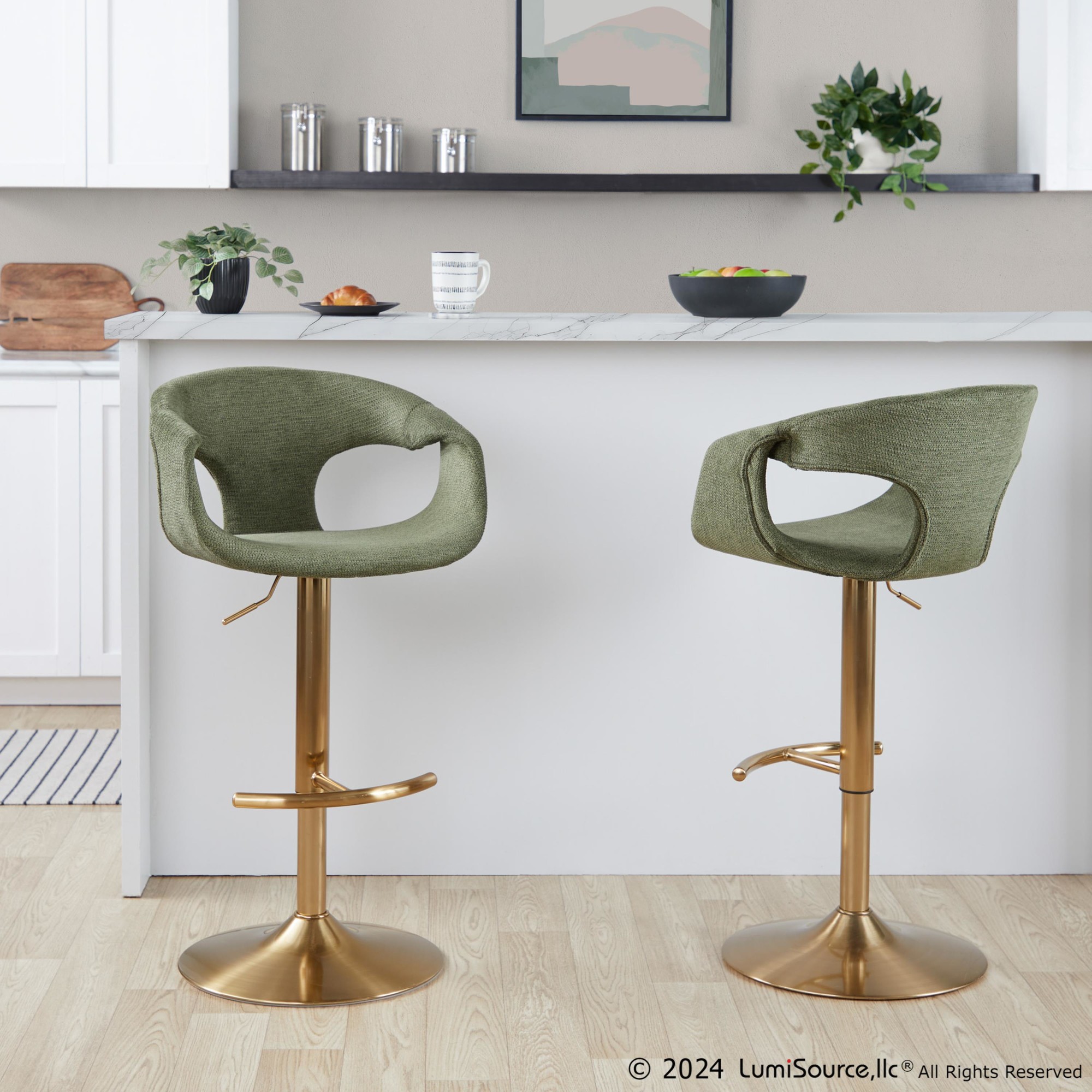 The Curva Adjustable Barstool seamlessly blends modern design with exceptional comfort, making it a sophisticated addition to any space. This stool features a stylish, fully-upholstered seat and a sleek, adjustable metal base. Enjoy the unique cut-out armrests and cushioned seat, designed to provide both style and unparalleled comfort. Elevate your kitchen or bar area with the perfect combination of form and function, creating an inviting and stylish atmosphere. This set includes two bar stools.