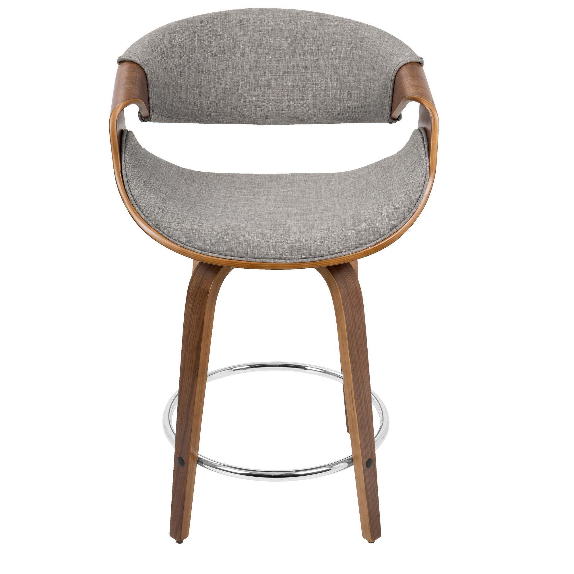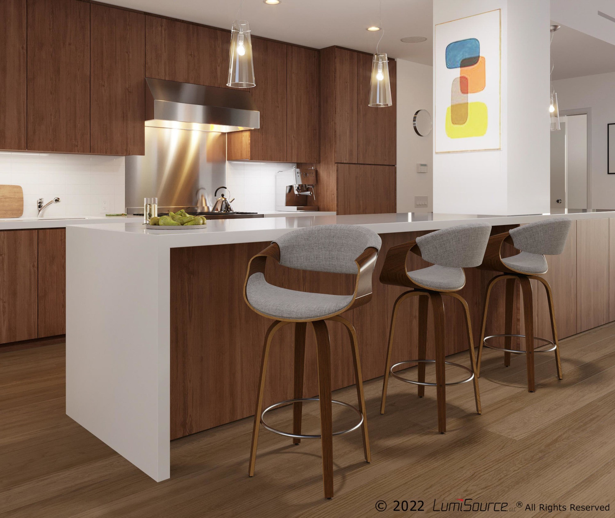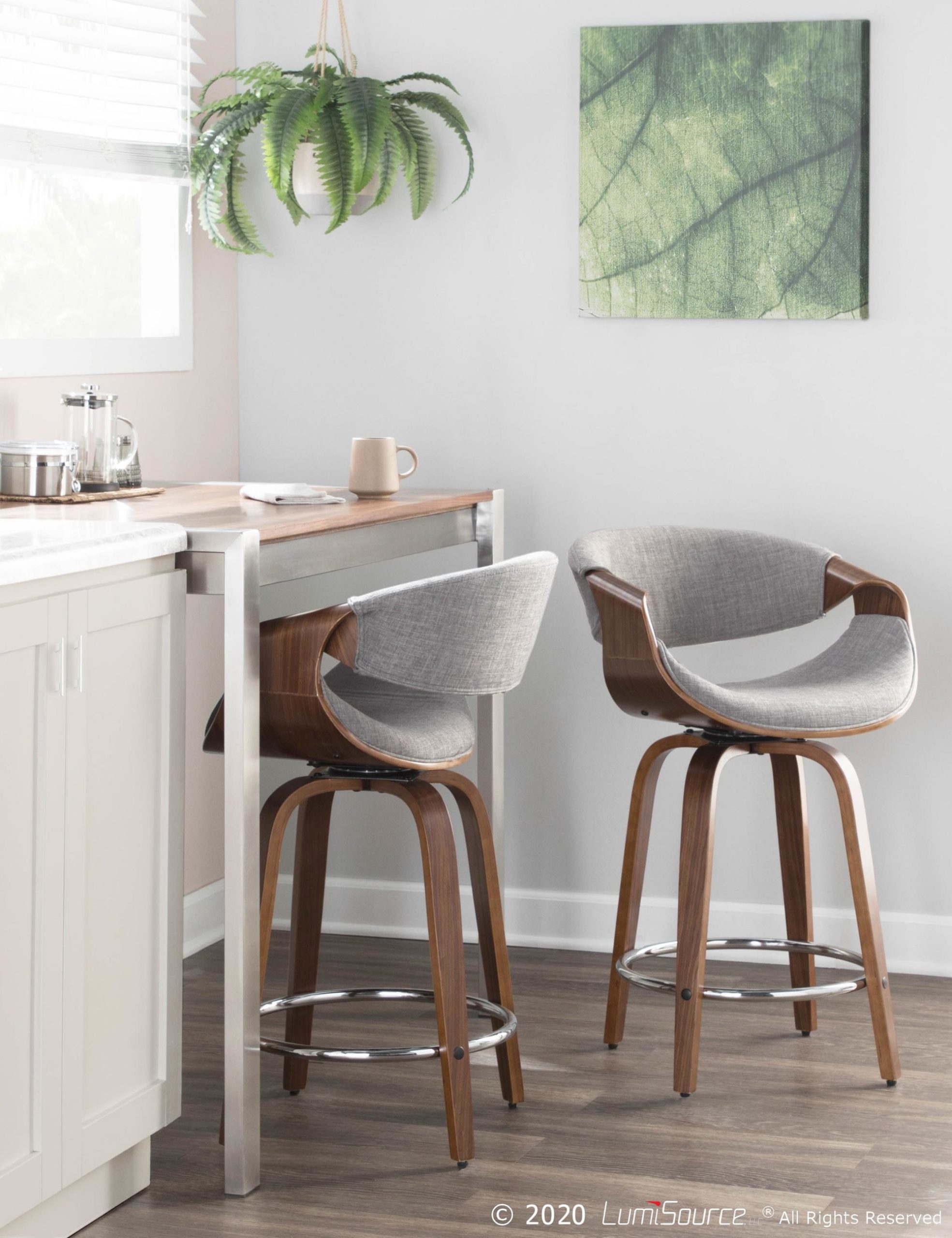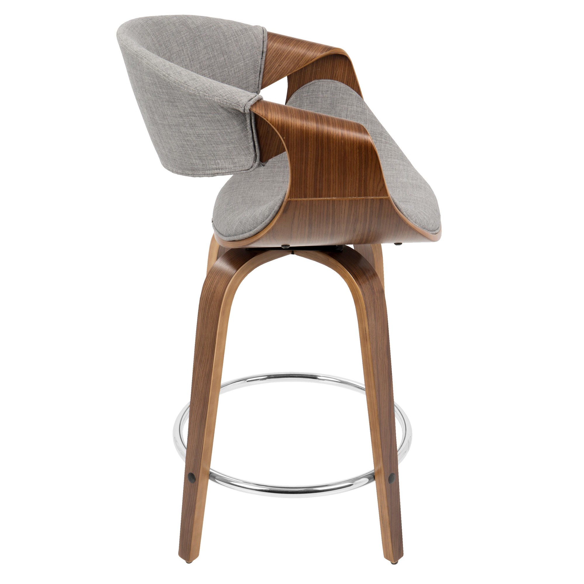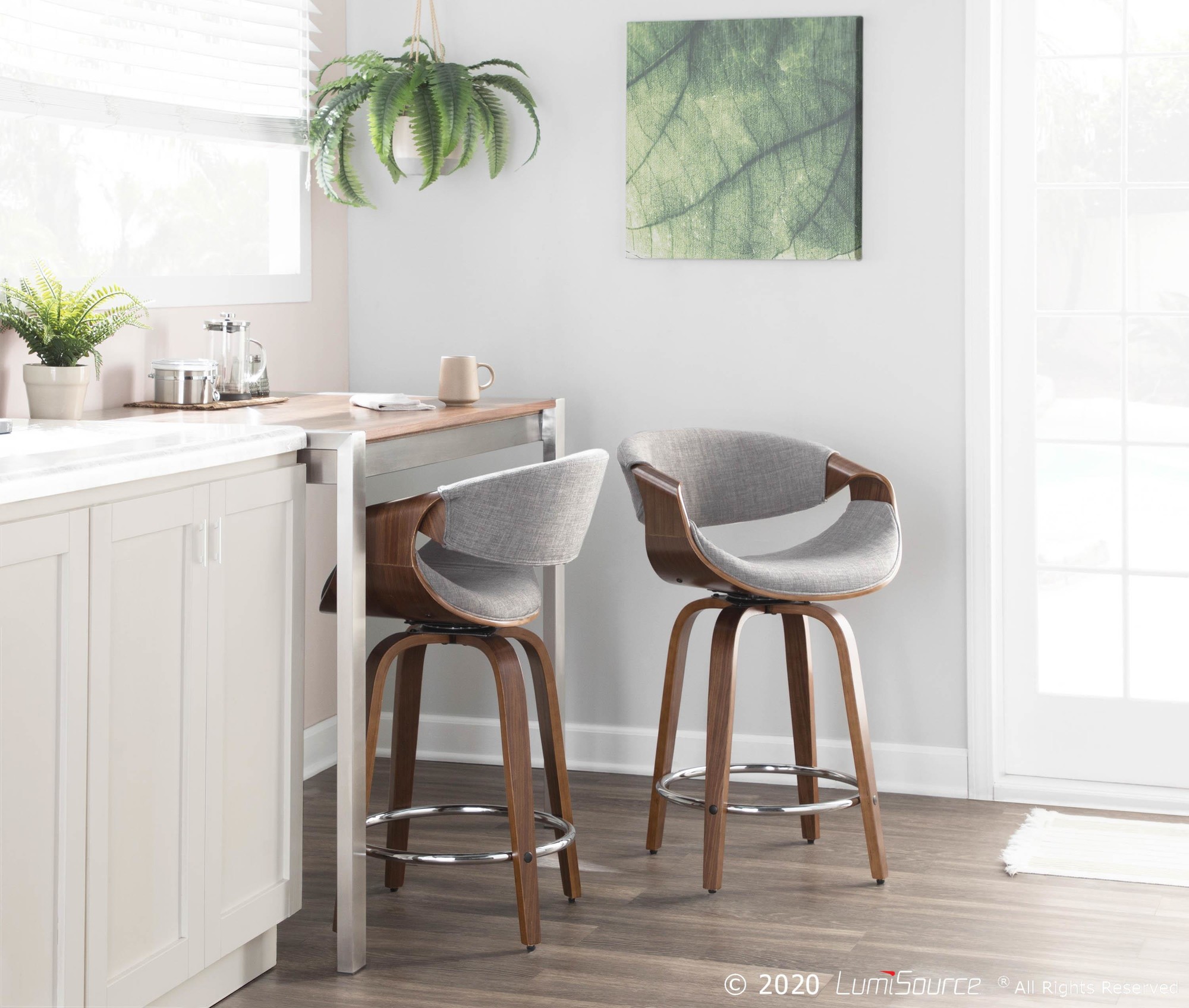 Curvini Mid-Century Modern Walnut and Grey Counter Stools (Set of 2)