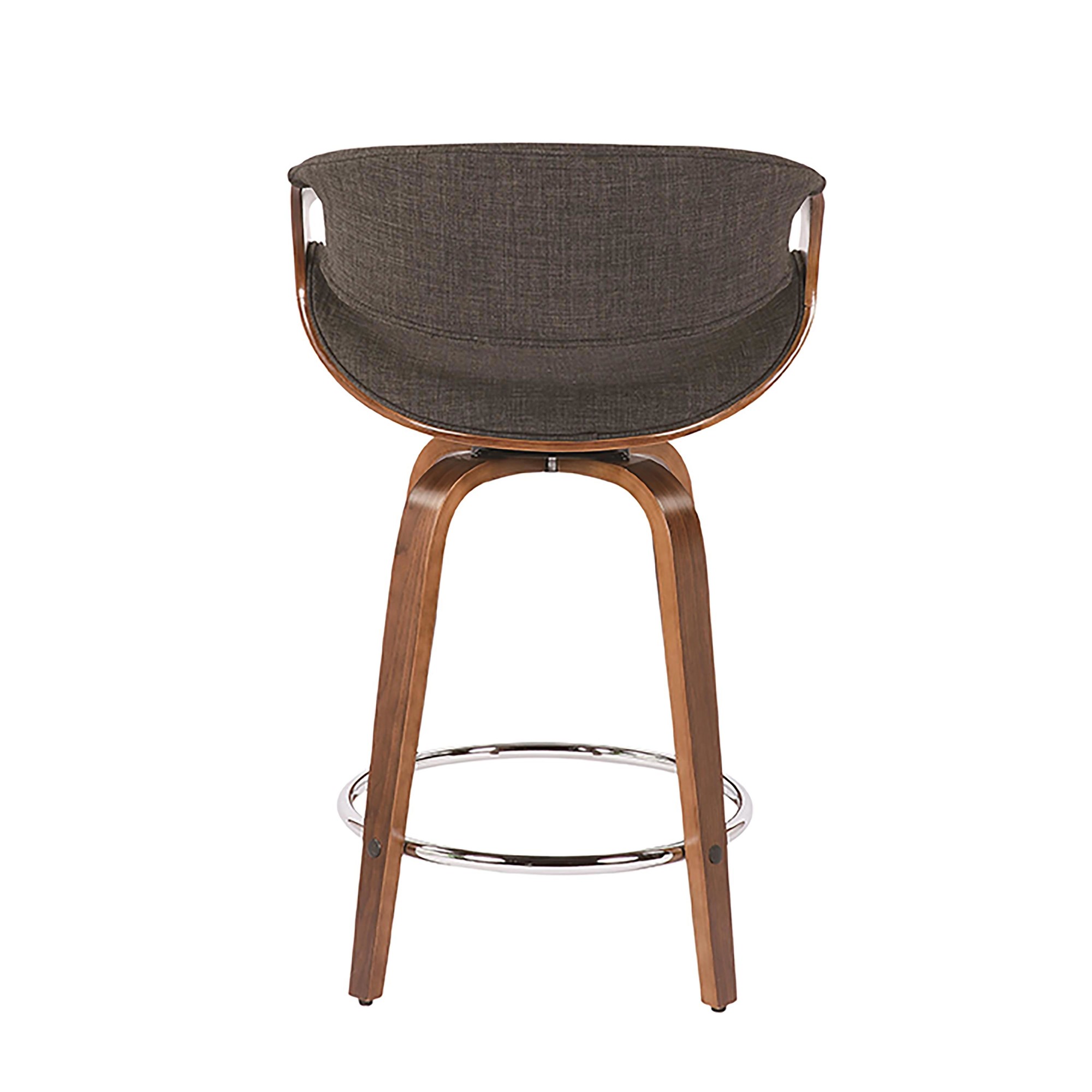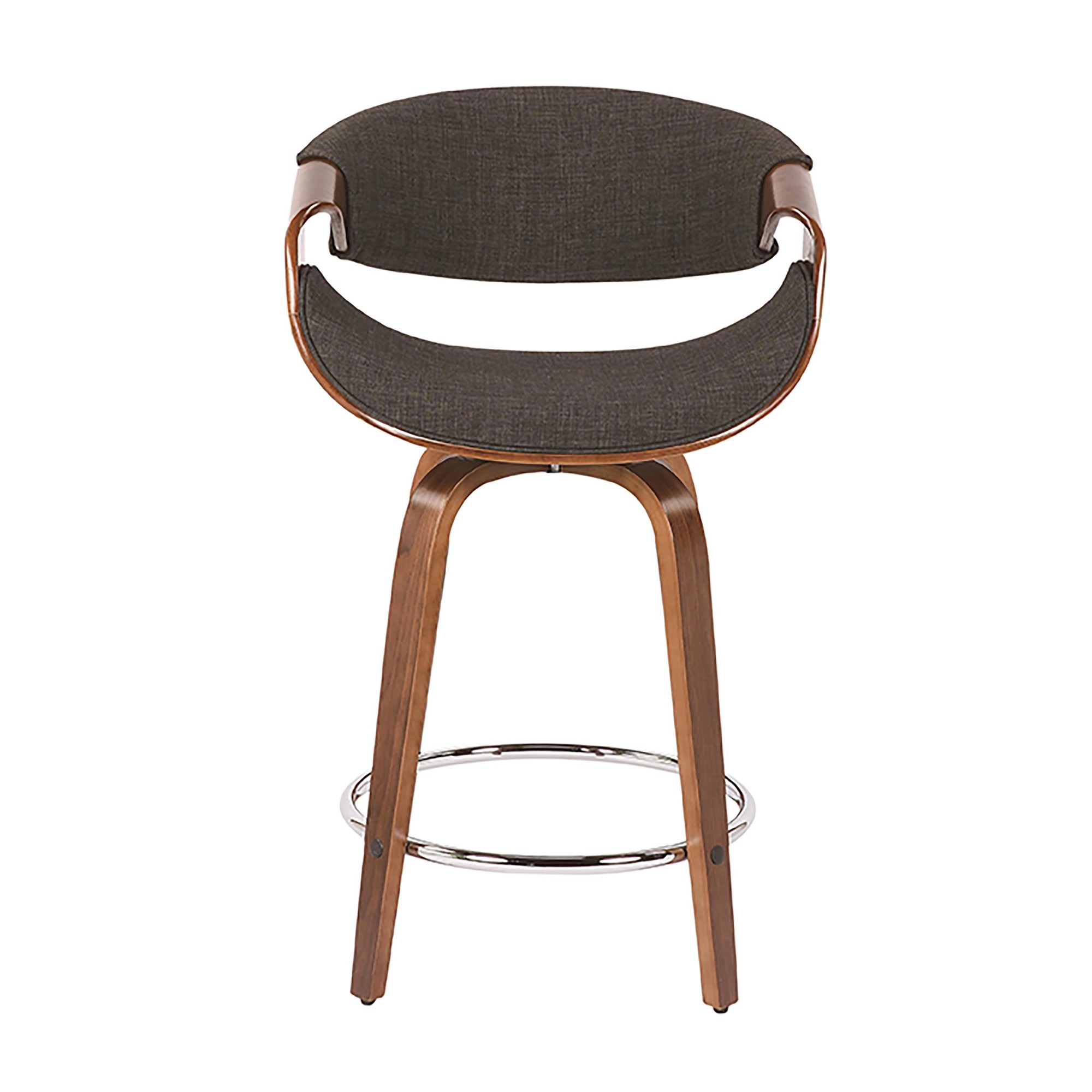 The Curvini Walnut Mid-Century Modern Charcoal Counter Stools bring a touch of vintage flair to your bar area. These stools combine a unique design with comfortable features, making them a stylish and functional addition to any space. The walnut finished wood frame provides a sturdy base, while the luxurious woven fabric upholstery and stylish armrests offer exceptional comfort. Enjoy the freedom of movement with the 360-degree swivel seat.