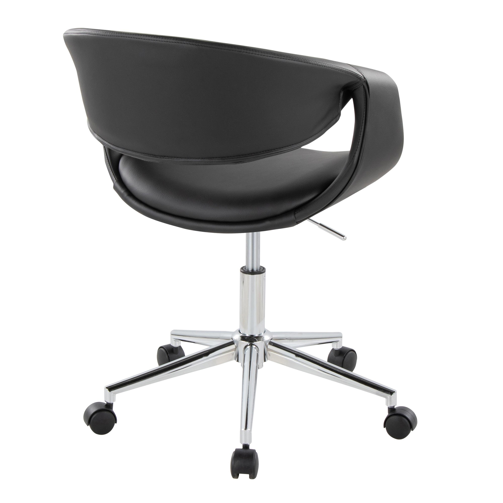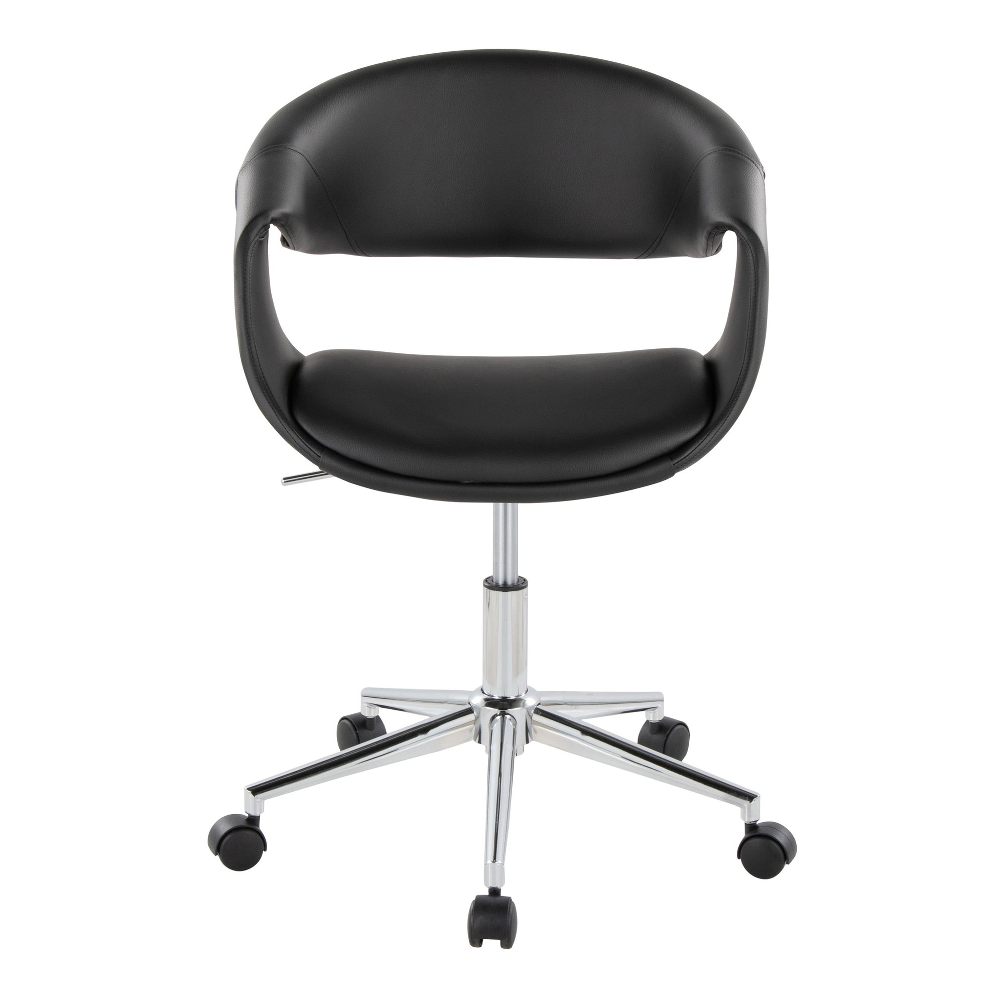 The Curvo Upholstered Task Chair offers a stylish and comfortable seating solution for your workspace. Its fully upholstered seat and curved, ergonomic backrest provide exceptional support, while the 5-star swivel base and adjustable height allow customized comfort and mobility. This chair is a versatile addition to any home or professional office.