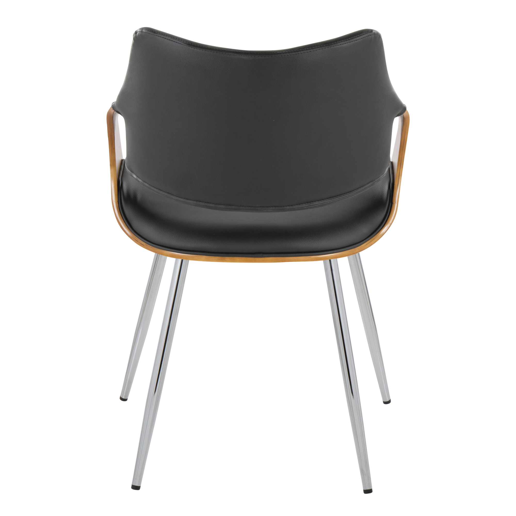 Upgrade your man cave with the Curvo Contemporary Black Faux Leather High Back Chairs. These chairs bring refined comfort to your dining area, living room, or home office. You can add a unique touch to your space. They feature stylish faux leather upholstery, sleek chrome metal legs, and padded seats. Plus, the exposed wood armrests will give you exceptional support. Includes two chairs. Some assembly is required. Product Specs: 21.5″L x 22.25″W x 33.25″H. Color: Chrome Metal, Walnut Wood, Black PU. Material: PU Leather, Foam, Metal, Bent Wood.