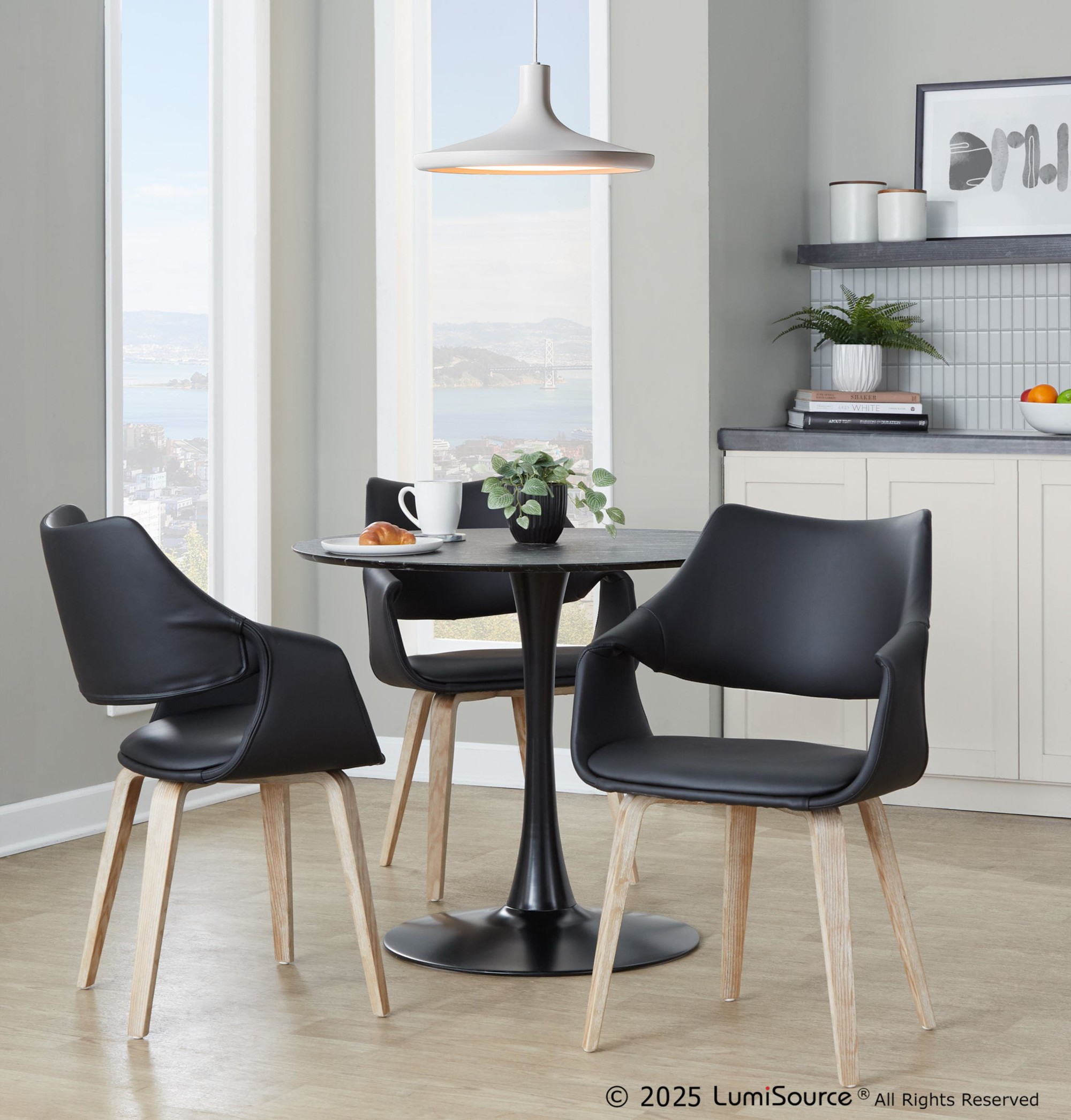 The Curvo Whitewashed Wood Black Faux Leather Contemporary Chairs offer a refined and comfortable seating solution for your space. These chairs feature a fully upholstered seat and backrest for exceptional support and a modern, ergonomic design. Perfect for adding style and functionality to any dining area, living room, or home office.