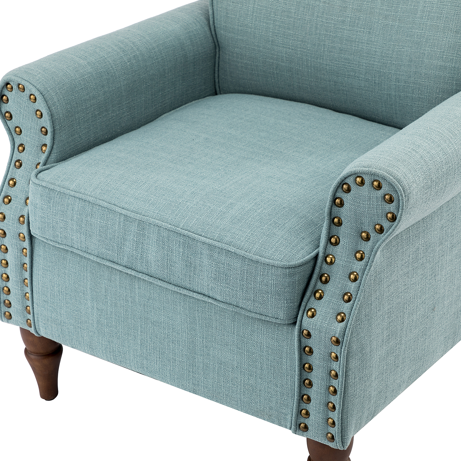 This charming accent armchair is designed to be the star of any room! With its classic design, retro nailhead trim, and comfortable seating, it’s the perfect spot to relax. The solid wood legs and durable frame ensure stability, while the soft linen-look fabric and blend of silk wadding and foam provide ultimate comfort. Add a touch of classic appeal to your living room, bedroom, or office with this easy-to-assemble armchair!