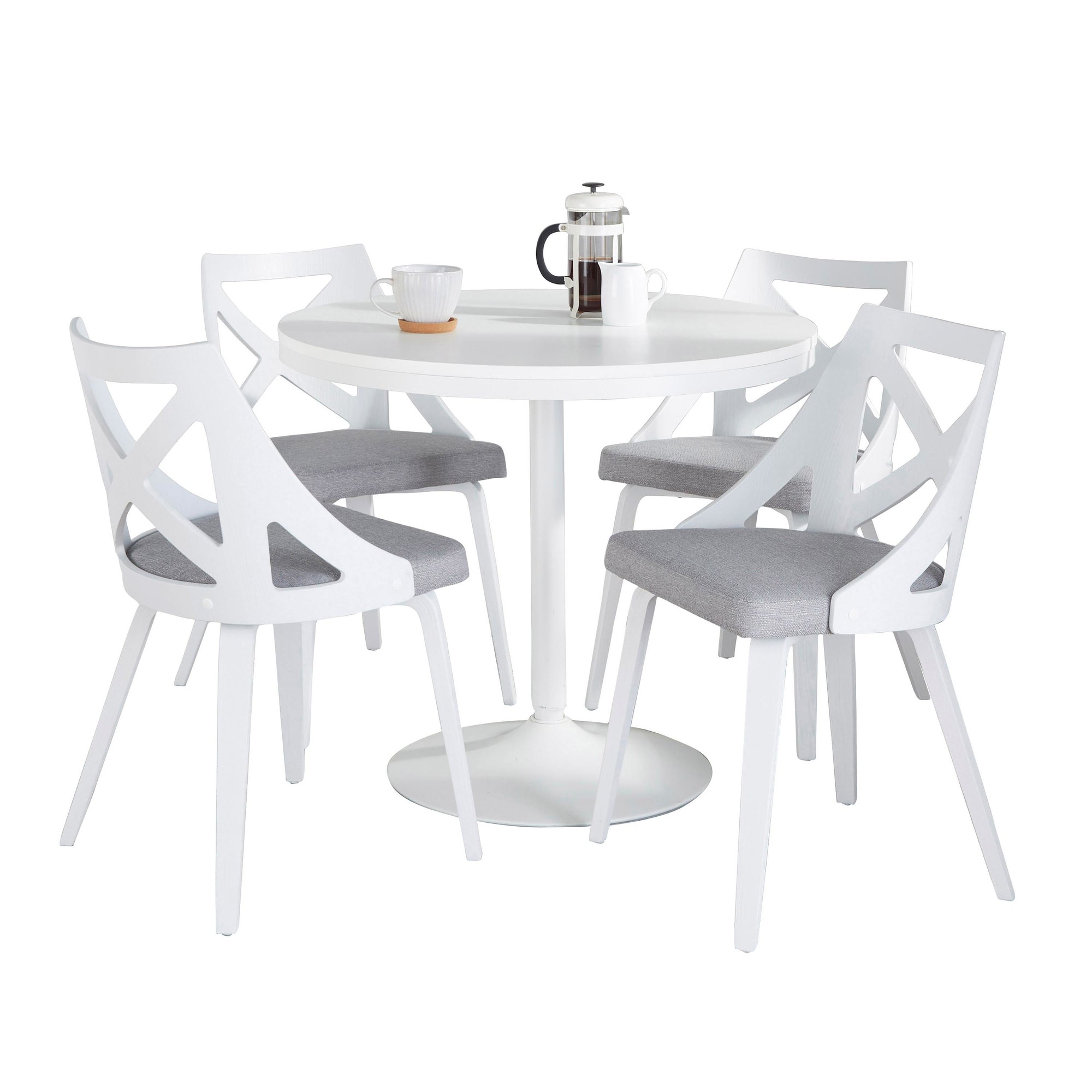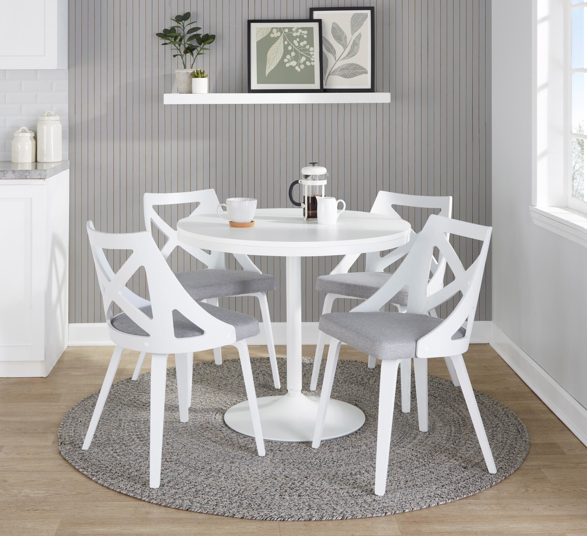 The Dakota-Charlotte White Farmhouse Dining Set is the perfect addition to any eating area. Its modern farmhouse style allows the backrest design of the chairs to really shine, creating a stylish and easy seating solution. With seating for four, this set is ideal for any dining room, kitchen, or breakroom. Enjoy the sturdy construction and comfortable fabric upholstery.