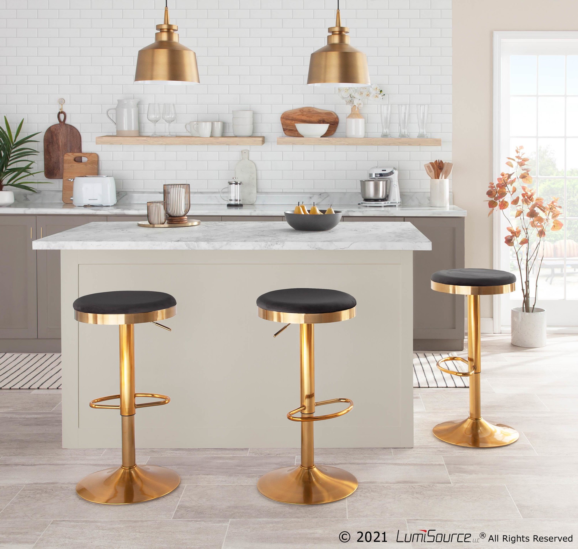 The Dakota Bar Stool isn’t just about looks; it’s designed for comfort and functionality. The adjustable height allows you to customize the stool to your preferred level, while the velvet upholstery provides a soft and luxurious seating experience. The gold frame finish adds a touch of elegance, and the 360-degree swivel lets you easily turn and chat with guests.