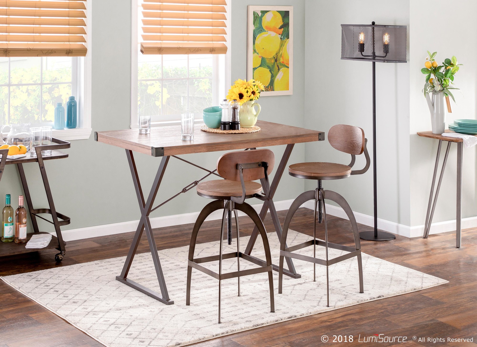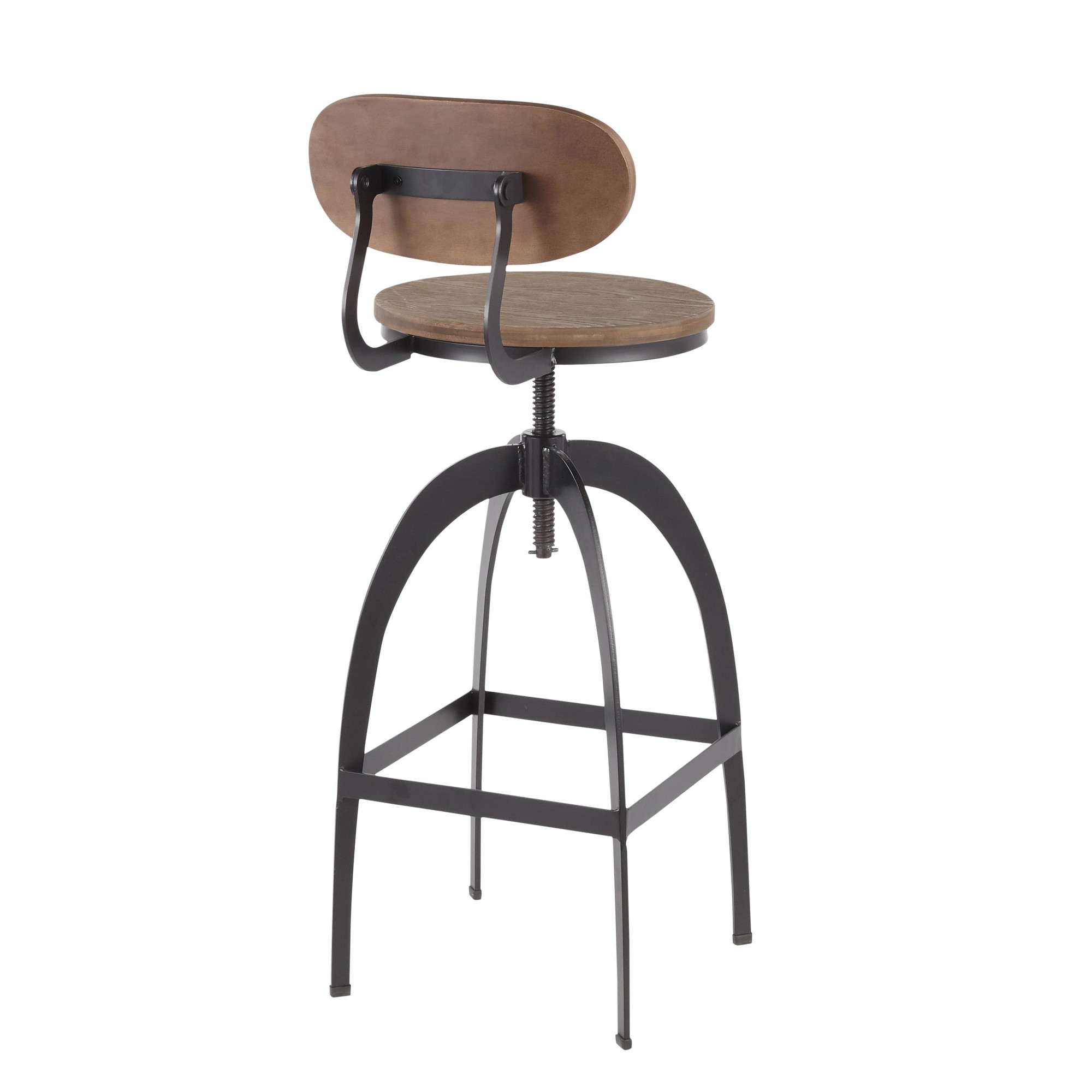 The Dakota Industrial Mid-Back Adjustable Barstool is the perfect addition to your kitchen or bar area. Combining rustic charm with modern industrial design, this barstool provides both style and functionality. Enjoy the comfort of the wood seat and backrest, coupled with a sturdy metal base. The screw top swivel and adjustable height feature ensure a perfect fit for your space.
