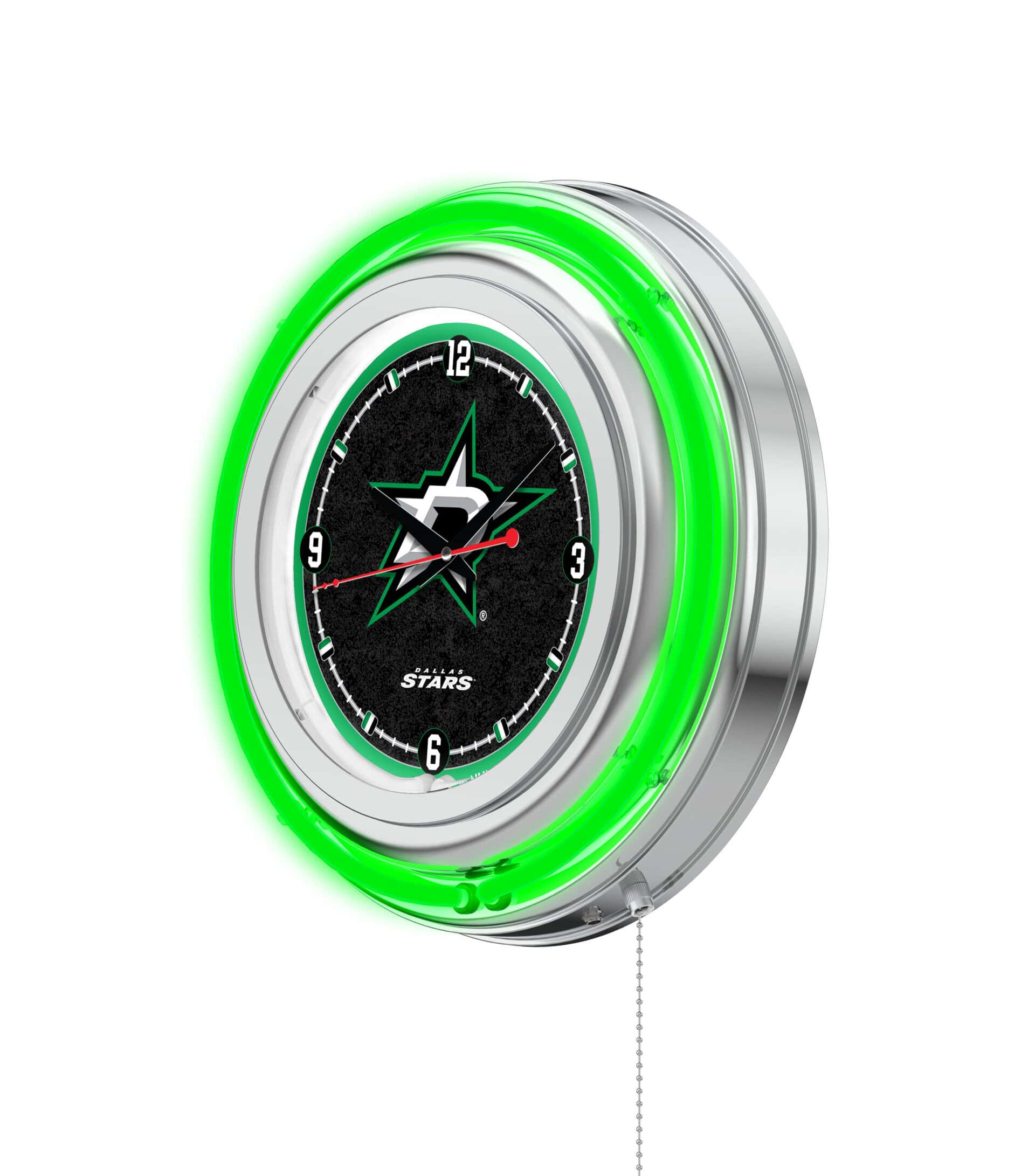The Dallas Stars 15-Inch Neon Logo Clock in Chrome is the ultimate addition to your man cave, showcasing your team pride in a vibrant and stylish way. Featuring a stunning chrome casing and a neon outer ring in team colors, this clock not only keeps time but also illuminates your space with a brilliant white inner neon ring. The clock face is custom printed, ensuring that your fandom shines through. With a convenient pull chain for easy operation and accurate quartz movement, this clock is both functional and eye-catching. Whether as a gift for a sports super fan or a treat for yourself, this clock is an ideal choice for any dedicated fan.