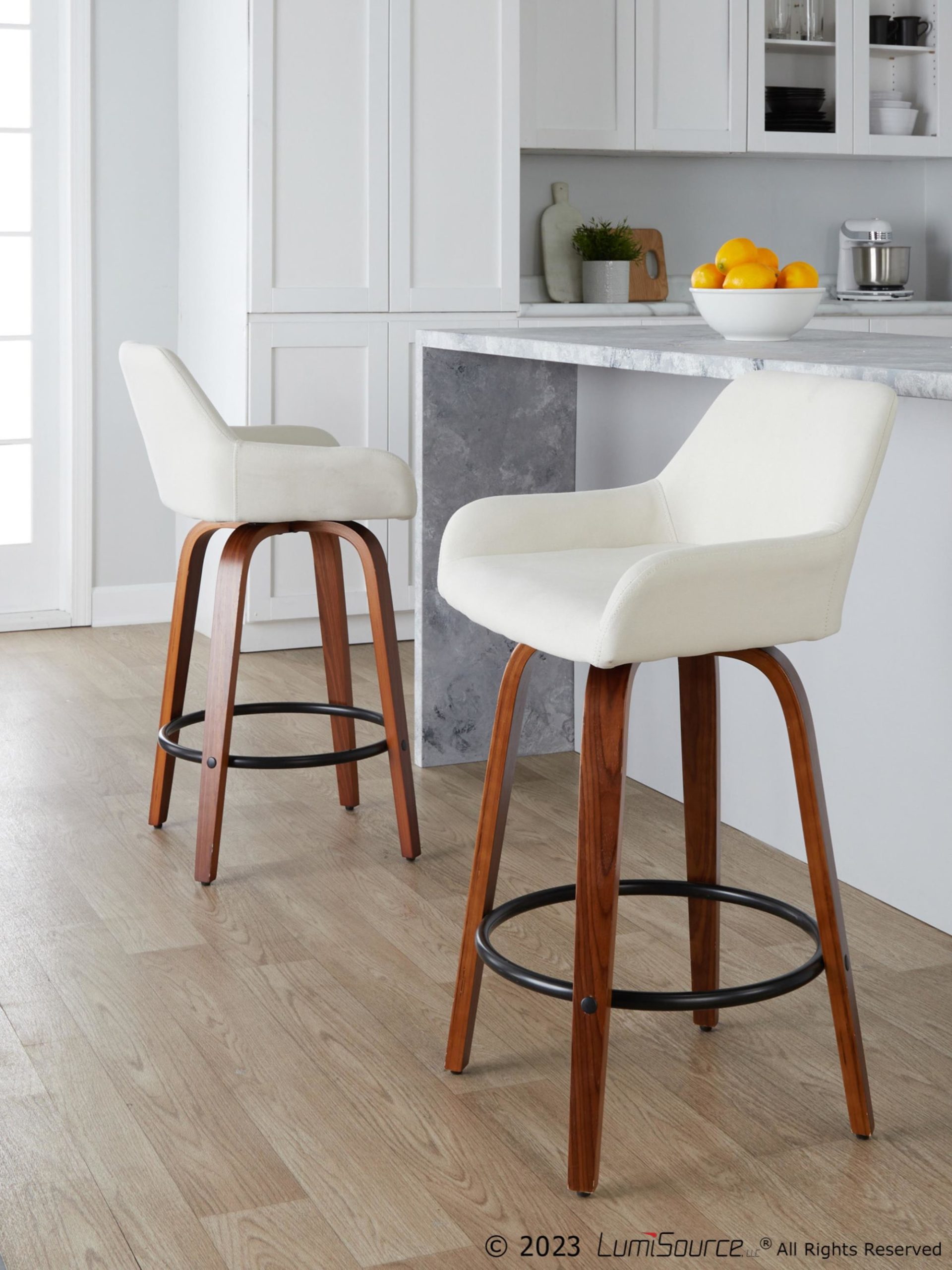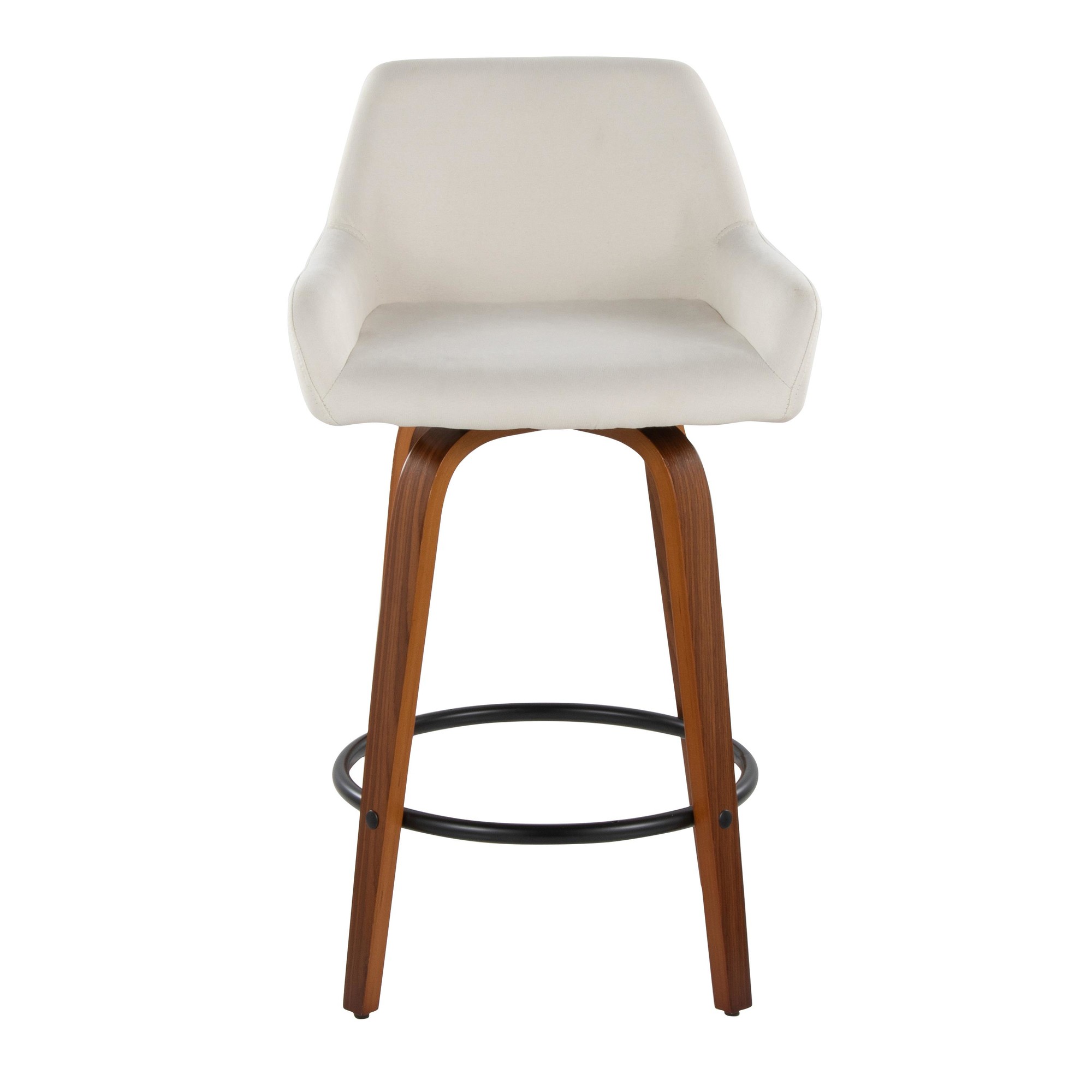 Daniella 26 Contemporary Swivel Counter Stools Walnut Cream (Set of 2)