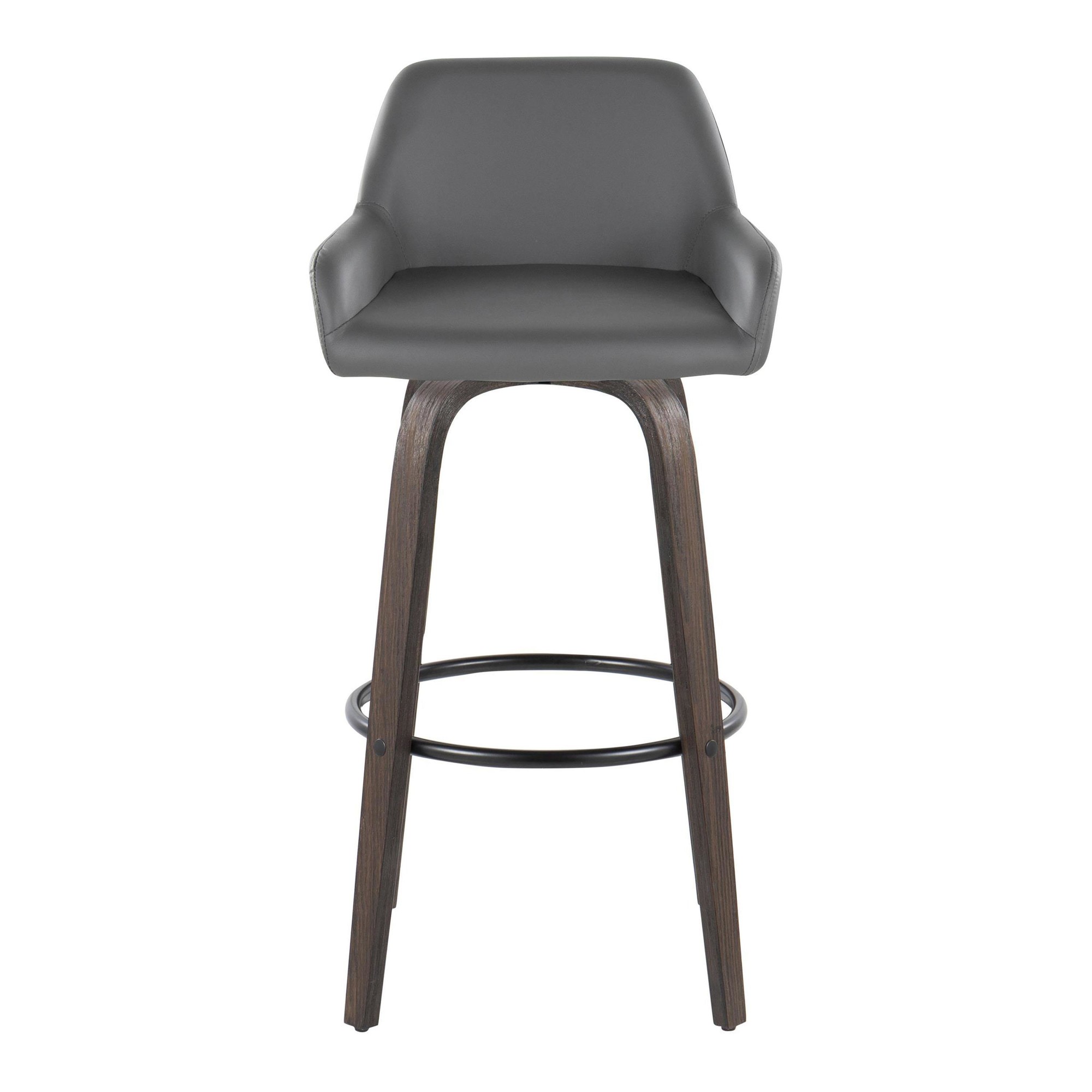 The Daniella 30 Contemporary Grey Swivel Barstools offer a stylish and comfortable seating solution for your kitchen or bar area. These barstools feature a sleek upholstered swivel seat and a supportive, padded backrest. The unique bent wood legs are sure to catch the eye, adding a touch of contemporary charm to your space. Available in a variety of upholstery colors, the Daniella barstools can be easily matched to your existing decor.