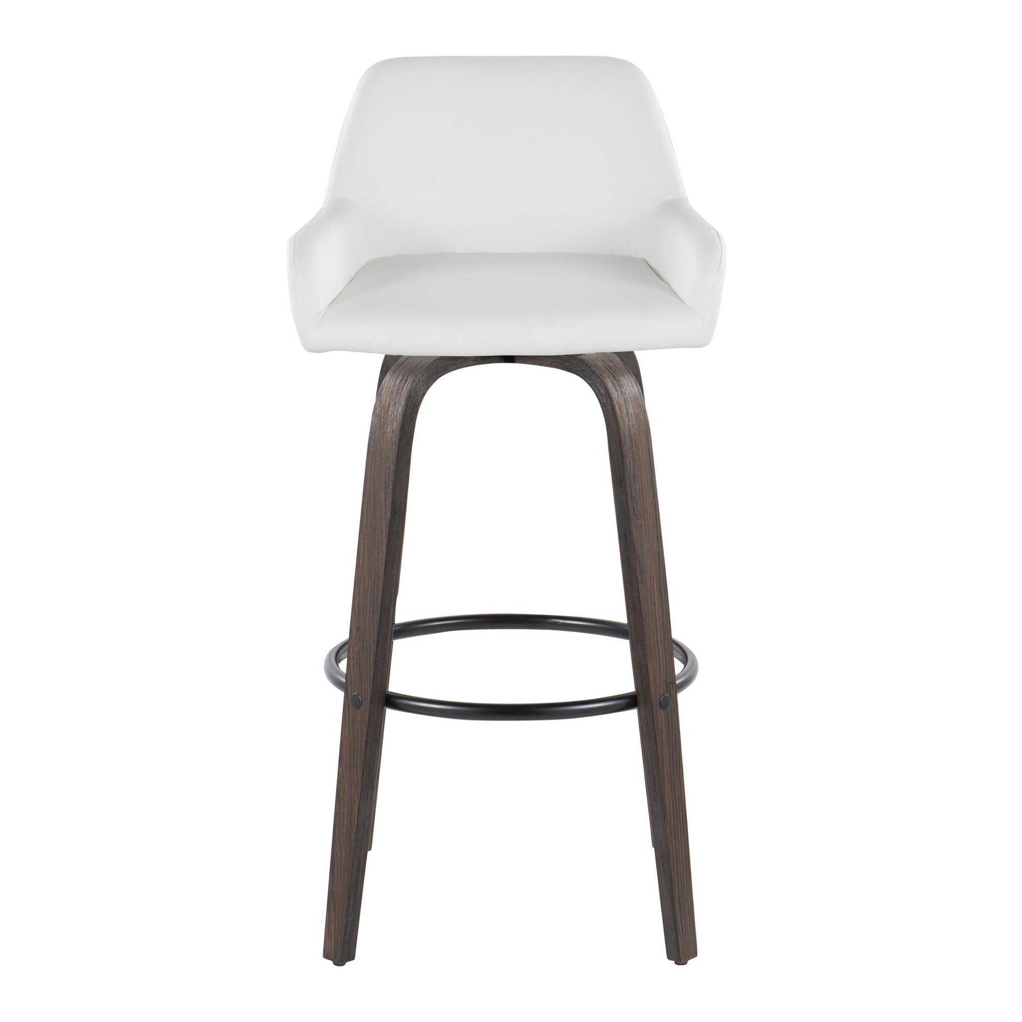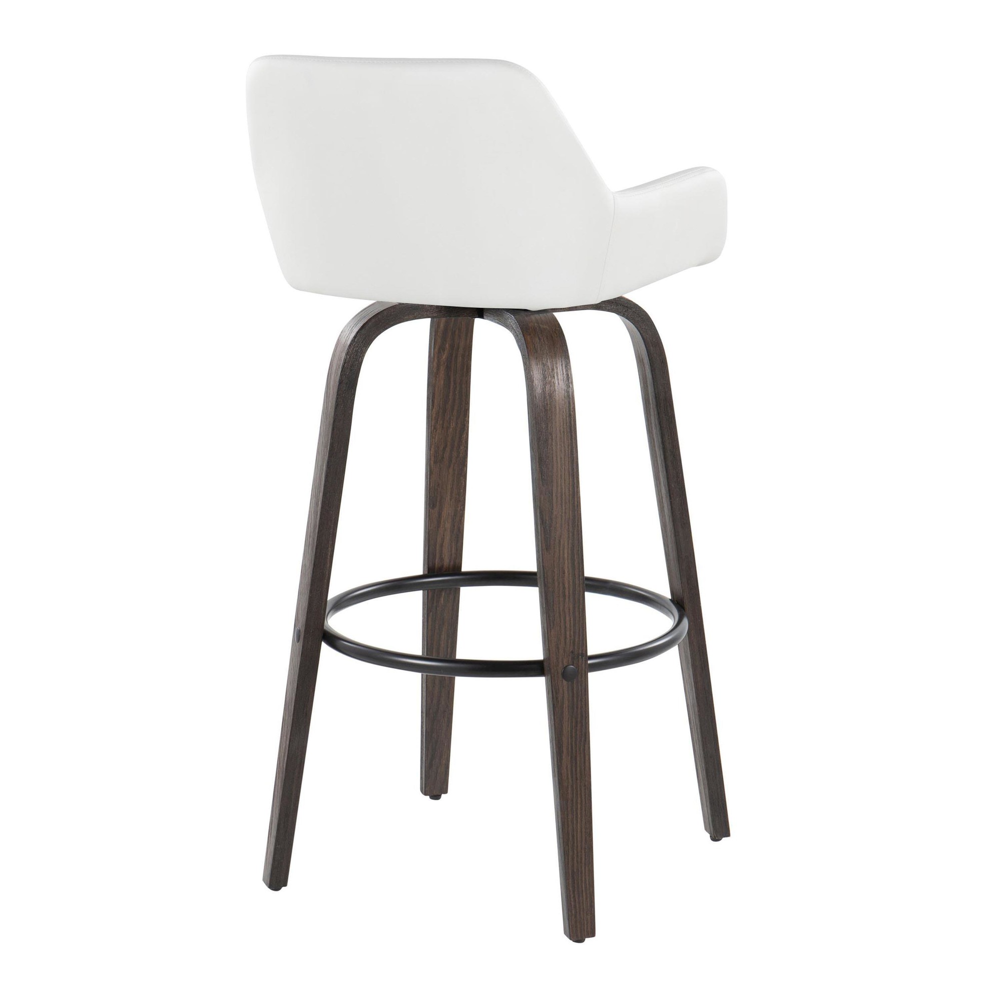 The Daniella 30 Contemporary Swivel Barstools bring stylish and comfortable seating to your kitchen or bar area. These barstools feature a sleek upholstered swivel seat, a supportive, padded backrest, and stylish bent wood legs, sure to catch the eye in any setting. Available in a walnut and white color combination, the Daniella barstools are a perfect addition to your space.