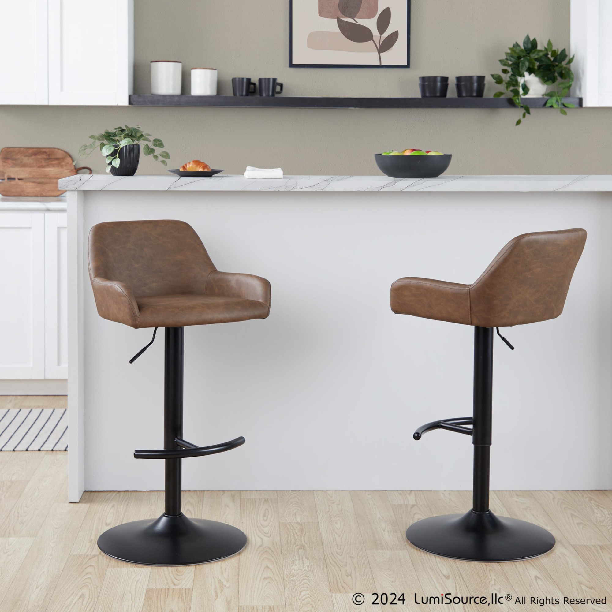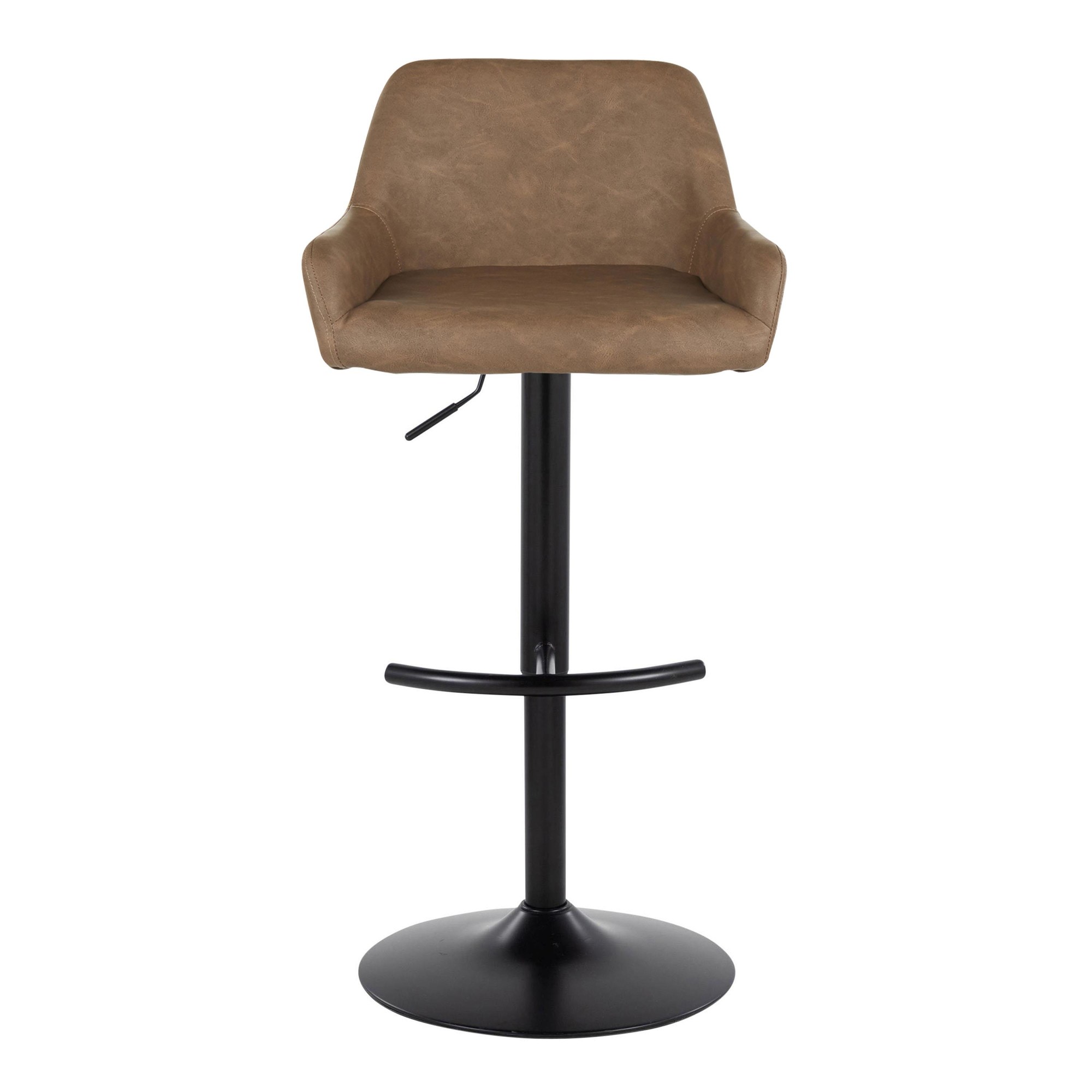 The Daniella Adjustable Barstool brings contemporary style and comfortable seating to your kitchen or bar area. This eye-catching stool features a sleek, upholstered swivel seat with a padded backrest, all supported by a stylish, adjustable base. Available in a variety of upholstery colors, the Daniella is sure to complement your decor.