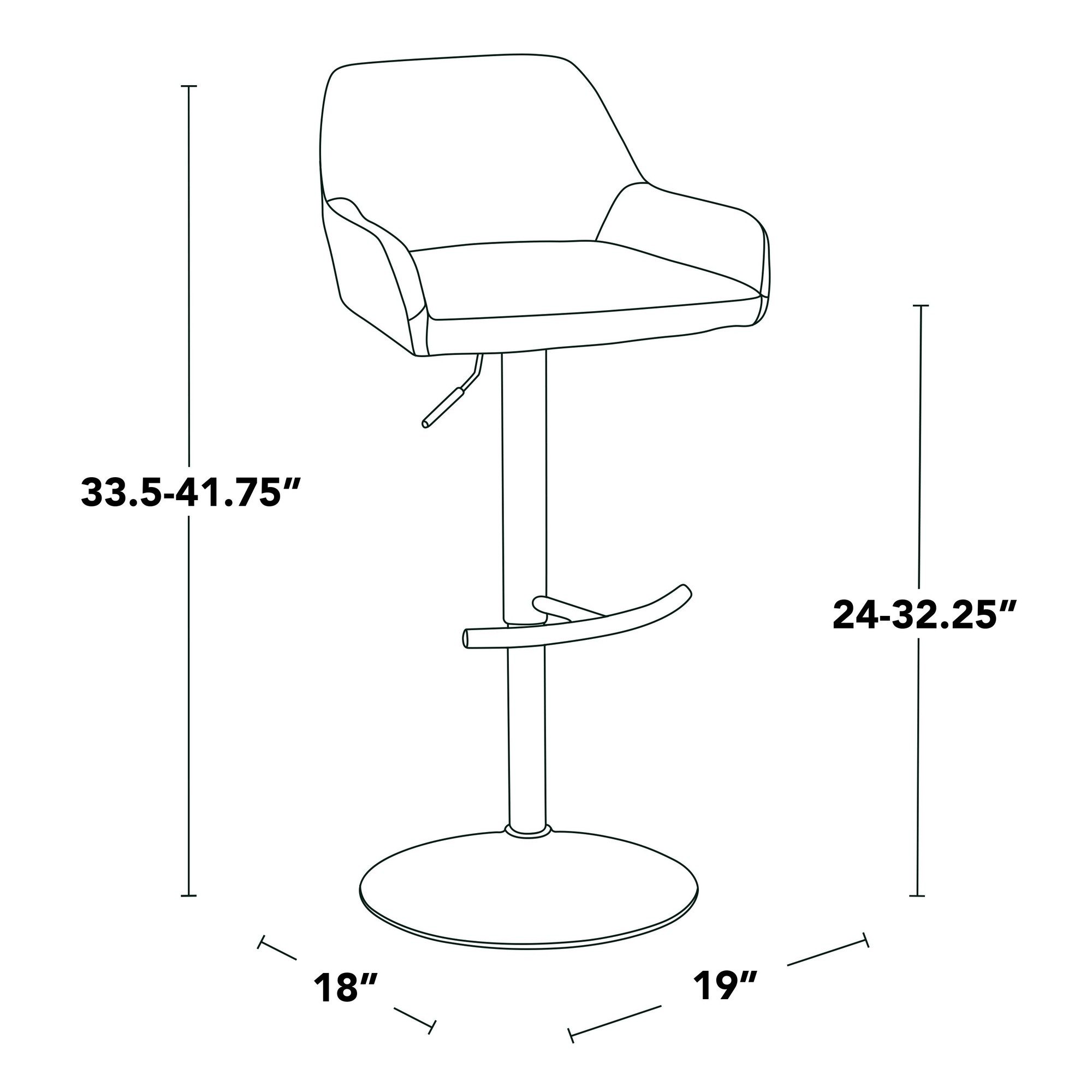 - Product Dimensions: 18″L x 19″W x 33.5-41.75″H