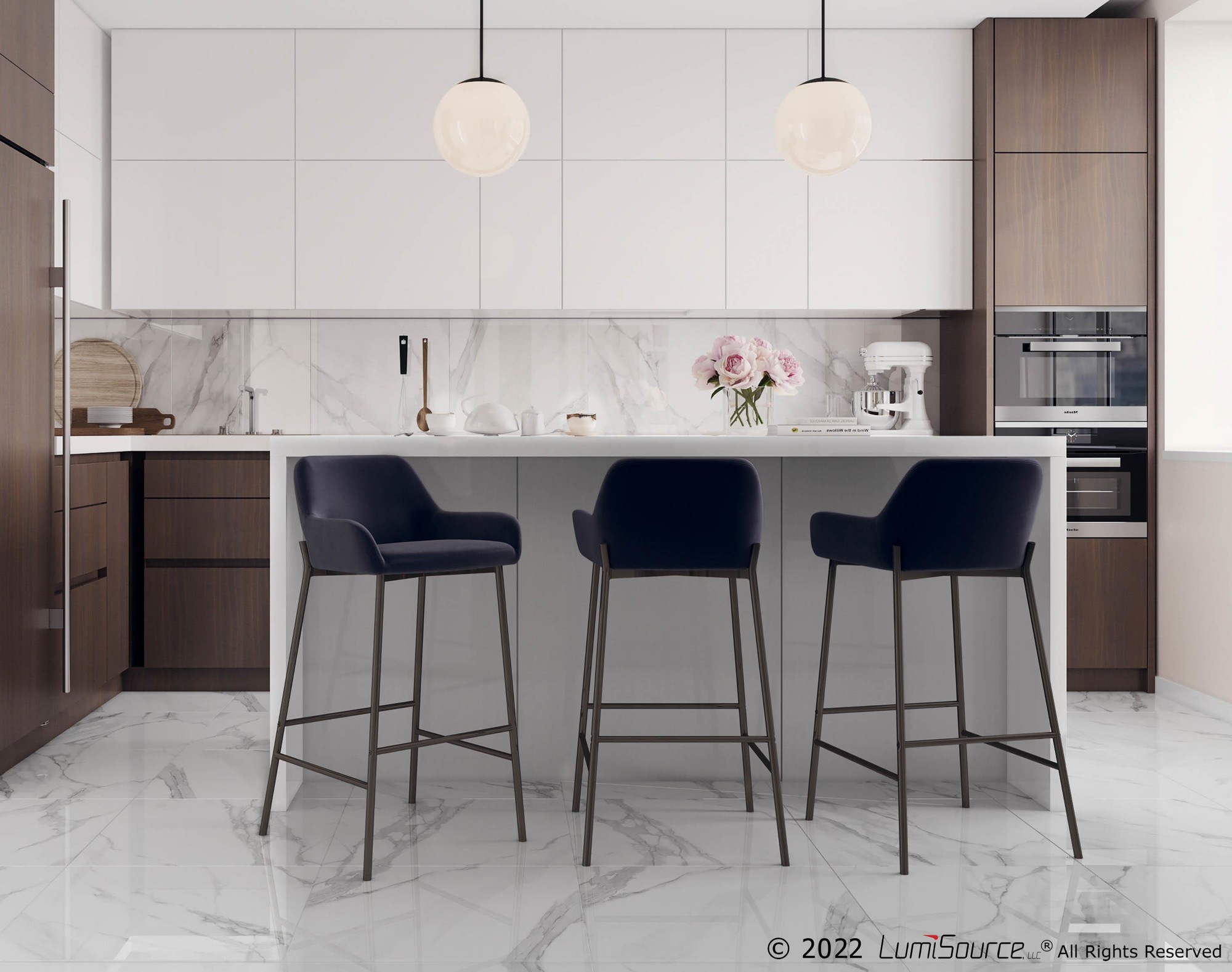 Enhance your seating with industrial styling and the comfort of velvet upholstery. The Daniella Bar Stools offer a perfect blend of style and comfort for any space.