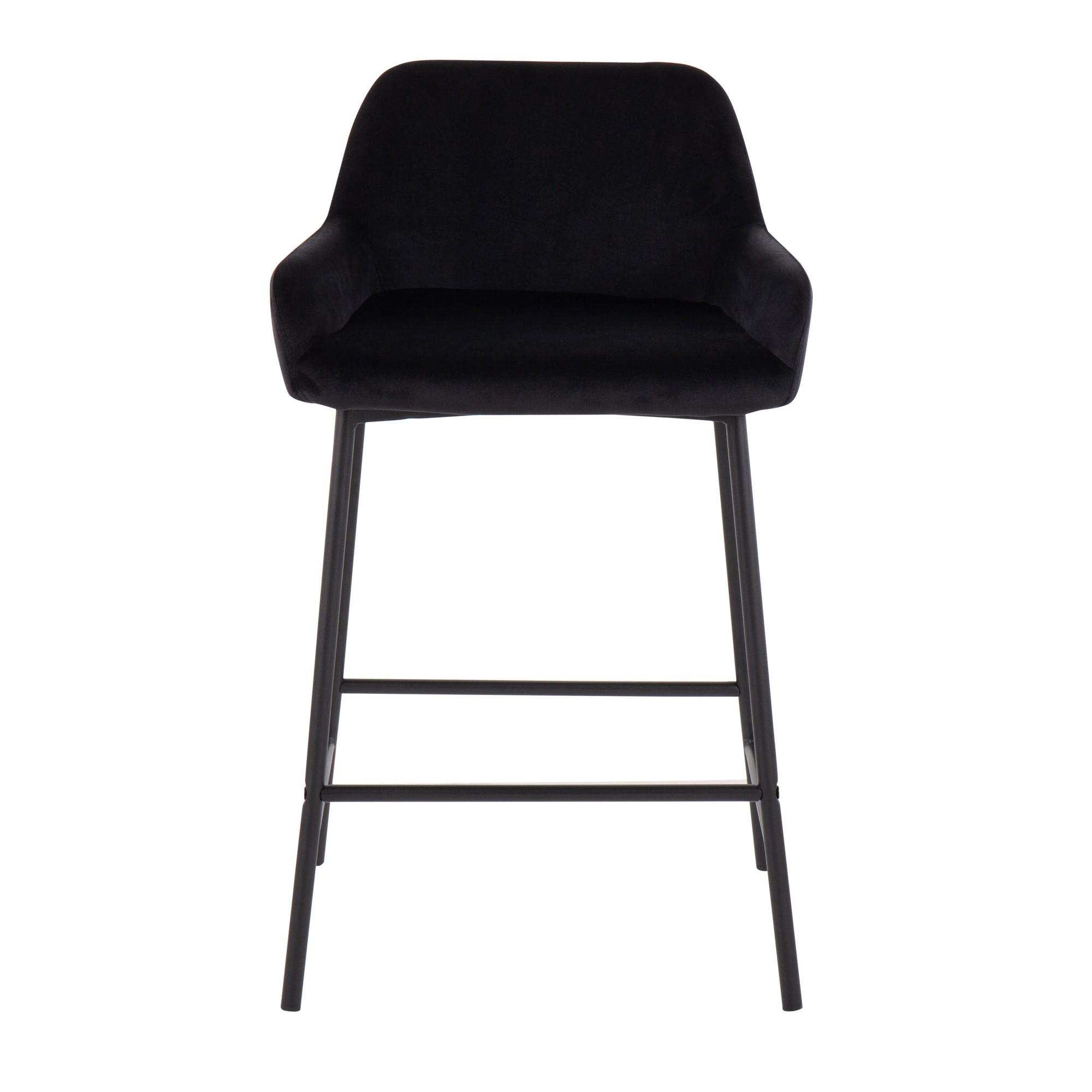Add stylish and comfortable seating to your kitchen or counter area with the contemporary charm of the Daniella Counter Stools. These stools feature a sleek, upholstered, padded seat and backrest, complemented by a unique metal frame. Perfect for adding an industrial touch to your man cave!