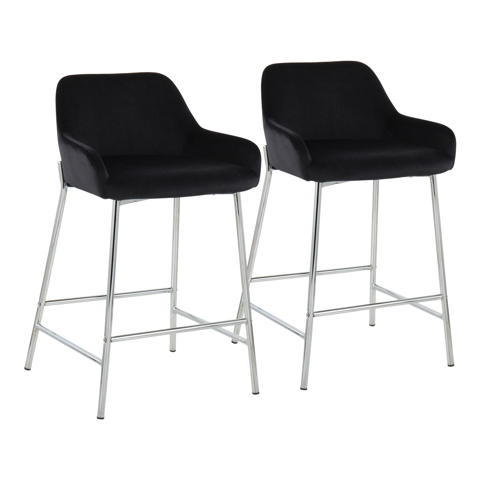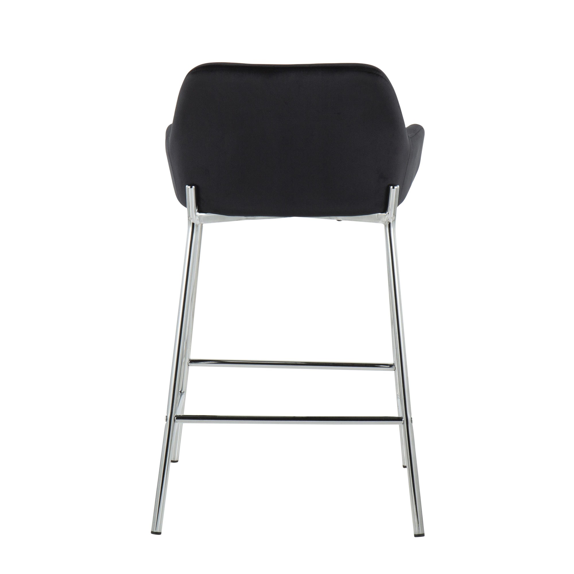 Daniella Chrome and Black Velvet Contemporary Counter Stools (Set of 2)