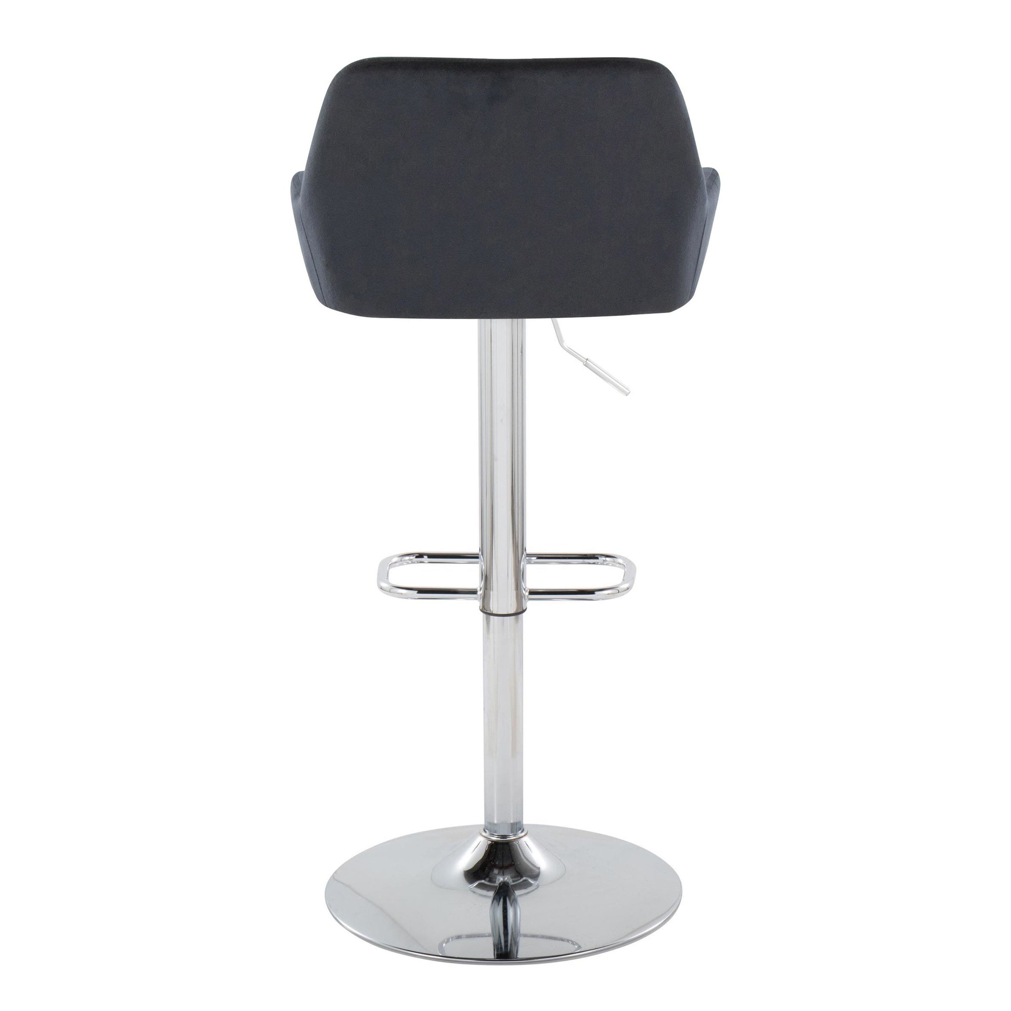 The Daniella Barstools not only offer contemporary styling, but also boast an adjustable height with a 360-degree swivel. The stylish velvet upholstery and chrome base, complete with a rounded rectangular footrest, create a sophisticated look. This set includes two barstools, making it a perfect addition to any space!