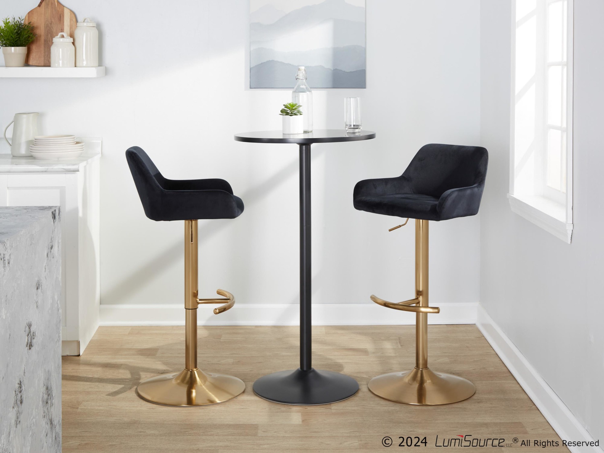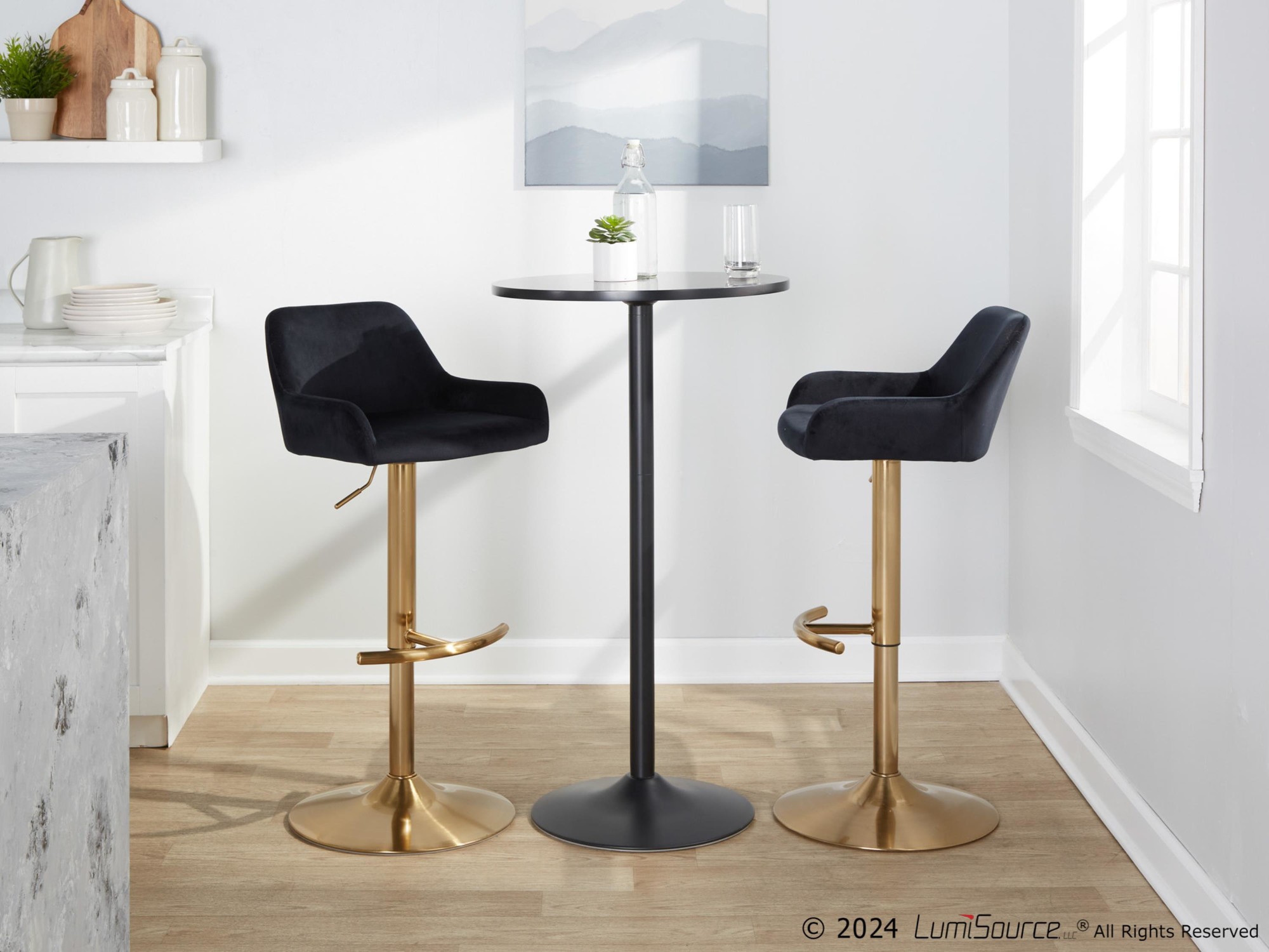 Daniella Gold and Black Velvet Contemporary Barstools (Set of 2)