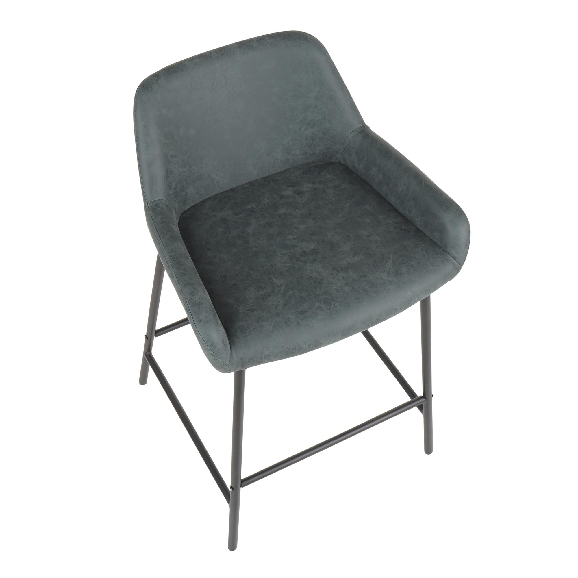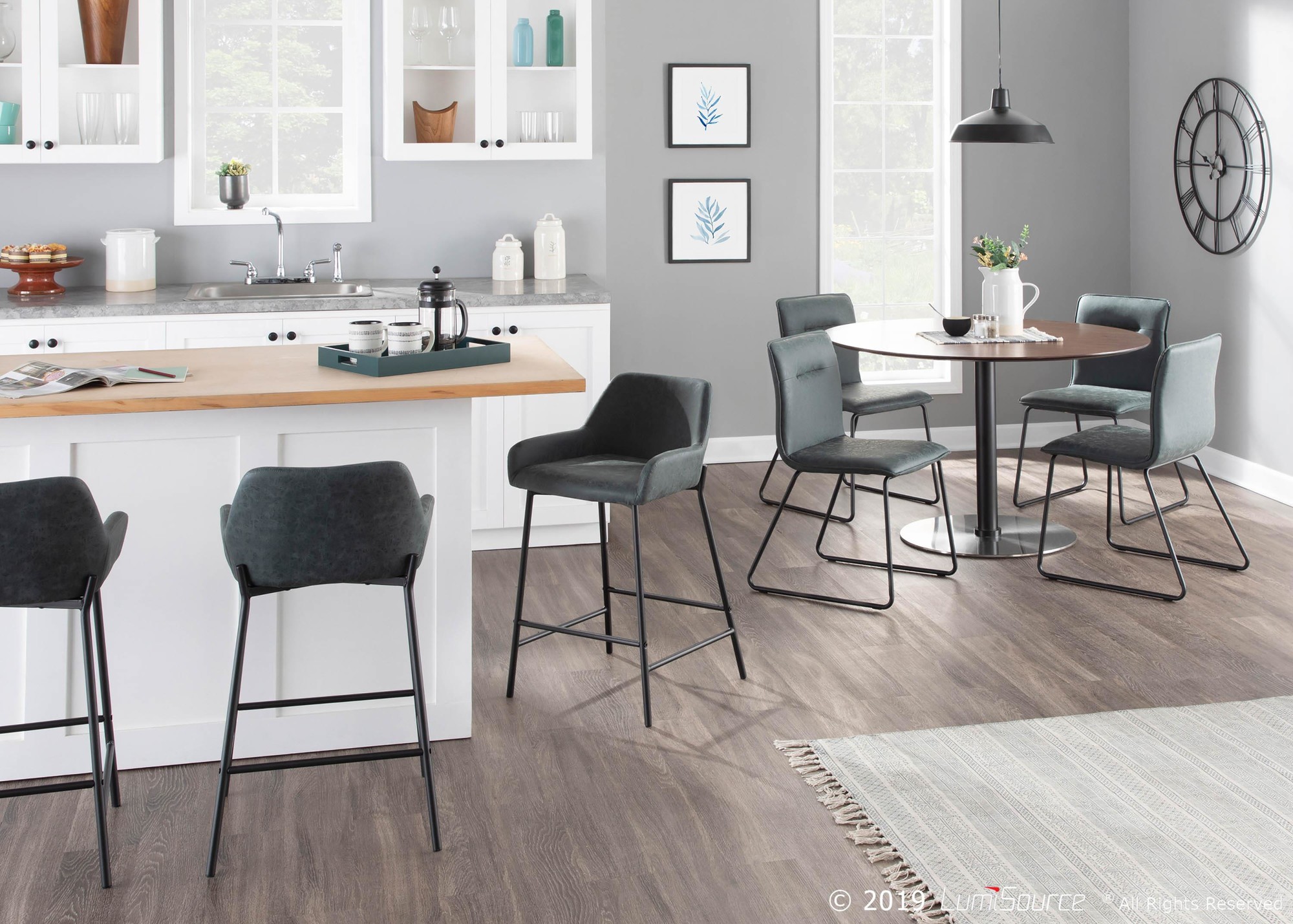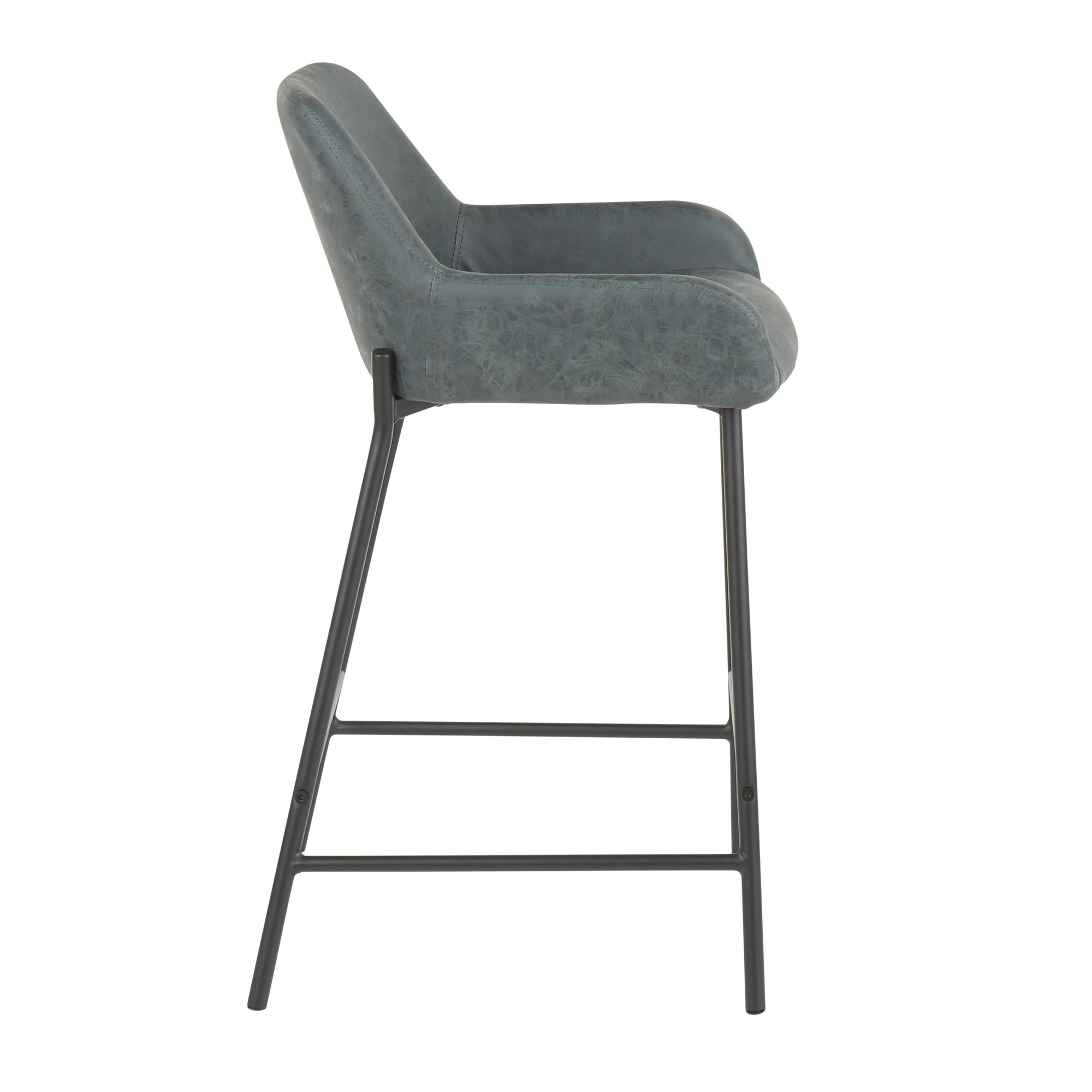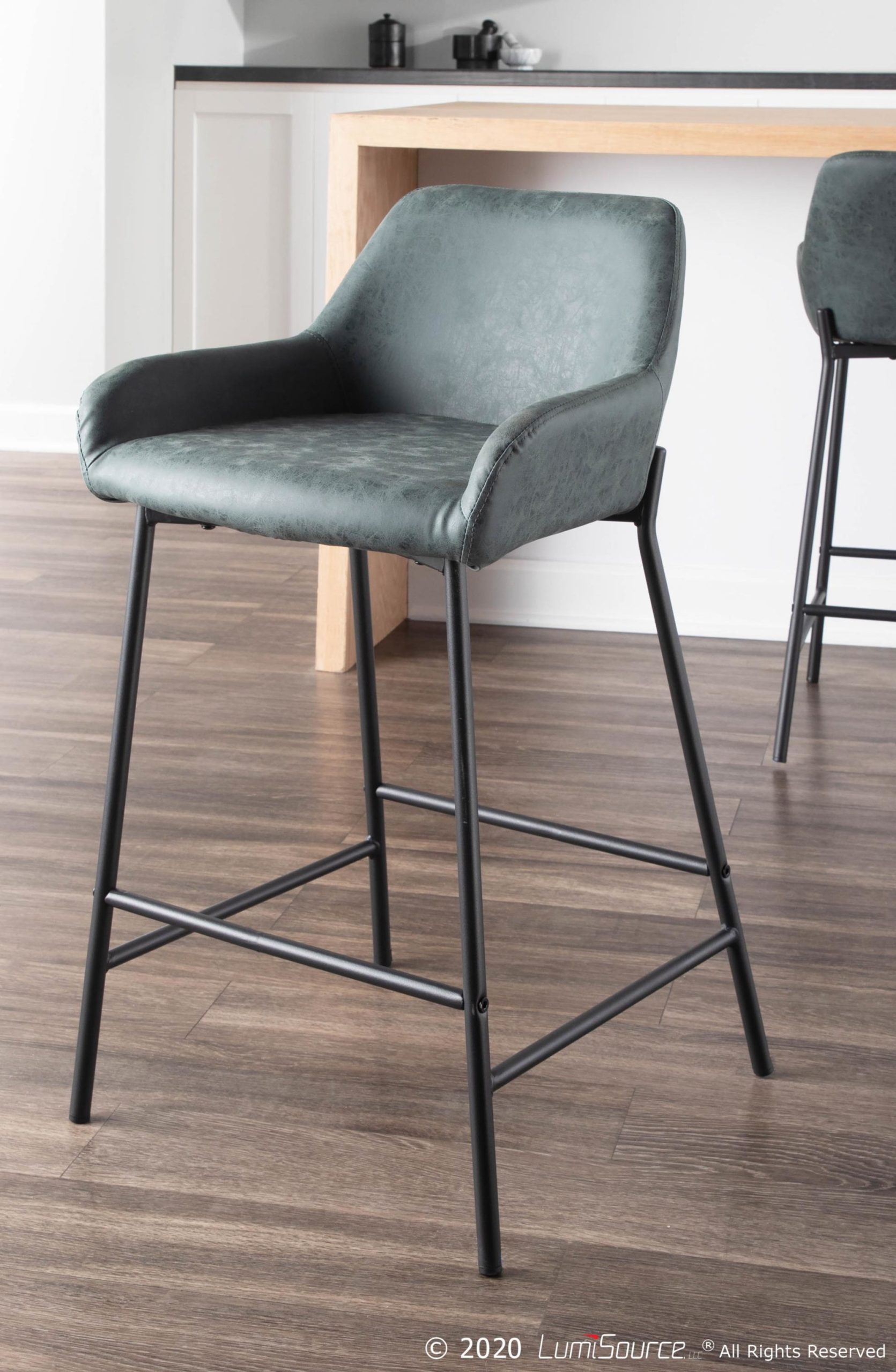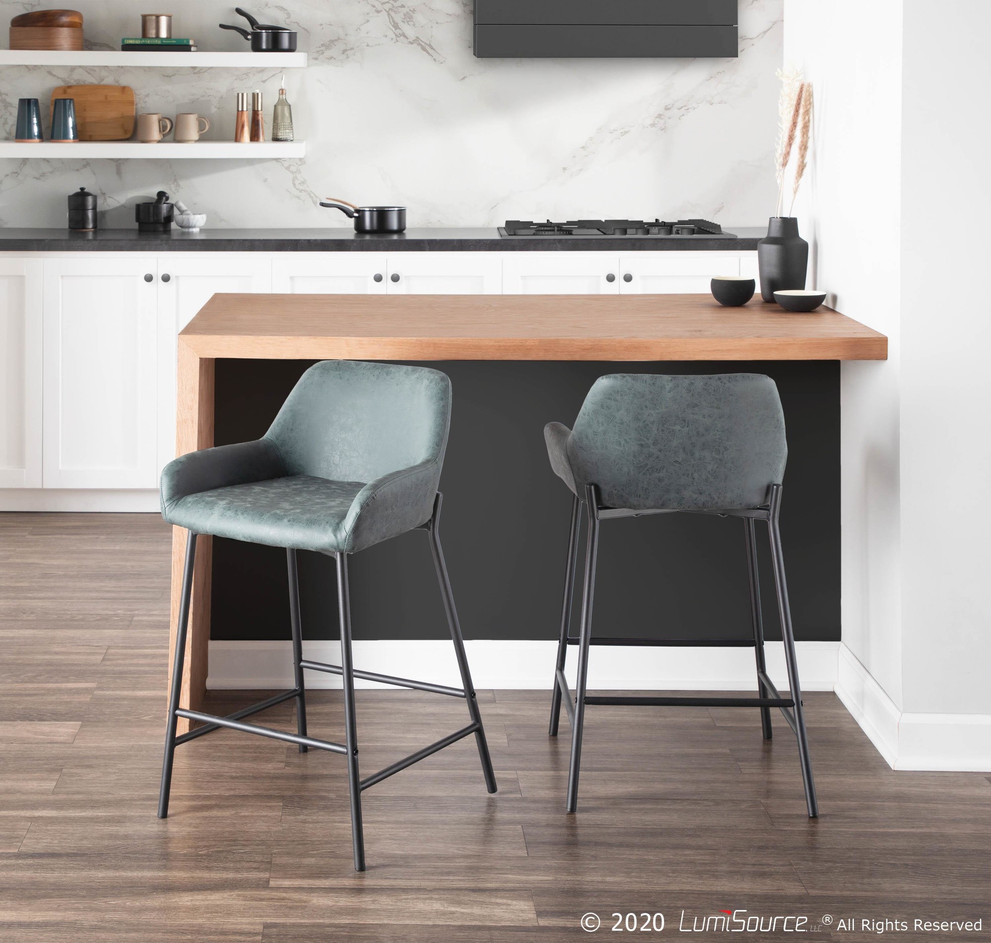 The Daniella Counter Stools bring industrial charm and comfortable seating to your kitchen or counter area. These stools feature sleek faux leather upholstery, a padded seat and backrest, and a unique black metal frame, making them a stylish and practical addition to any space.
