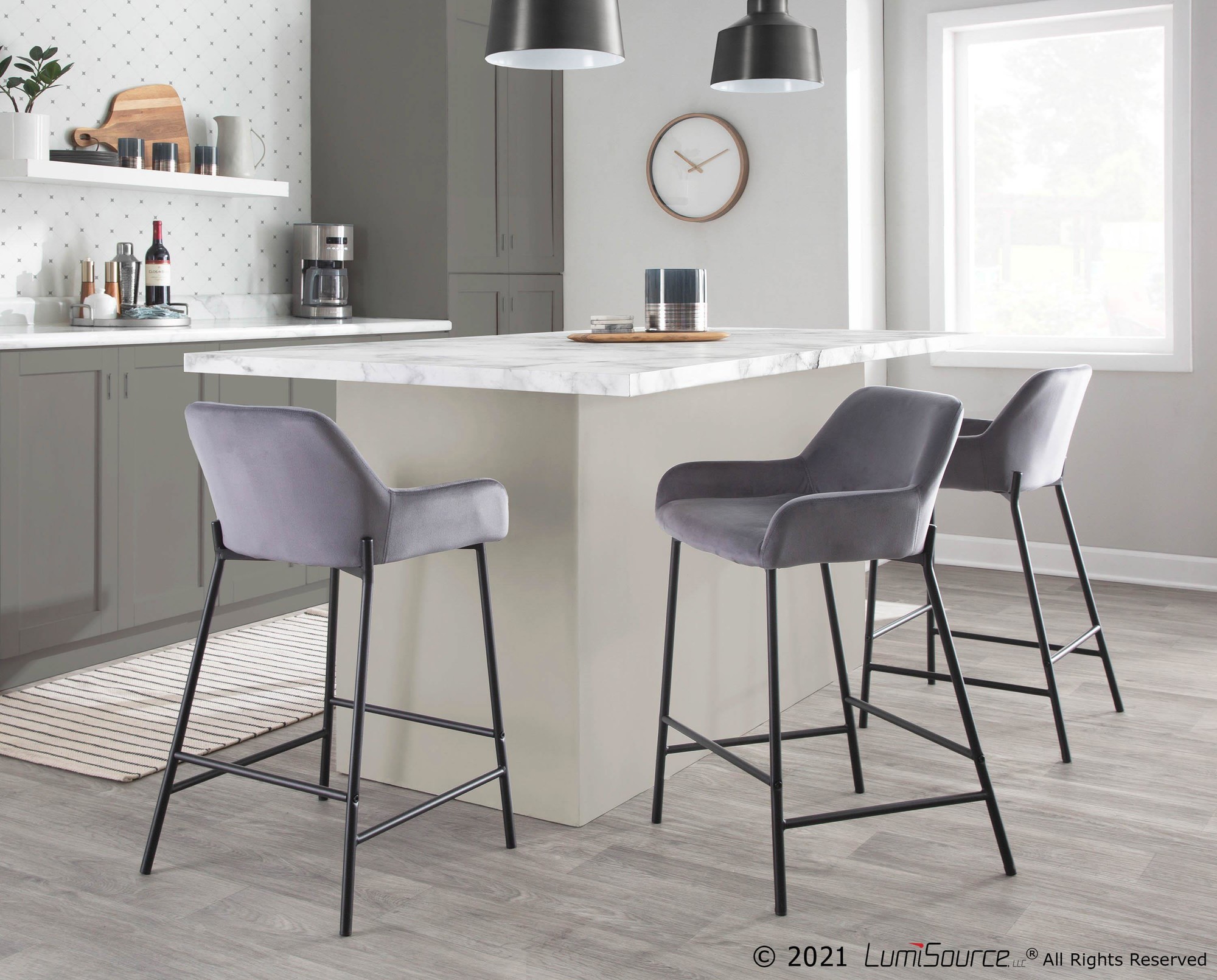 The Daniella Counter Stools bring contemporary charm and comfortable seating to your kitchen or counter area. These stools feature a sleek, upholstered padded seat and backrest, complemented by a unique metal frame, creating a stylish and inviting space. The padded seat and backrest ensure a comfortable seating experience, while the sturdy metal frame provides durability and stability. The design effortlessly blends with a variety of decor styles, making it a versatile addition to any home.