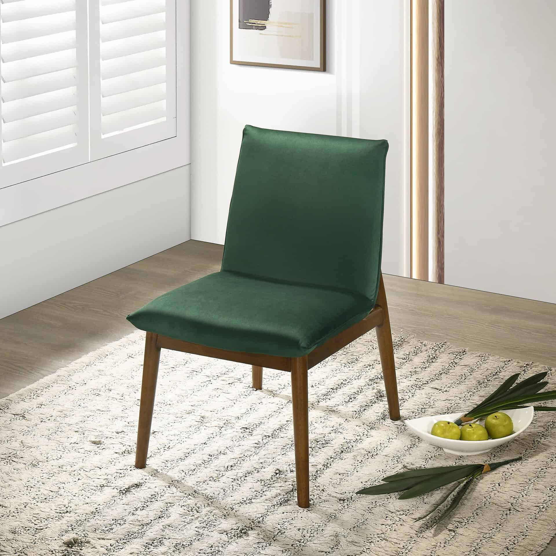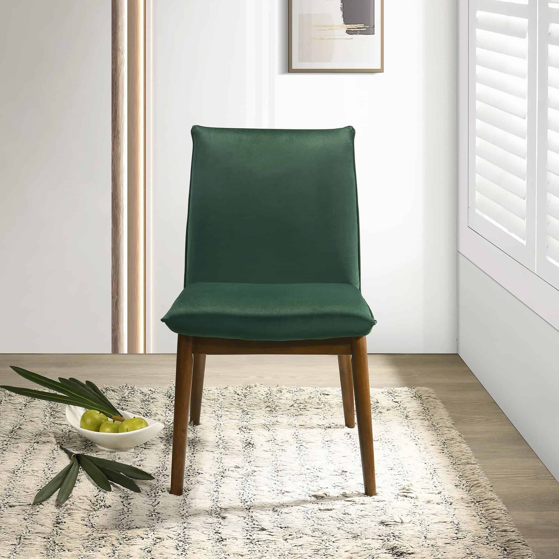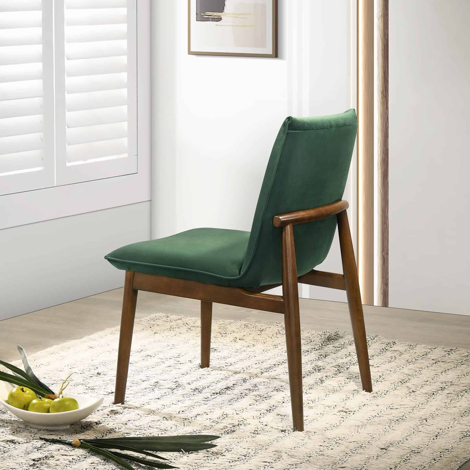 The Dark Green Velvet Mid-Century Modern Dining Chairs (Set of 2) bring timeless elegance and functionality to your dining or entertainment space. These chairs feature a sleek, mid-century modern design, upholstered in luxurious velvet fabric for a sophisticated look and exceptional comfort. The gently curved, slightly angled seat and back ensure ergonomic support, making them perfect for long meals or lively conversations. Built with a sturdy wooden frame, these chairs combine style and durability to enhance your man cave dining room.