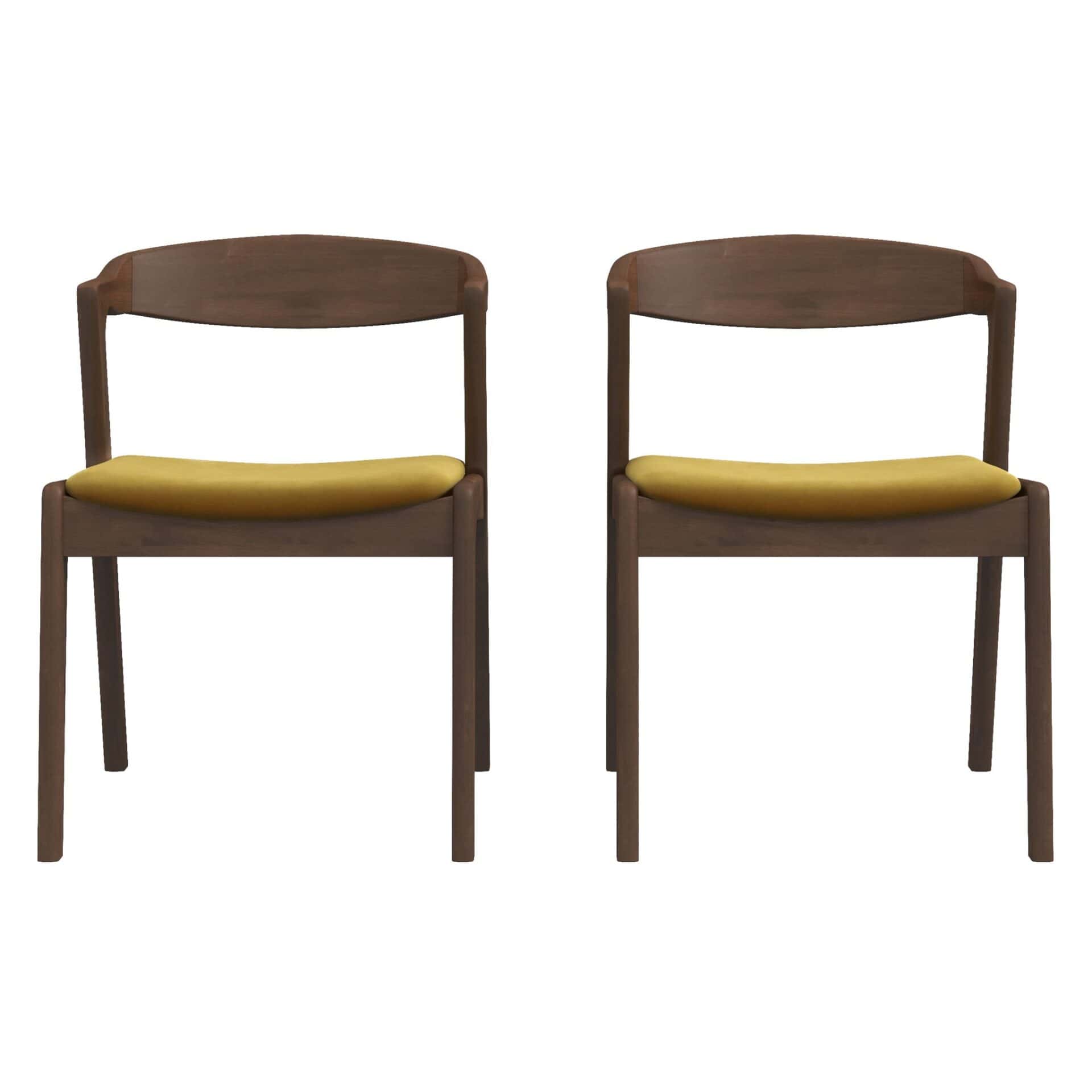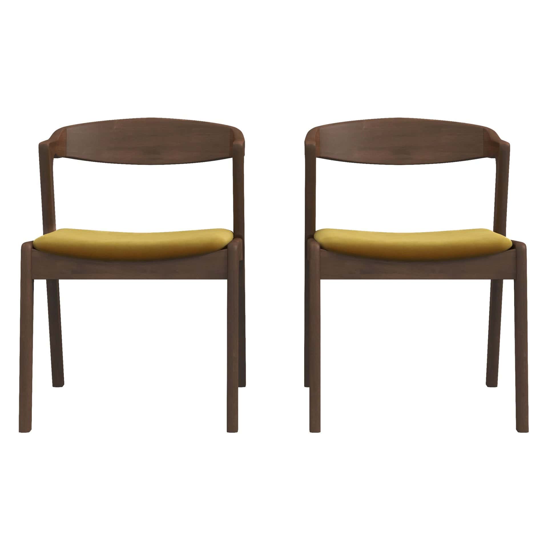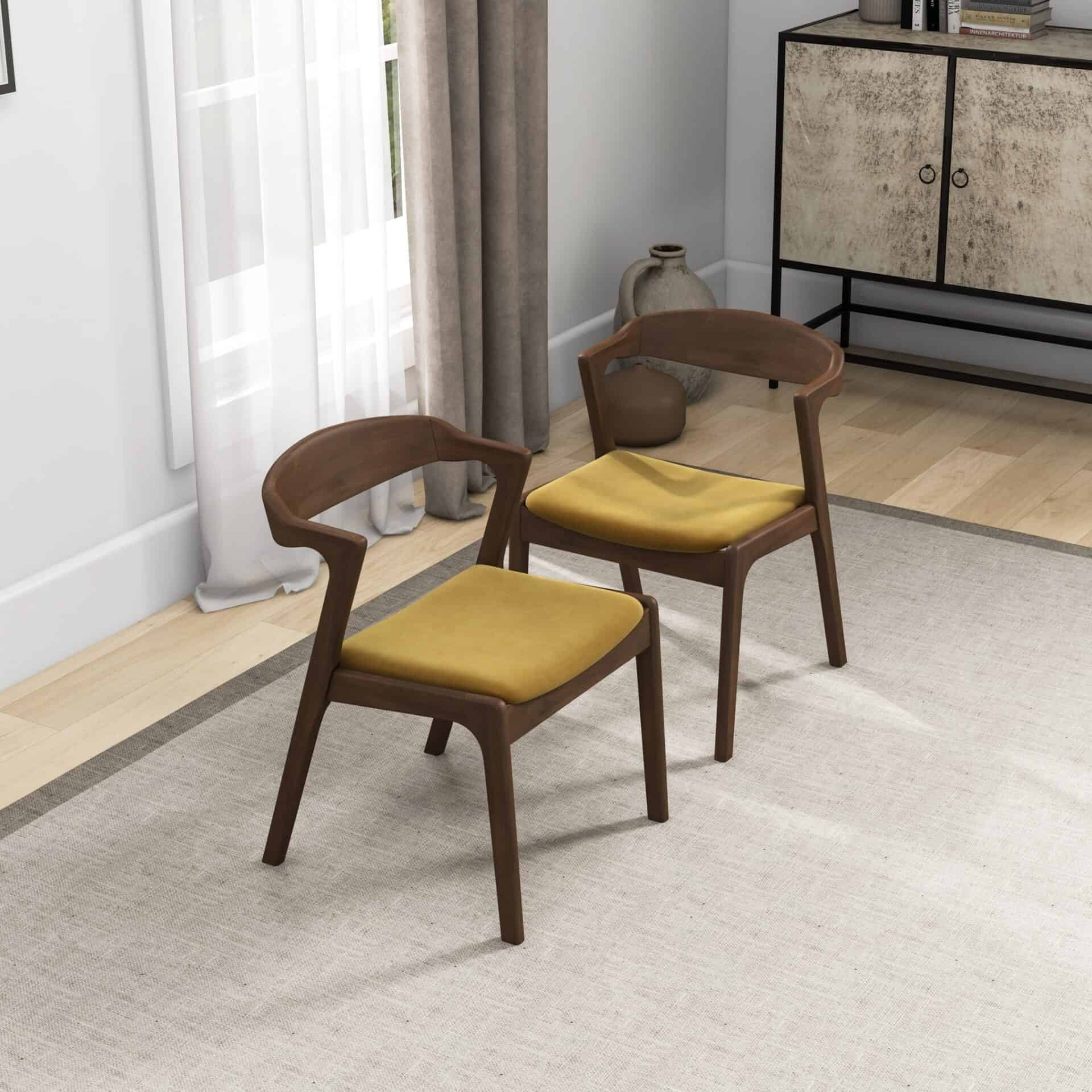 Introducing the Dark Yellow Velvet Dining Chair with Solid Wood Legs, a perfect combination of style, comfort, and durability. This set of two chairs is designed to elevate your dining experience while seamlessly blending into your man cave, living room, or dining area. Featuring a luxurious dark yellow velvet upholstery and sturdy solid wood legs, these chairs bring a touch of mid-century modern charm to any space. The bold color and timeless design make them a standout addition to your furniture collection, while their ergonomic build ensures lasting comfort and support.