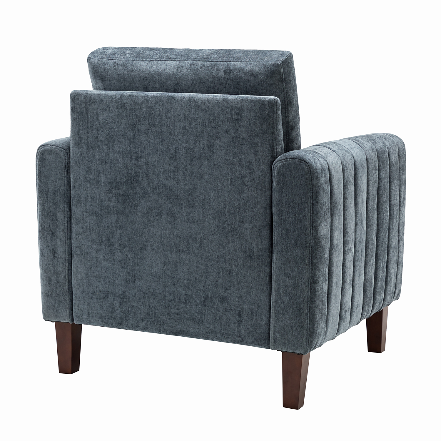 The Deionides Navy Tufted Glam Accent Club Chair is a modern chair designed to add a touch of sophisticated style to any living room. Its soft polyester upholstery and rich hue create an eye-catching focal point. The vertical channel tufting and solid wood legs enhance its glamour, while the sturdy wood frame and soft filling provide an inviting and comfortable feel. This versatile and elegant chair is perfect for a variety of decor styles, from living rooms to home offices.