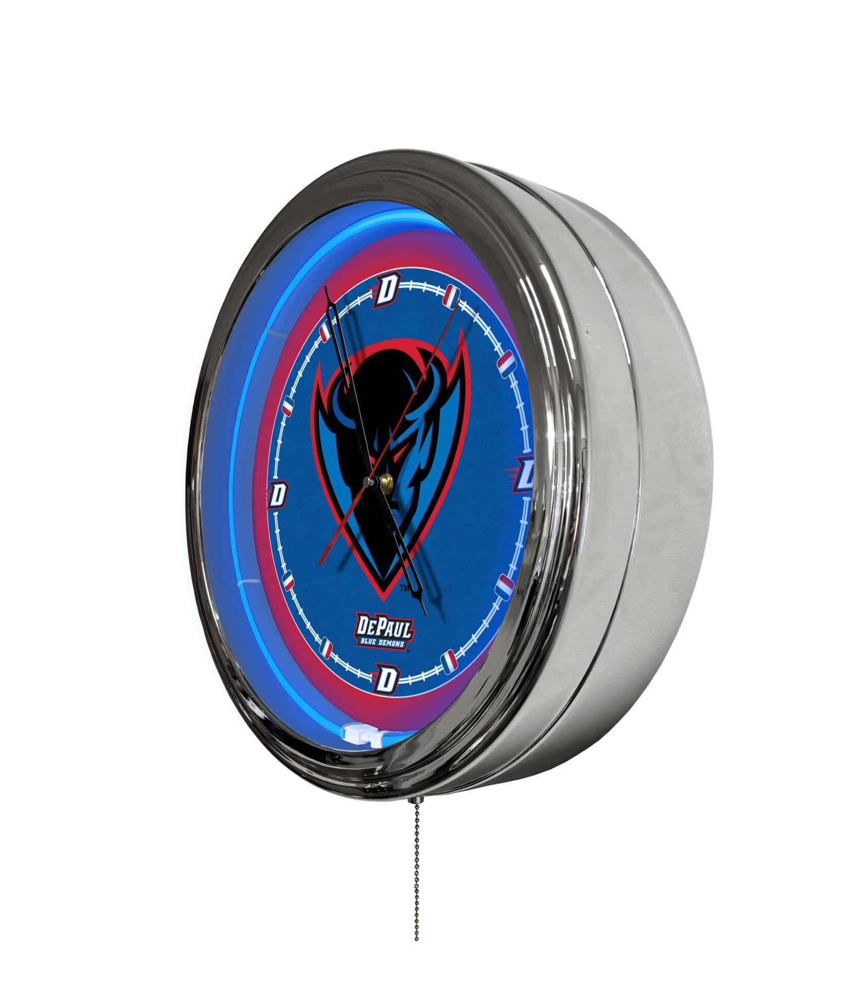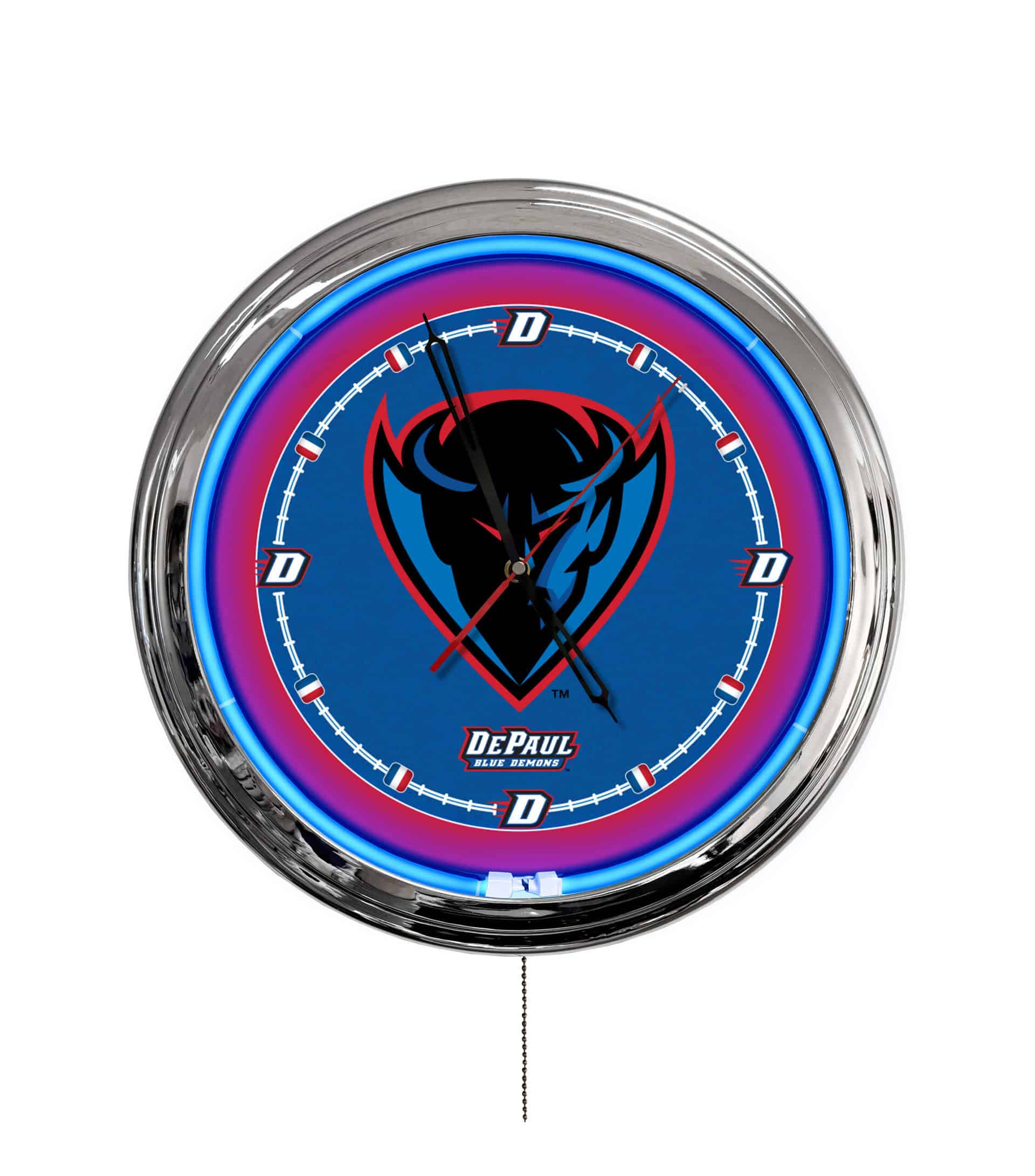 The DePaul University 16-Inch LED Wall Clock in Chrome is a stylish and functional addition to any man cave. This clock features an impressive array of lighting options that enhance its visual appeal and make it a standout piece in your décor. With 20 static colors and 19 dynamic modes, you can easily customize the ambiance to suit any occasion. The clock’s sleek chrome casing and vibrant logo are sure to grab attention and spark conversations.