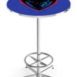 Upgrade your bar, game room, or man cave with this high-quality 42-inch pub table featuring a sleek chrome finish and durable star base. This table is designed for the ultimate sports fan, offering a vibrant, full-color laminate top that resists scratches and ensures years of enjoyment. The commercial-grade steel base is triple chrome-plated for a rich, long-lasting finish, and the adjustable floor glides ensure stability on uneven surfaces. Easy to assemble and exceptionally sturdy, this table is the perfect addition to your space, combining style, functionality, and durability.