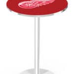 Made for the ultimate sports fan, this 42-inch pub table is the perfect addition to your bar, game room, or man cave. Designed with a sleek chrome finish and a 36-inch diameter top, this table combines style, durability, and functionality. The sublimated, full-color, scratch-resistant laminate top is attached with an environmentally friendly, VOC-free adhesive, ensuring a vibrant and long-lasting design. Its round base is crafted with commercial-grade materials, including a cast iron base plate, steel column, and spider, providing optimal stability and strength. Adjustable feet allow the table to sit level on any surface, making it a versatile and practical choice for any space.