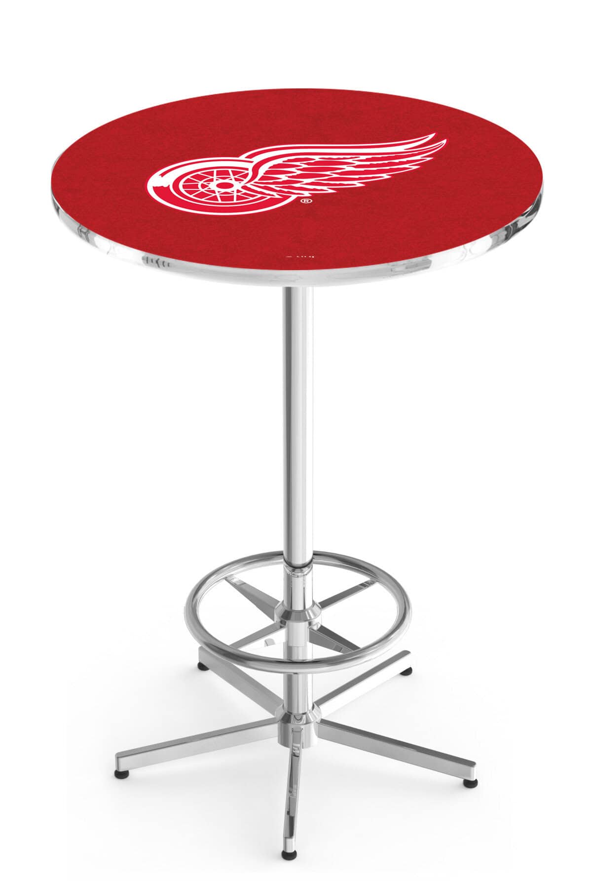 Elevate your bar, game room, or man cave with this high-quality 42-inch pub table. Designed for durability and style, this table features a vibrant, full-color, scratch-resistant laminate top and a sleek, triple chrome-plated base. The sturdy construction ensures years of use, even in the most lively settings, while the adjustable floor glides provide stability on uneven surfaces. Easy to assemble and clean, this table is a perfect addition to any space where you want to showcase your team pride in style.