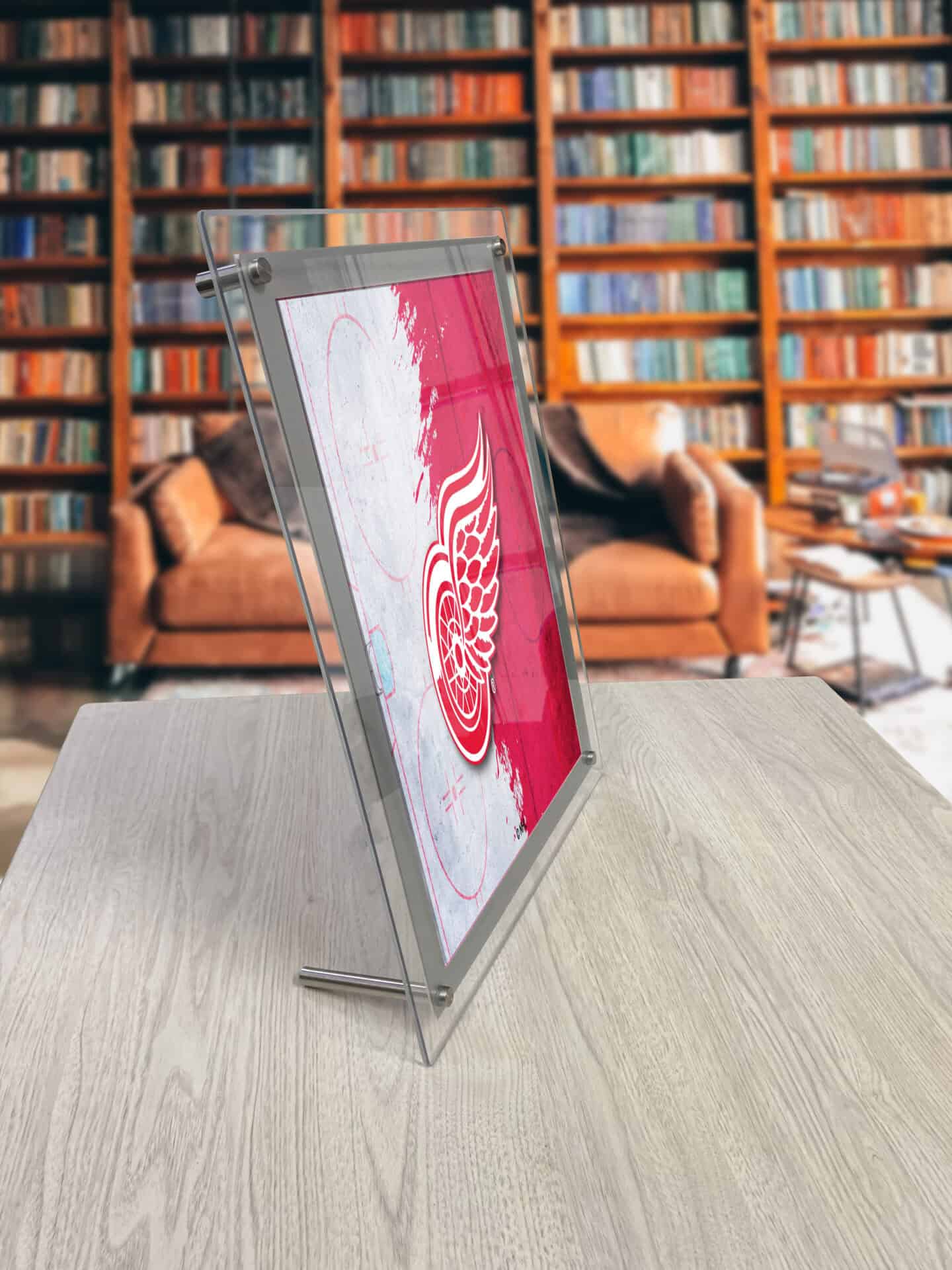 - Mounting: Includes hardware for wall mounting (1″ Stand-offs) or desktop display (3 3/4″ foot).