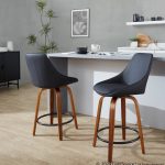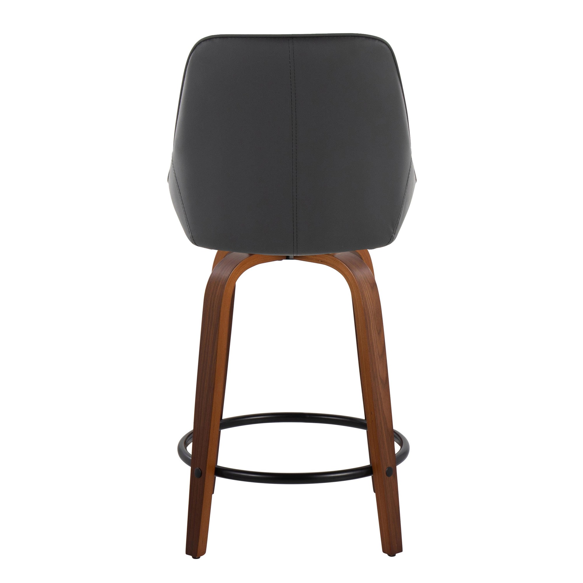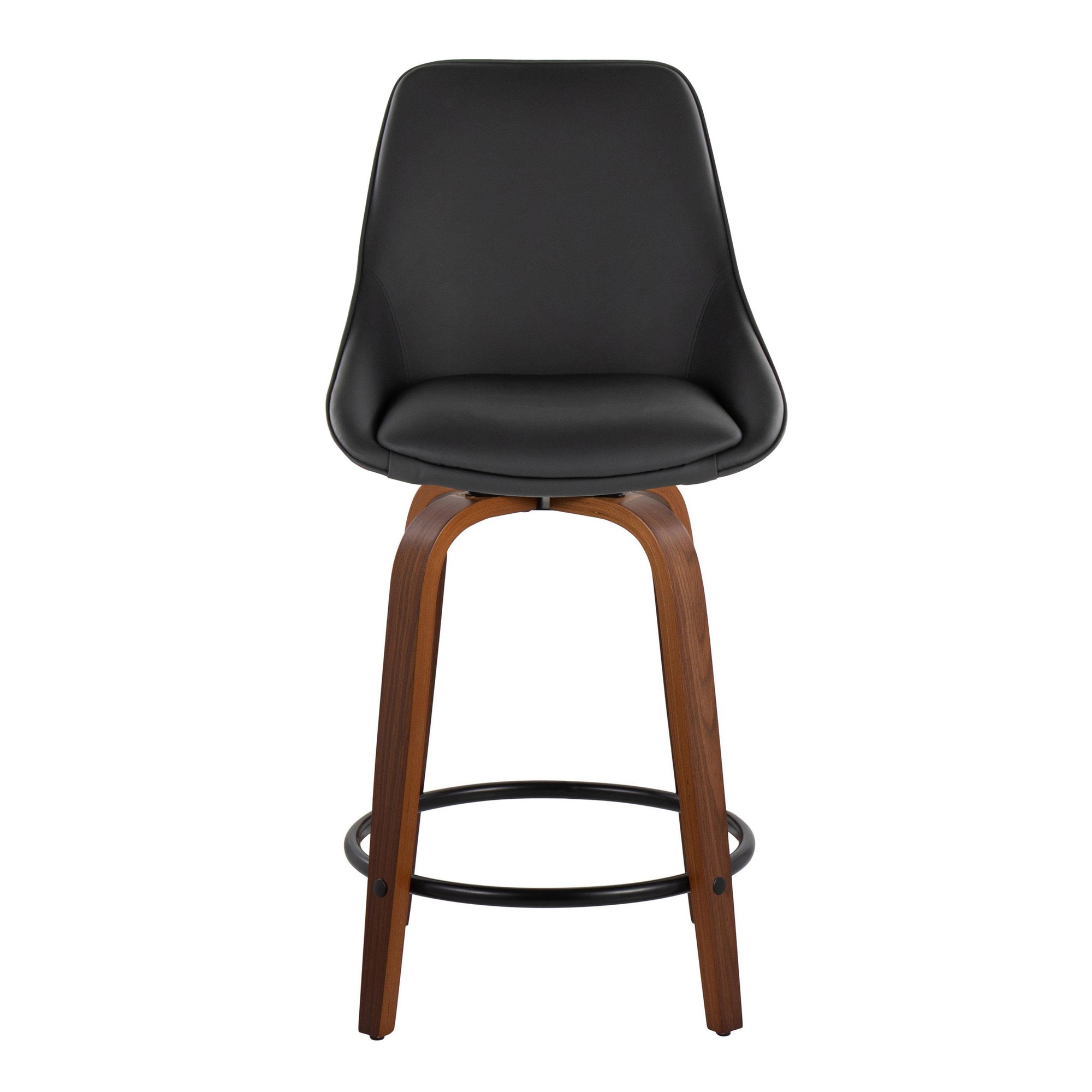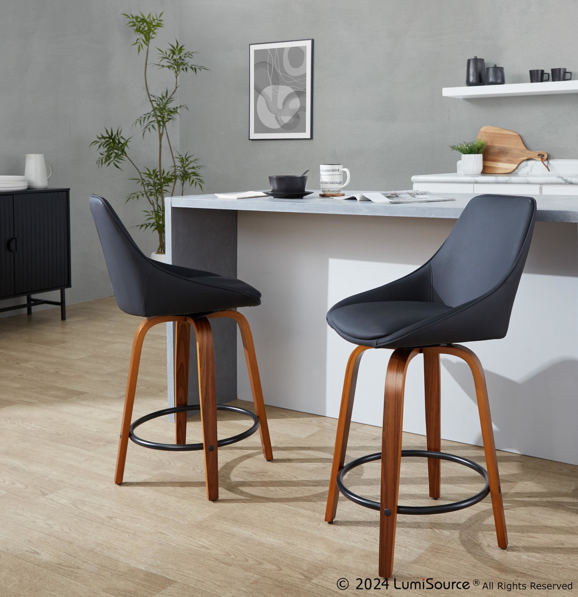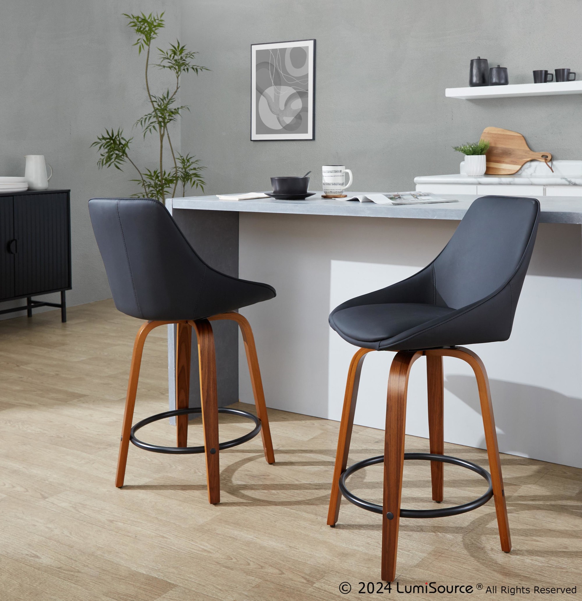 The Diana 24 Contemporary Walnut Black Faux Leather Counter Stools bring modern style and comfort to any space. Featuring plush, upholstered seats and backrests, these swivel stools are a fantastic addition to your home. The sturdy wood frame and built-in metal footrest provide durability and comfort.