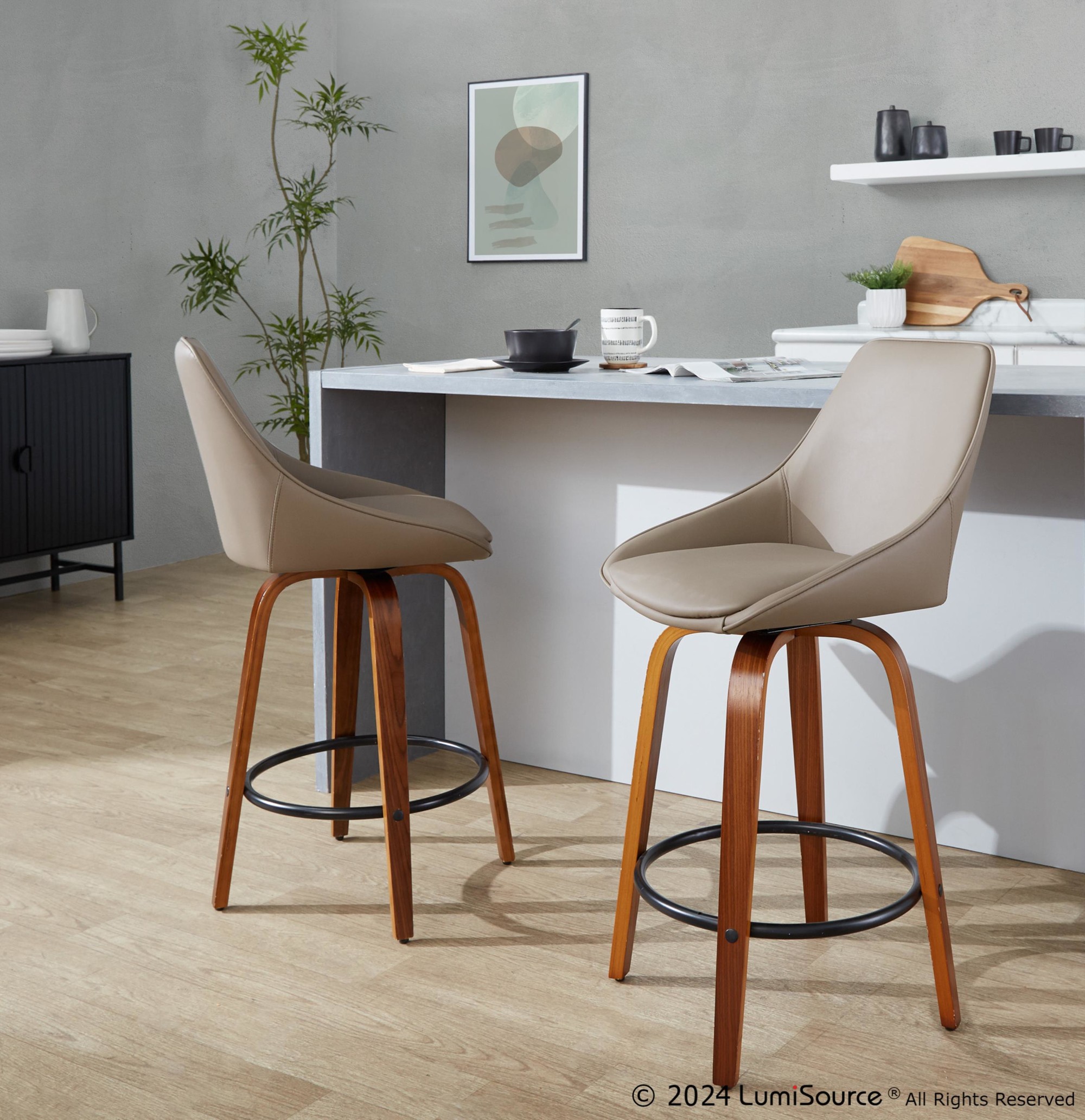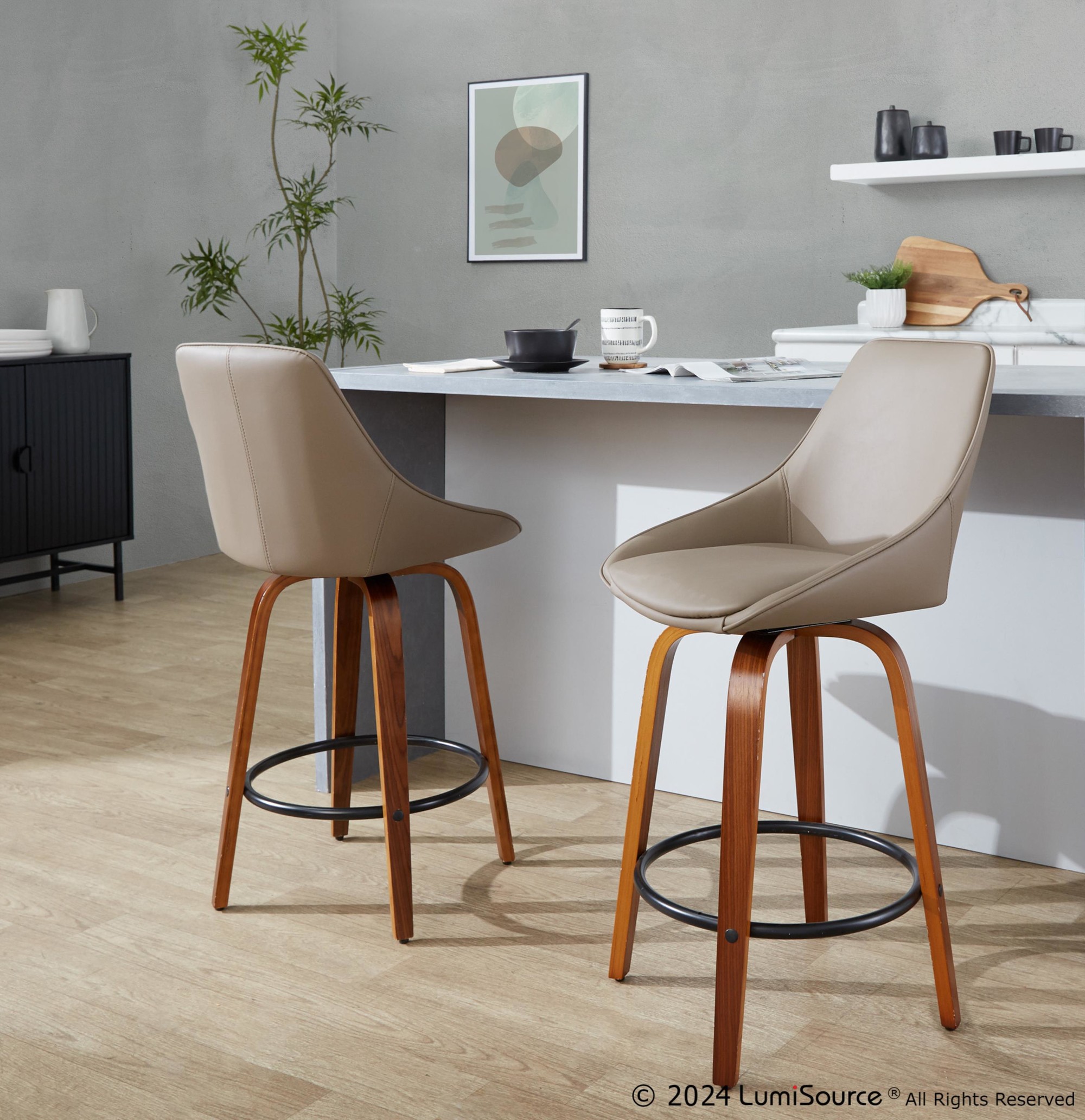 Diana 26 Walnut Brown Contemporary Swivel Counter Stools (Set of 2)