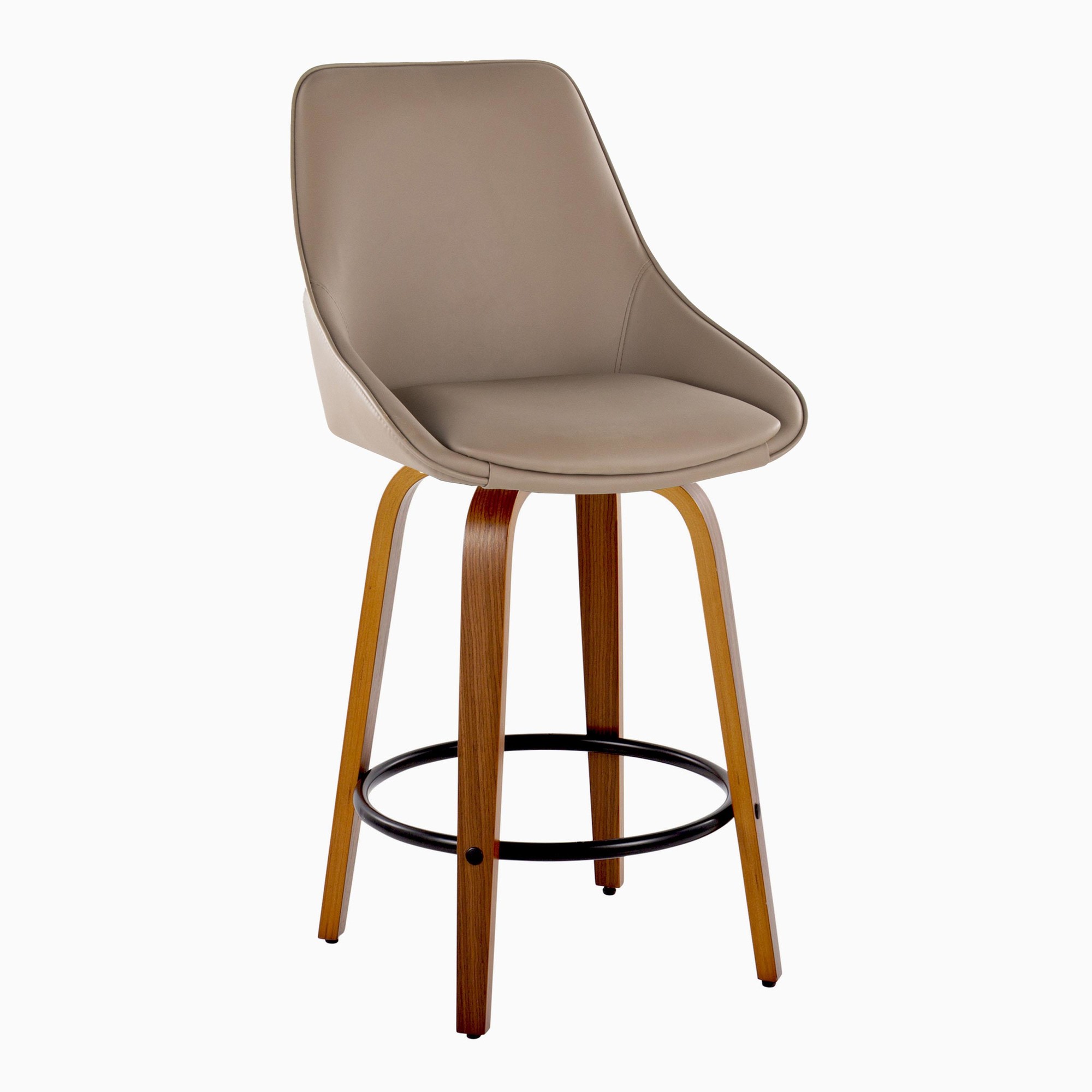 The Diana 26 Walnut Brown Contemporary Swivel Counter Stools bring a blend of modern style and comfort to your space. Featuring a plush upholstered seat and backrest, these stools offer a comfortable seating experience. The sturdy wood frame, complete with a built-in metal footrest, ensures durability and support.