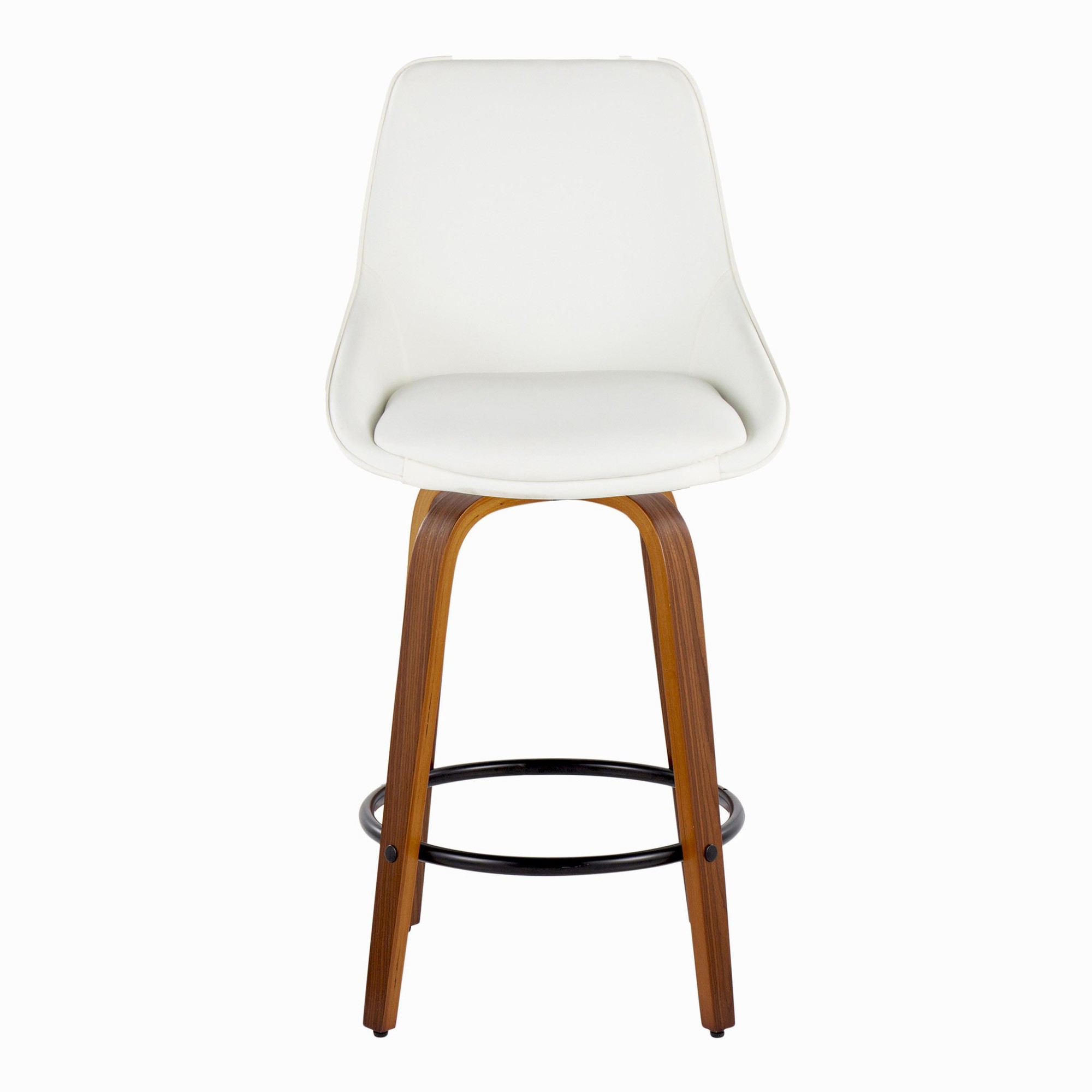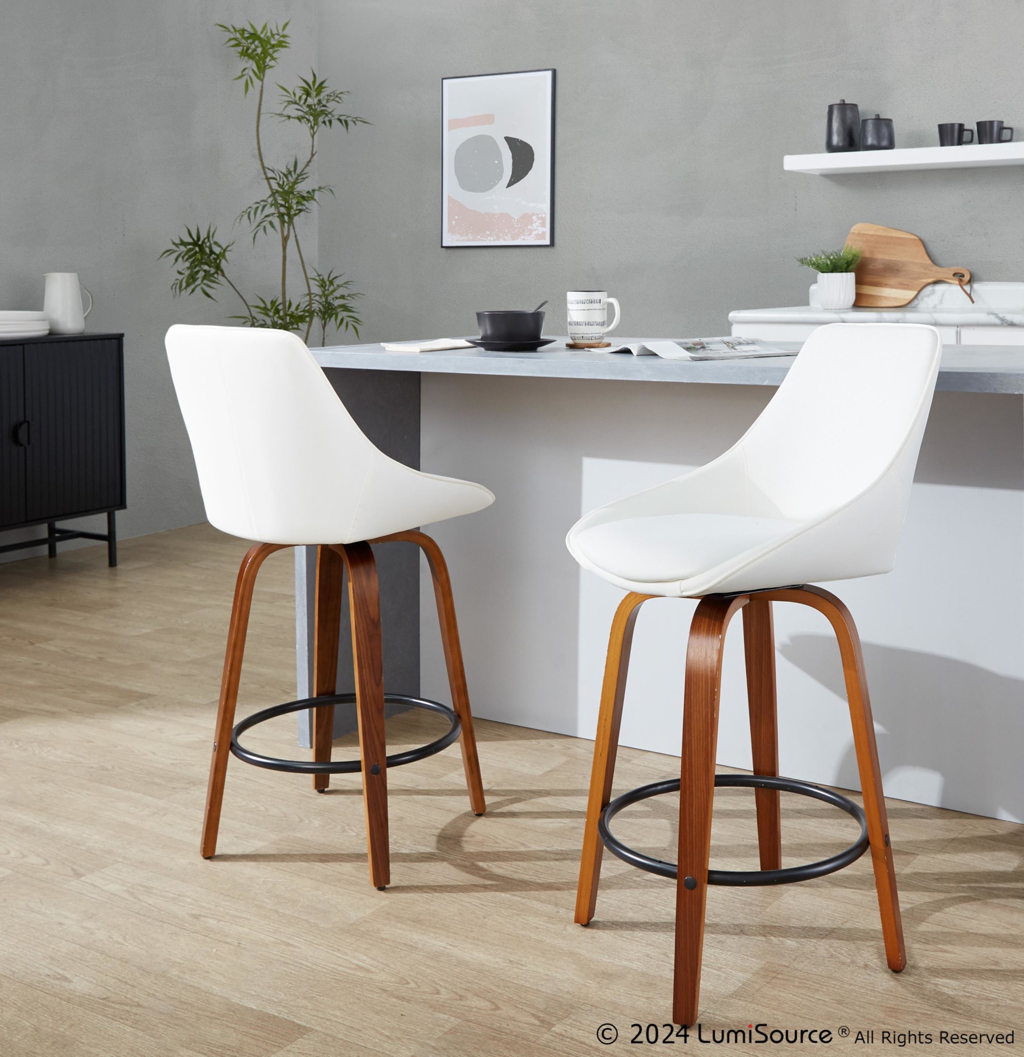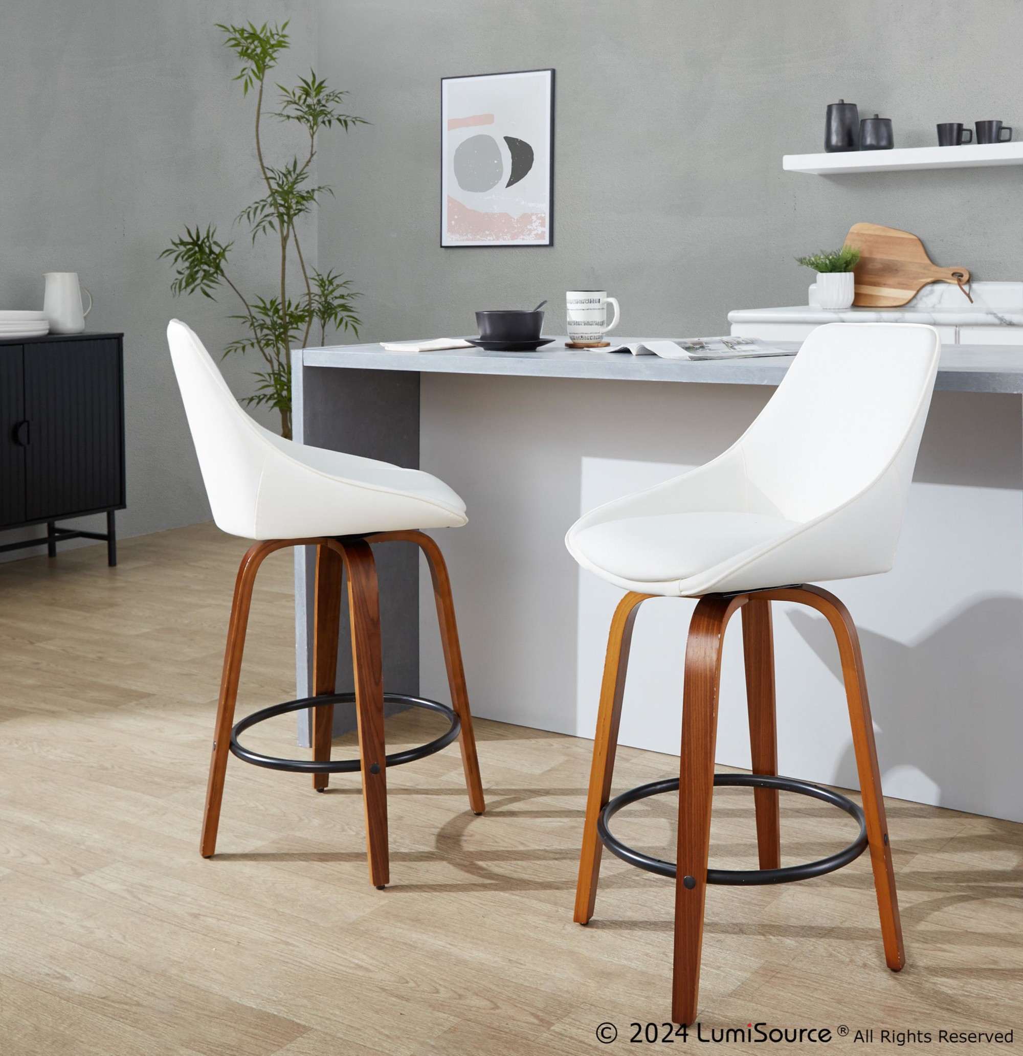 The Diana Fixed-Height Counter Stool brings modern style and comfort to any space. Featuring a plush upholstered seat and backrest, this stool offers a comfortable seating experience. The sturdy wood frame provides stability, while the built-in metal footrest adds extra comfort. Enjoy the sleek, tapered legs and 360-degree swivel, which provide both form and function, making it a versatile seating solution for your kitchen or dining area. These stools are sold in pairs.