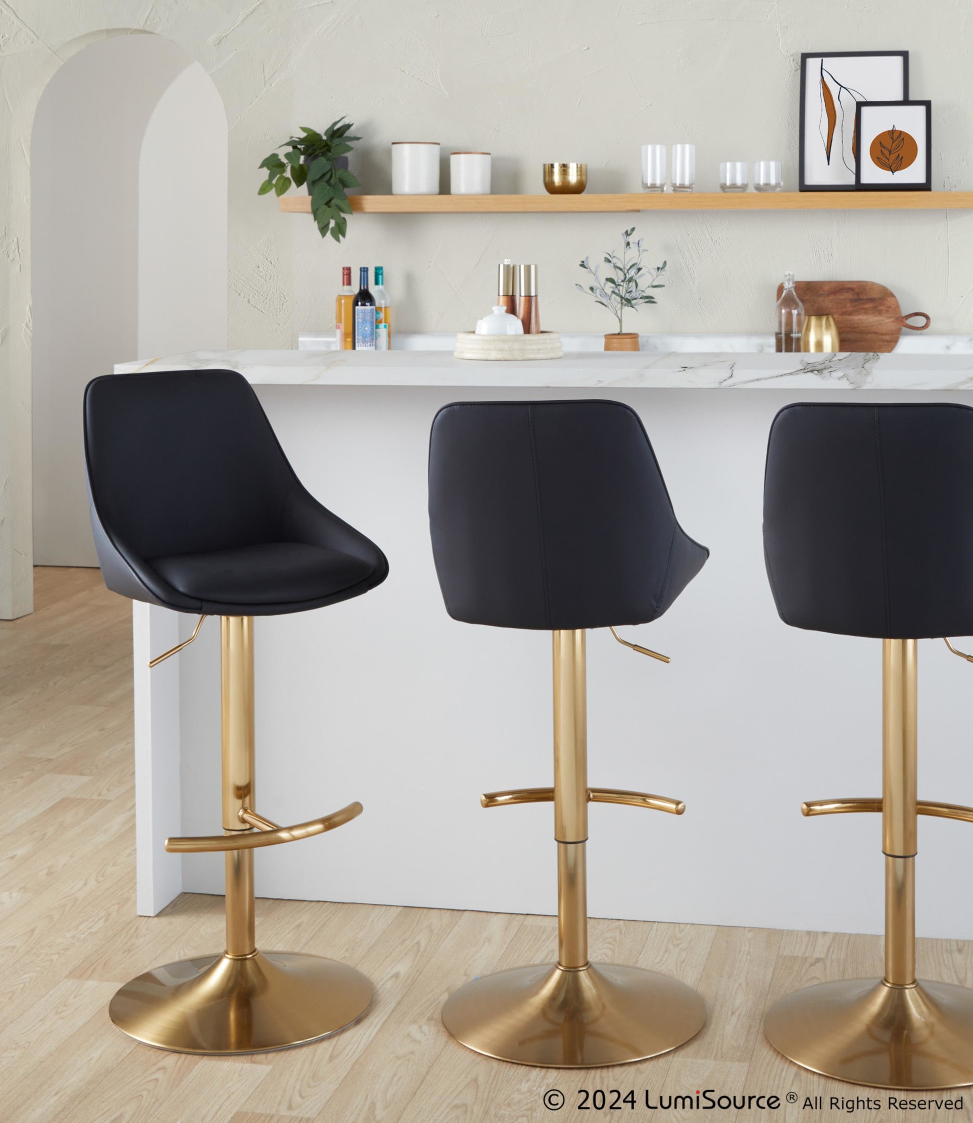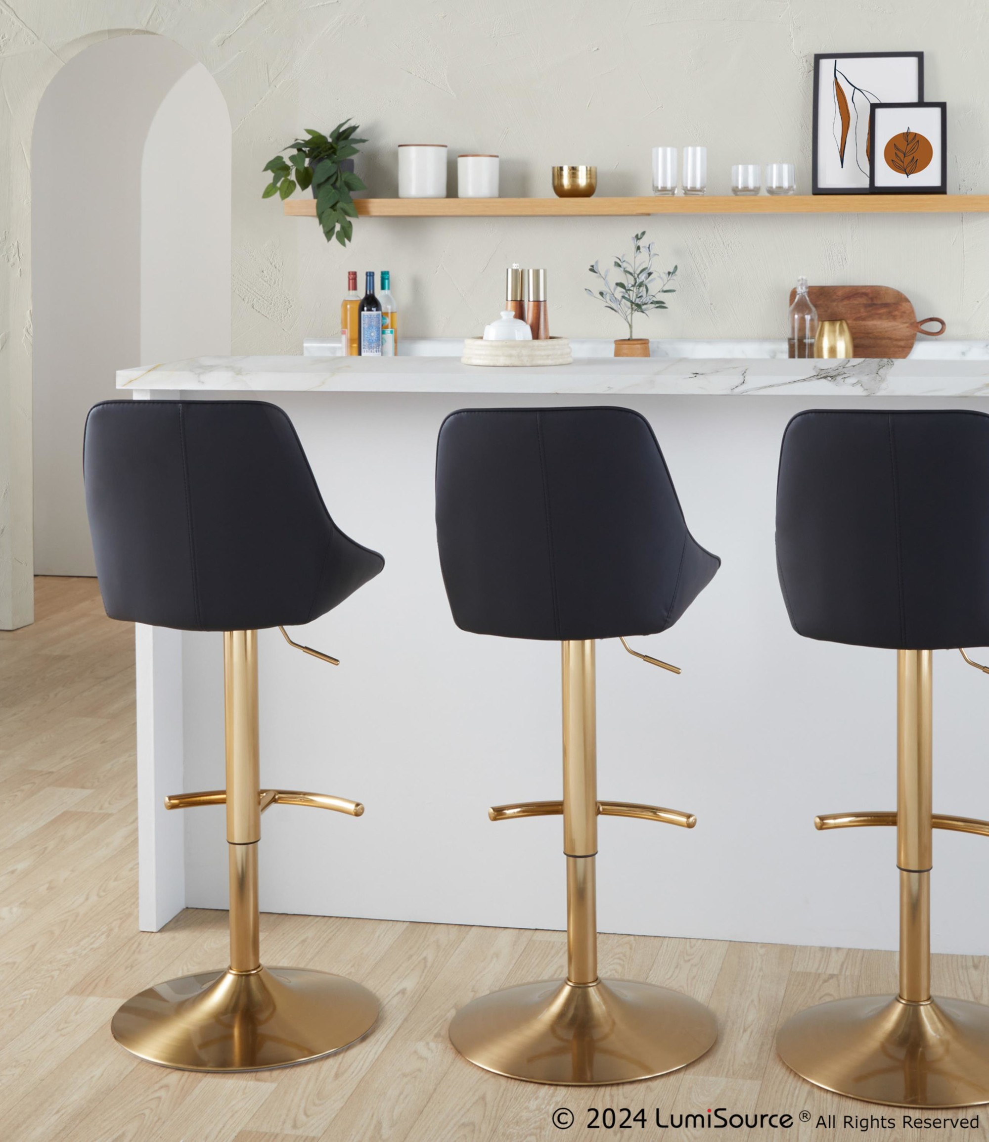 The Diana Adjustable Barstools bring modern style and comfort to your space. These barstools feature a plush, upholstered seat and backrest, perfect for long conversations and relaxed evenings. The sturdy metal base includes a built-in footrest, adding extra comfort.