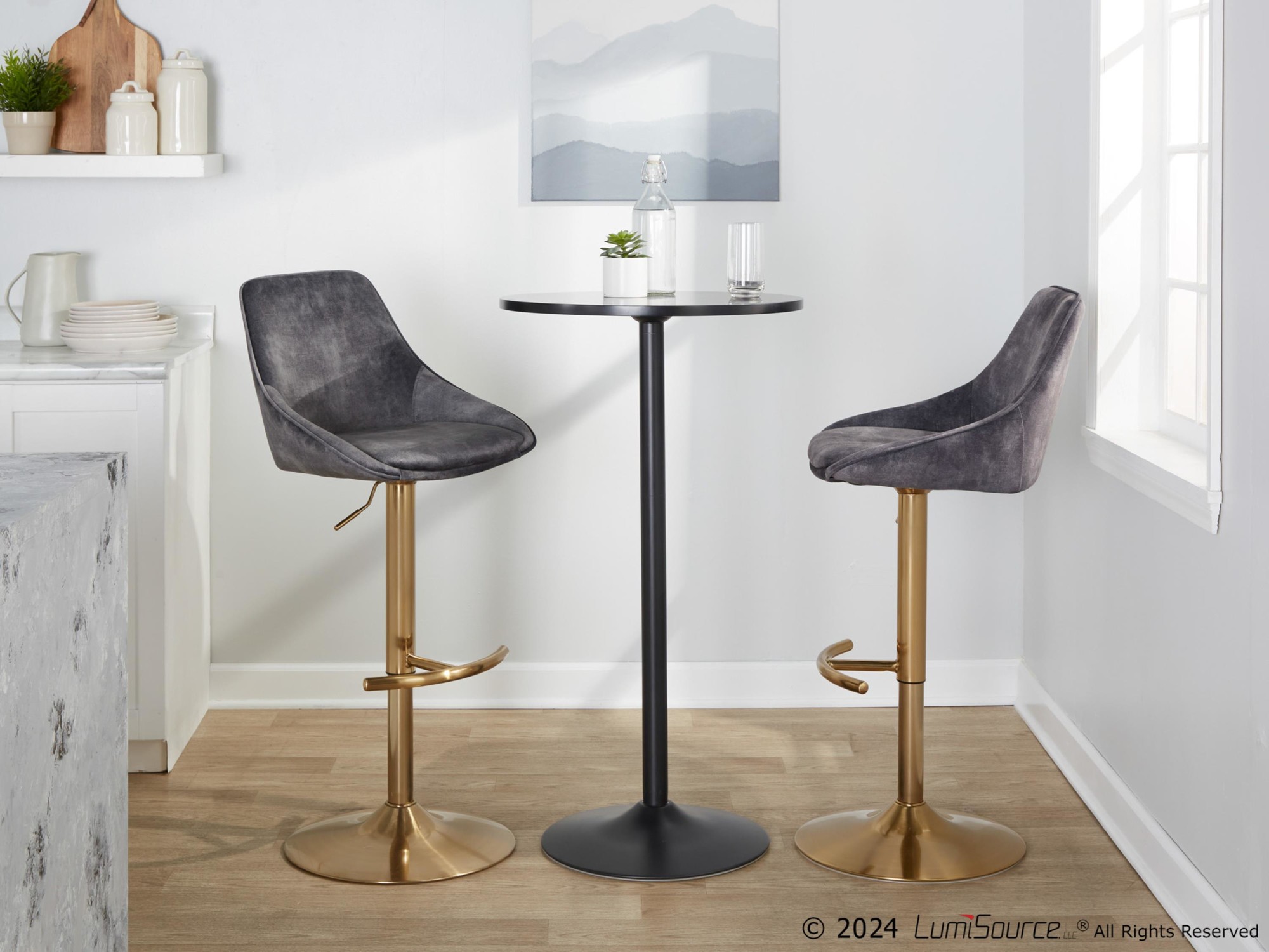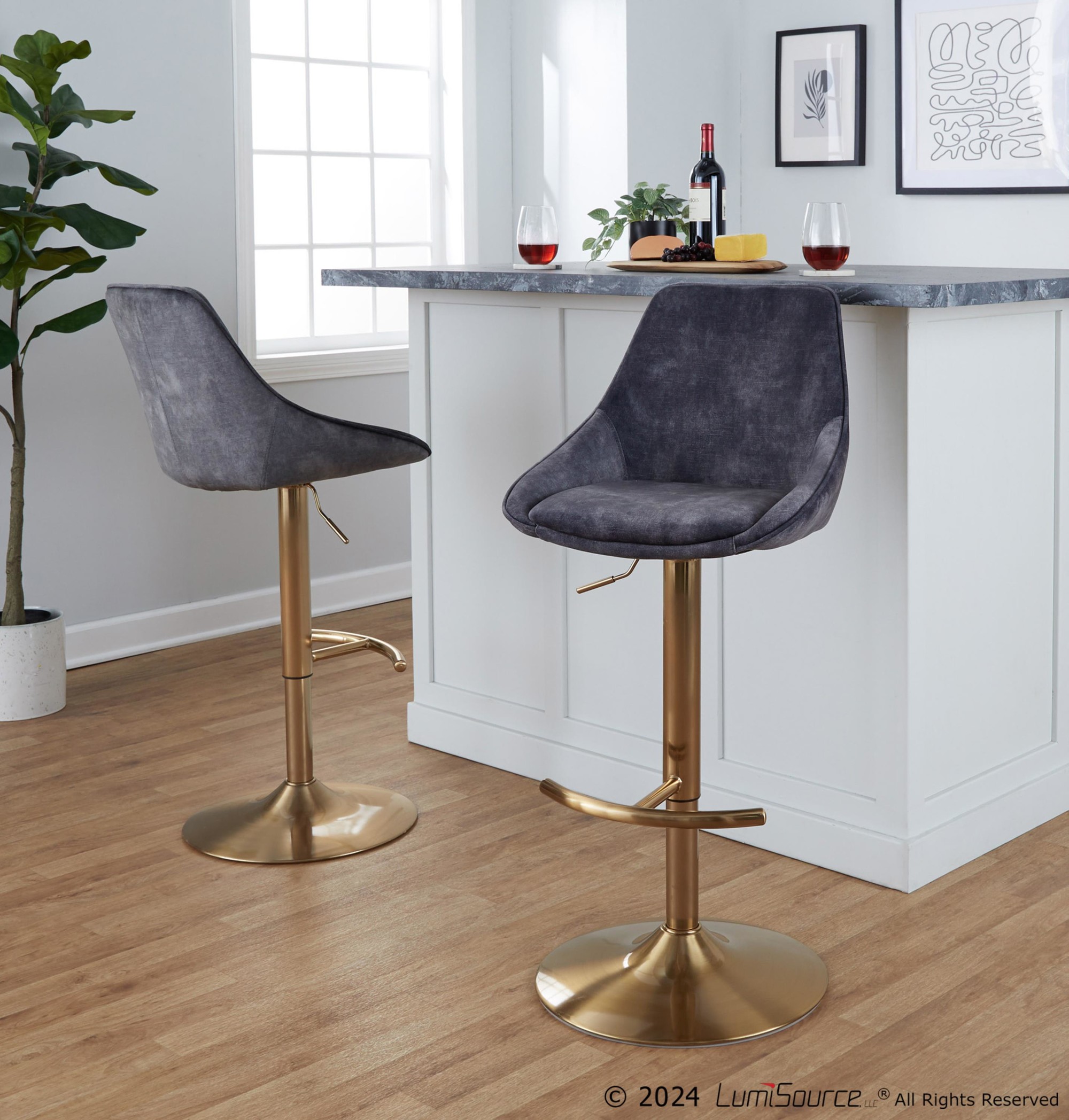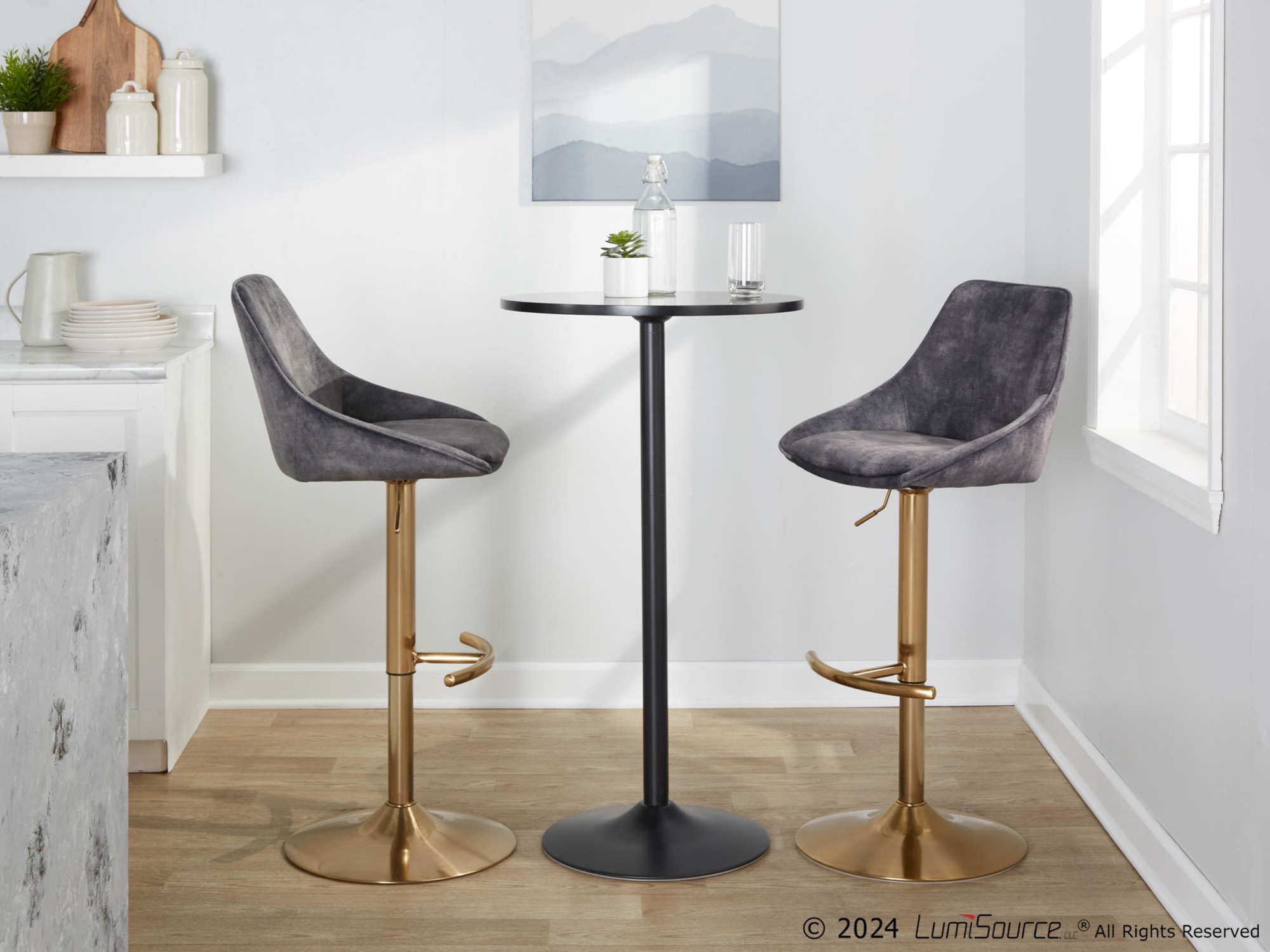Be the first to review “Diana Gold Steel Grey Velvet Contemporary Swivel Bar Stools (Set of 2)”