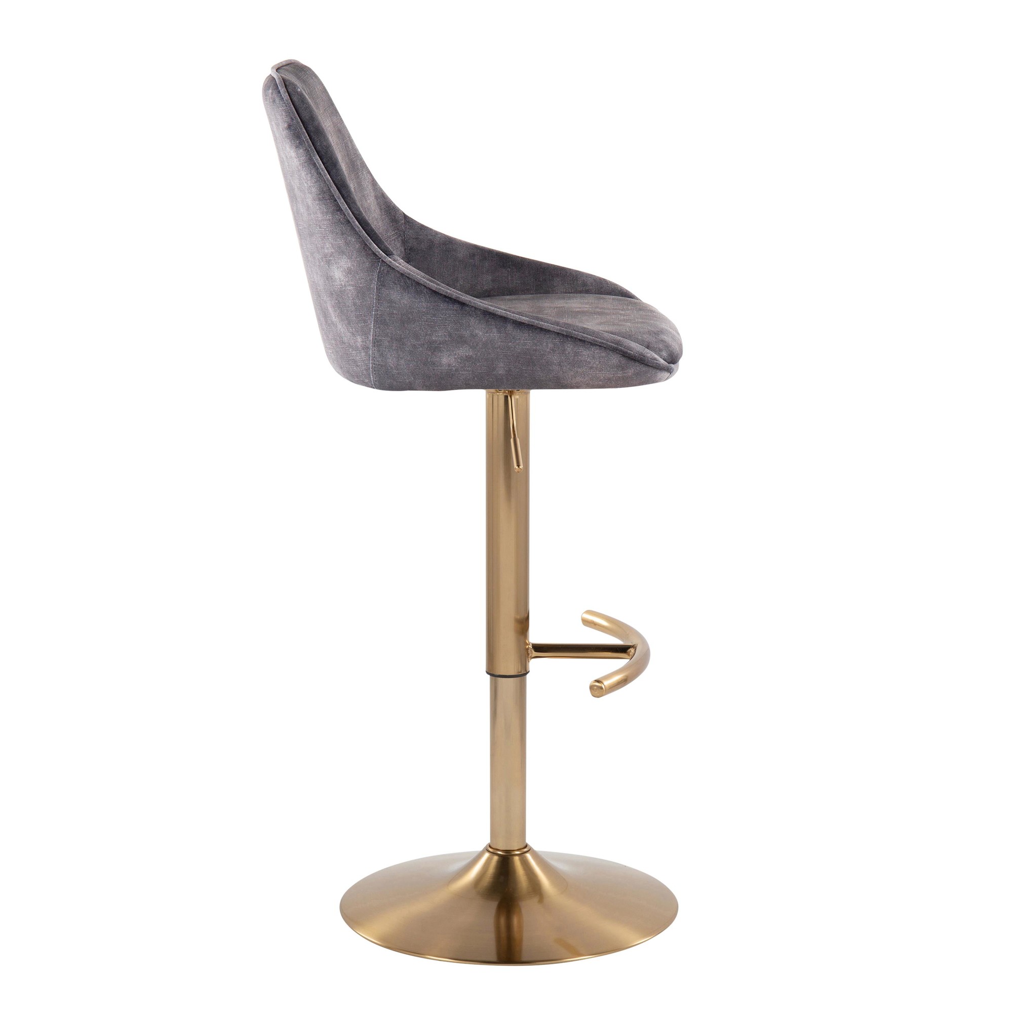 Unleash your inner king with the Diana Gold Steel Grey Velvet Contemporary Swivel Bar Stools! This set of two stools will transform your man cave bar into a regal retreat. Enjoy contemporary styling with luxurious grey velvet upholstery. Each stool features an adjustable height and a 360-degree swivel, letting you survey your domain. The chrome metal base includes a built-in footrest for maximum comfort. Assembly is required, but the result is fit for a king. Product Specs: 20.75″L × 19″W × 37-45.5″H. Weight Limit: 250 lbs (each).