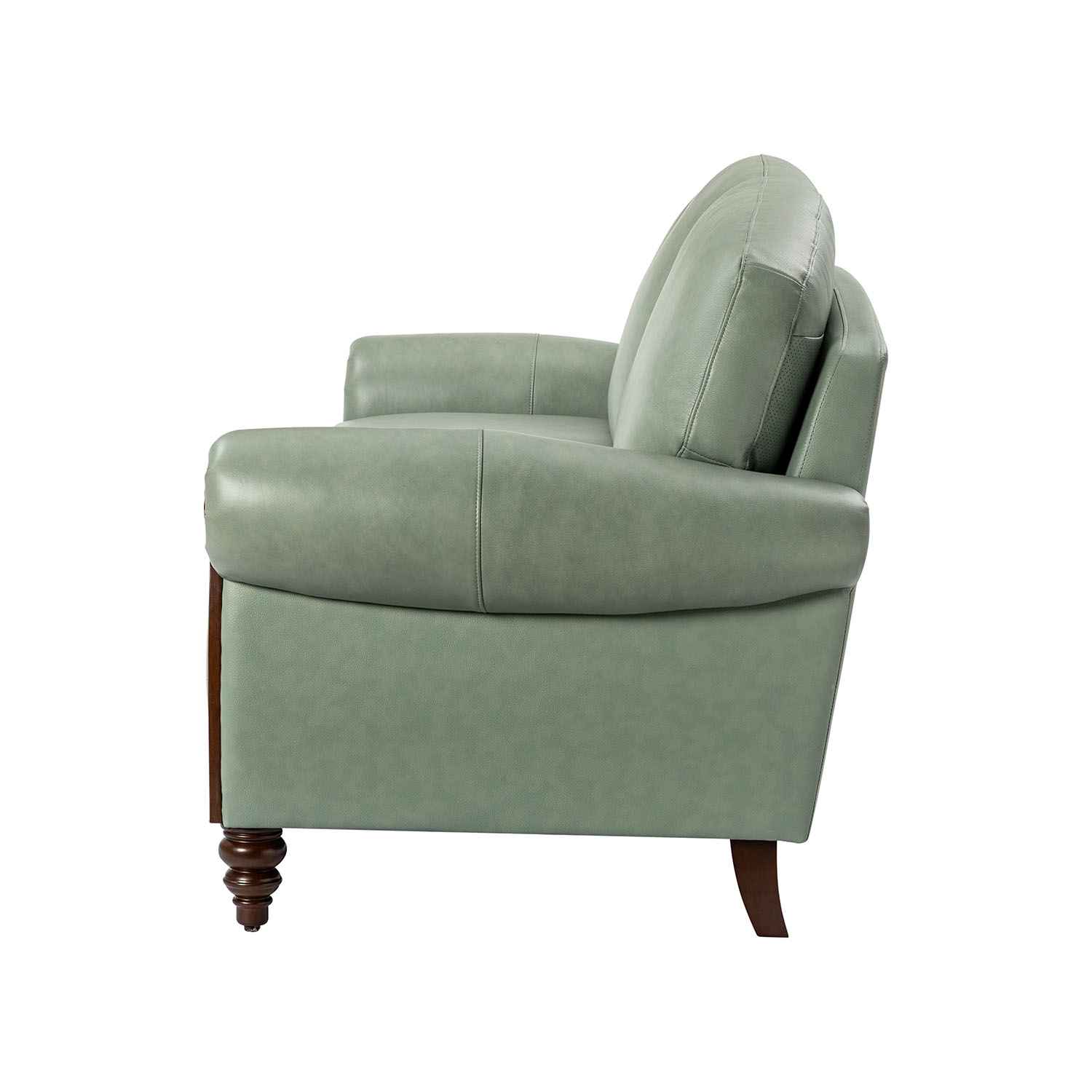 Enhance your man cave with this traditional style sofa. It features genuine leather upholstery for a touch of luxury and long-lasting comfort. The unique armrest design showcases solid wood carving for an artistic flair. The carved solid wood legs adds an air of sophistication and stability. Nailhead trims adorn the edges, adding a touch of opulence. The wood used is from sustainable forests. The sofa’s dimensions are 84 x 33.5 x 32.5/38.5 and the seat dimensions are 66 x 21 x 20. It weighs 156.74 lbs and requires assembly. The color is sage.