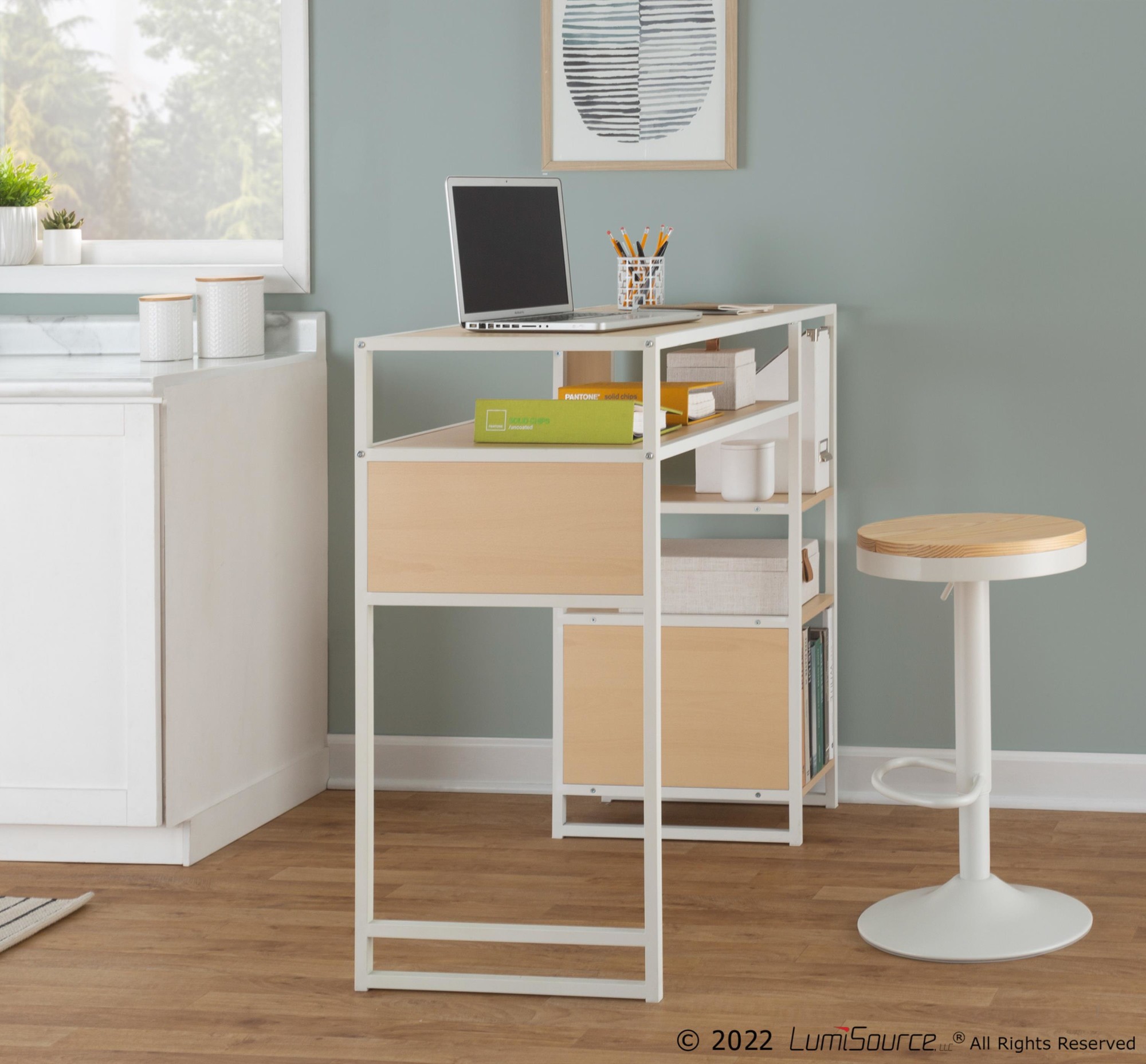 The Display Bar Height Table is a stylish and versatile piece, perfect for adding functionality to any room! Whether you need a sleek desk, a hip bar table, or extra kitchen storage, this multi-use table has you covered. Its combination of a steel frame and open wood shelves provides both durability and contemporary appeal.