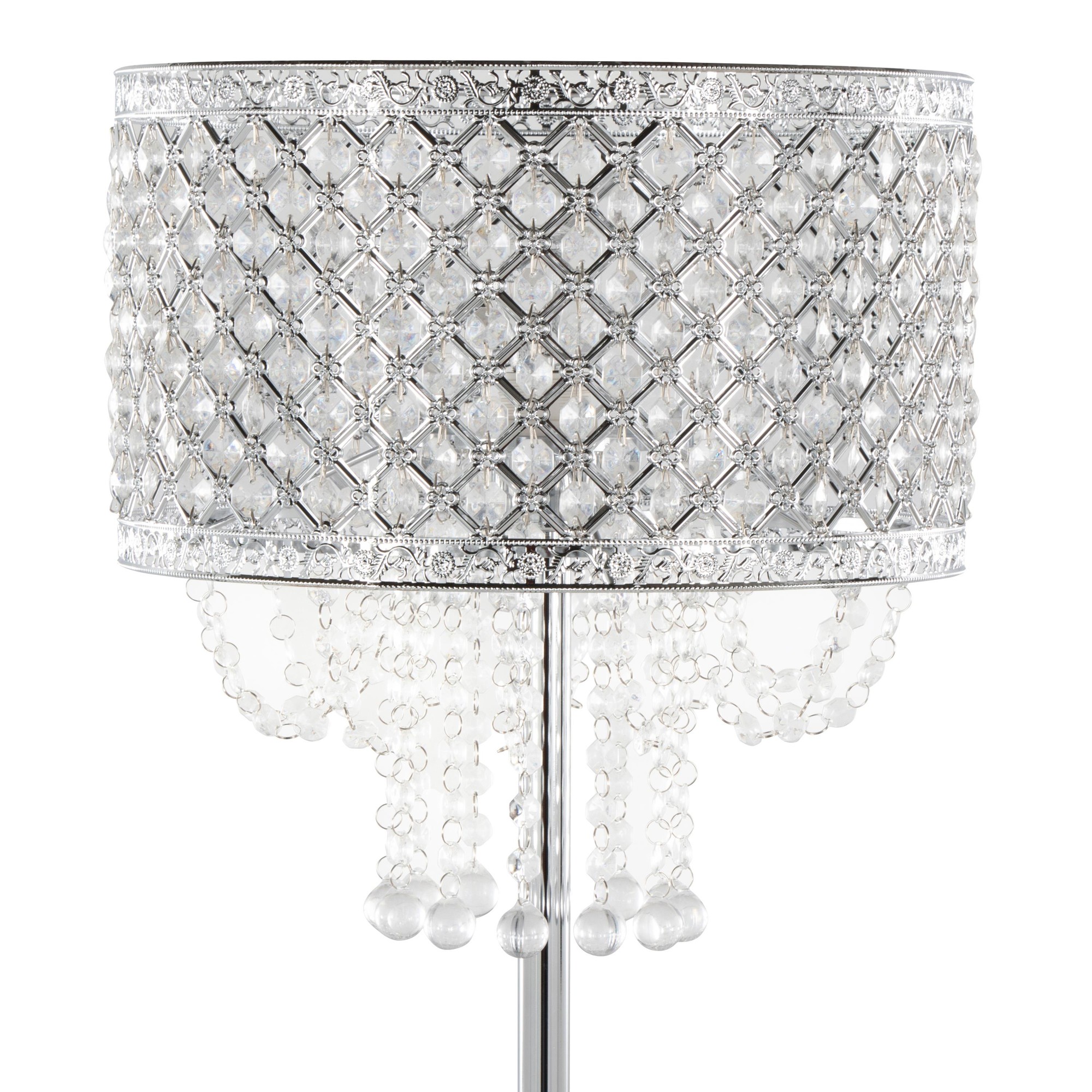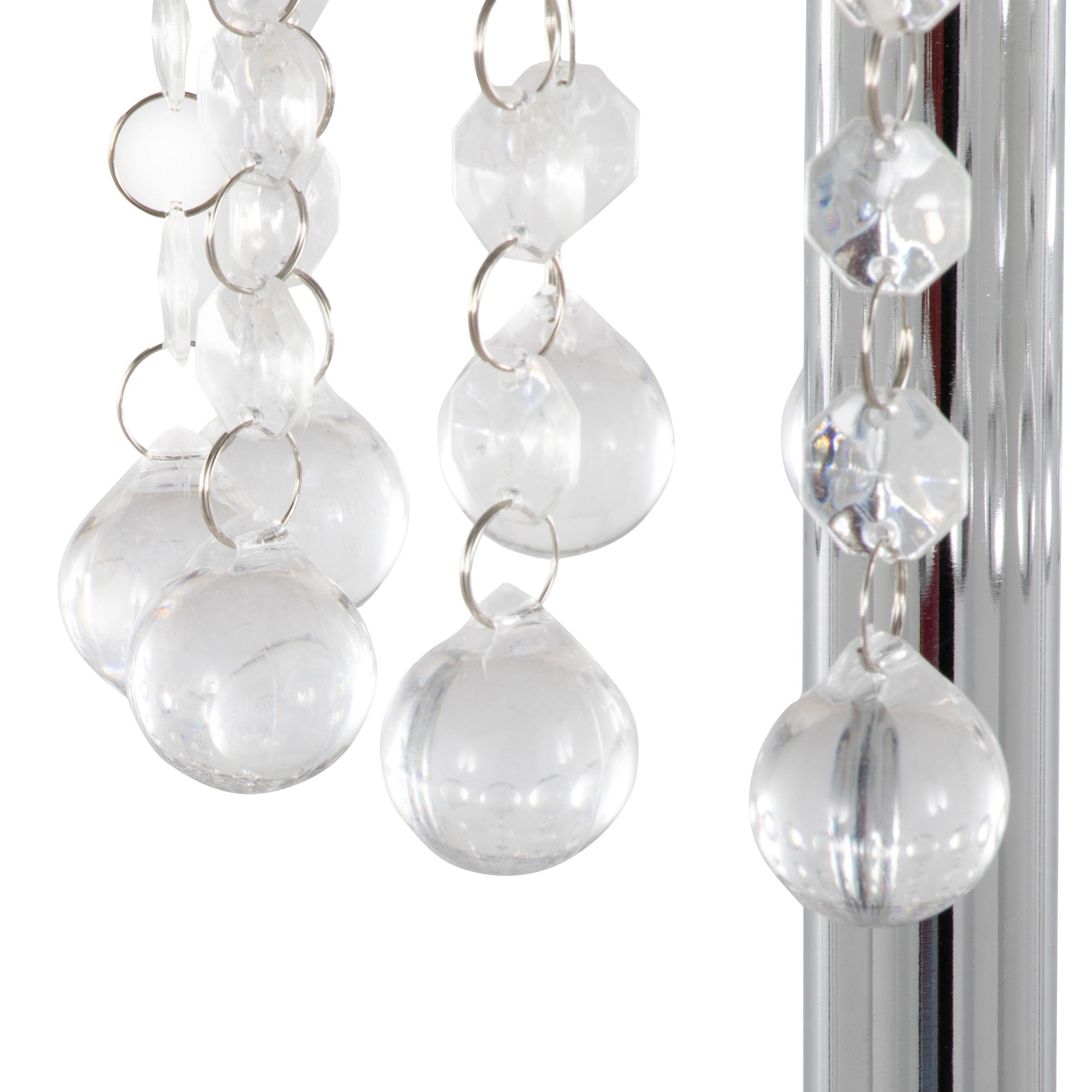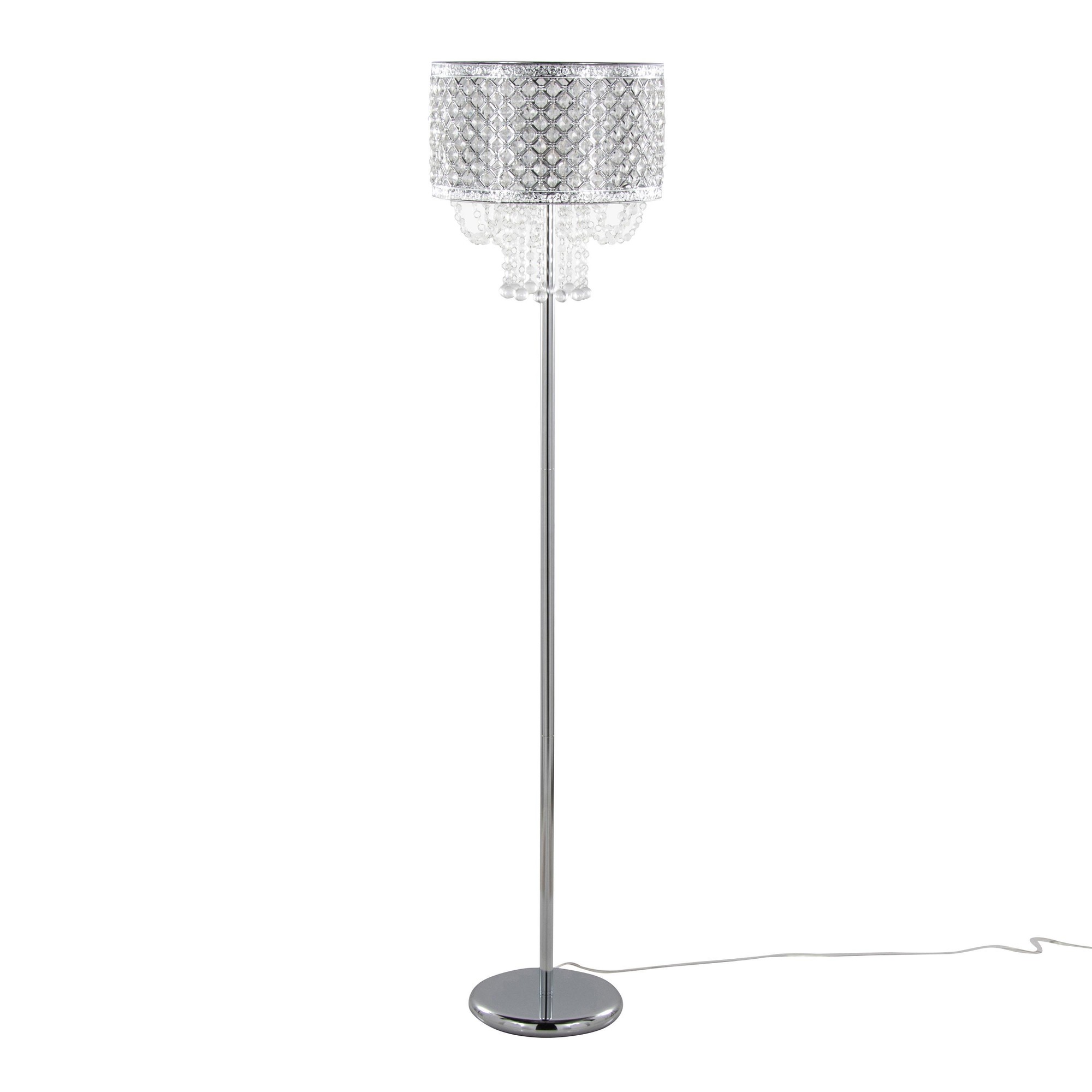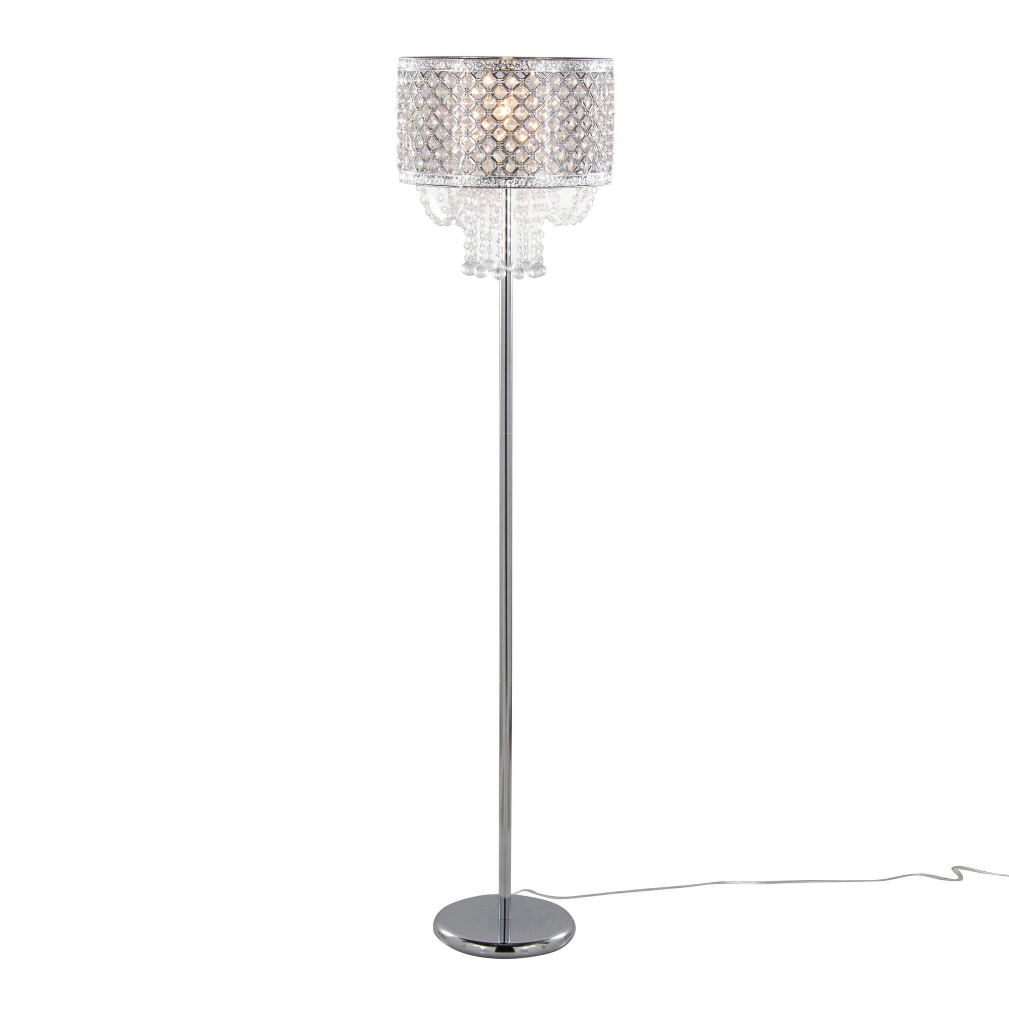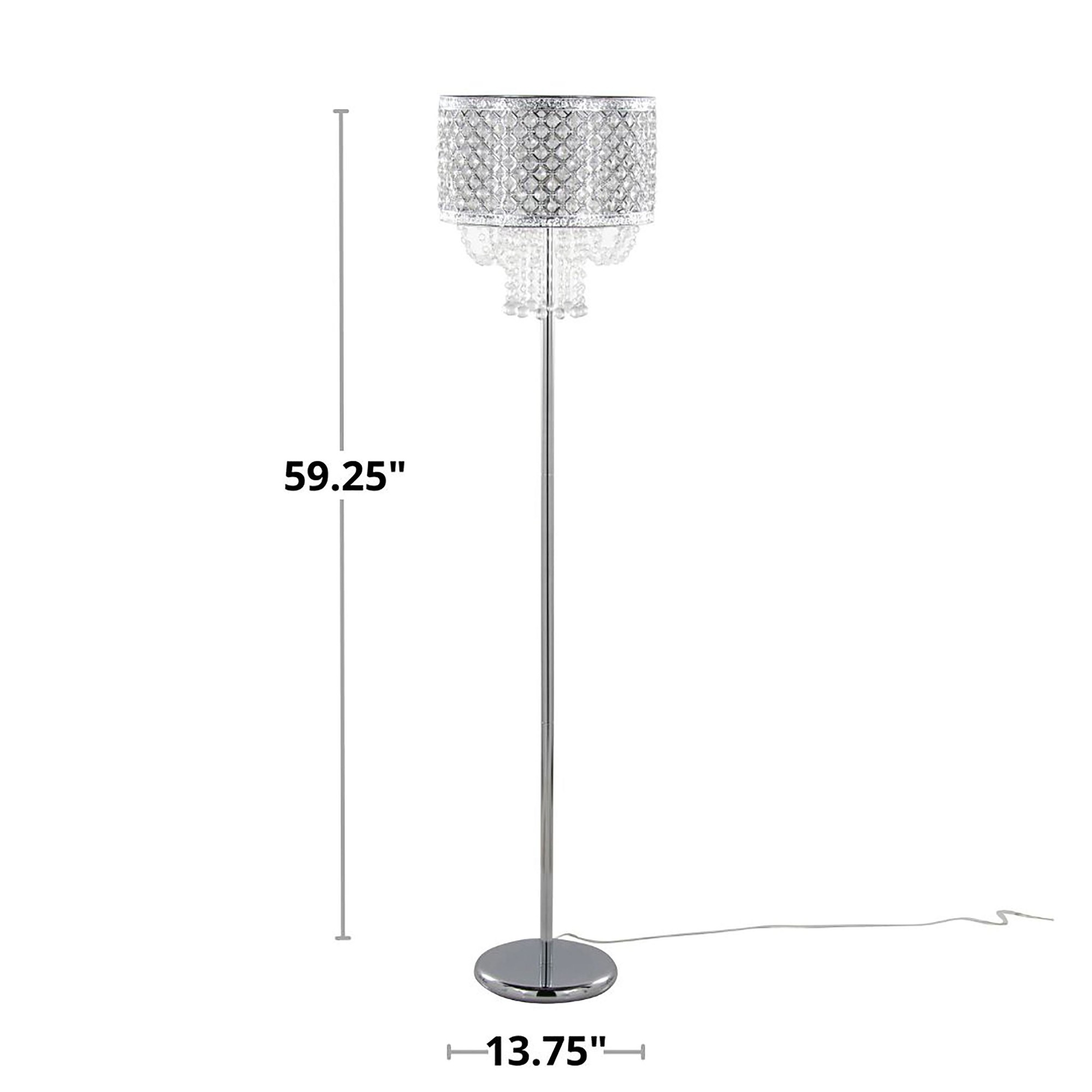 Add a touch of glamour to your space with the Droplets Floor Lamp. This chic, modern lamp features a metal shade adorned with individually threaded crystals and hanging crystal beads, creating a radiant display of cascading patterns on your walls when lit.