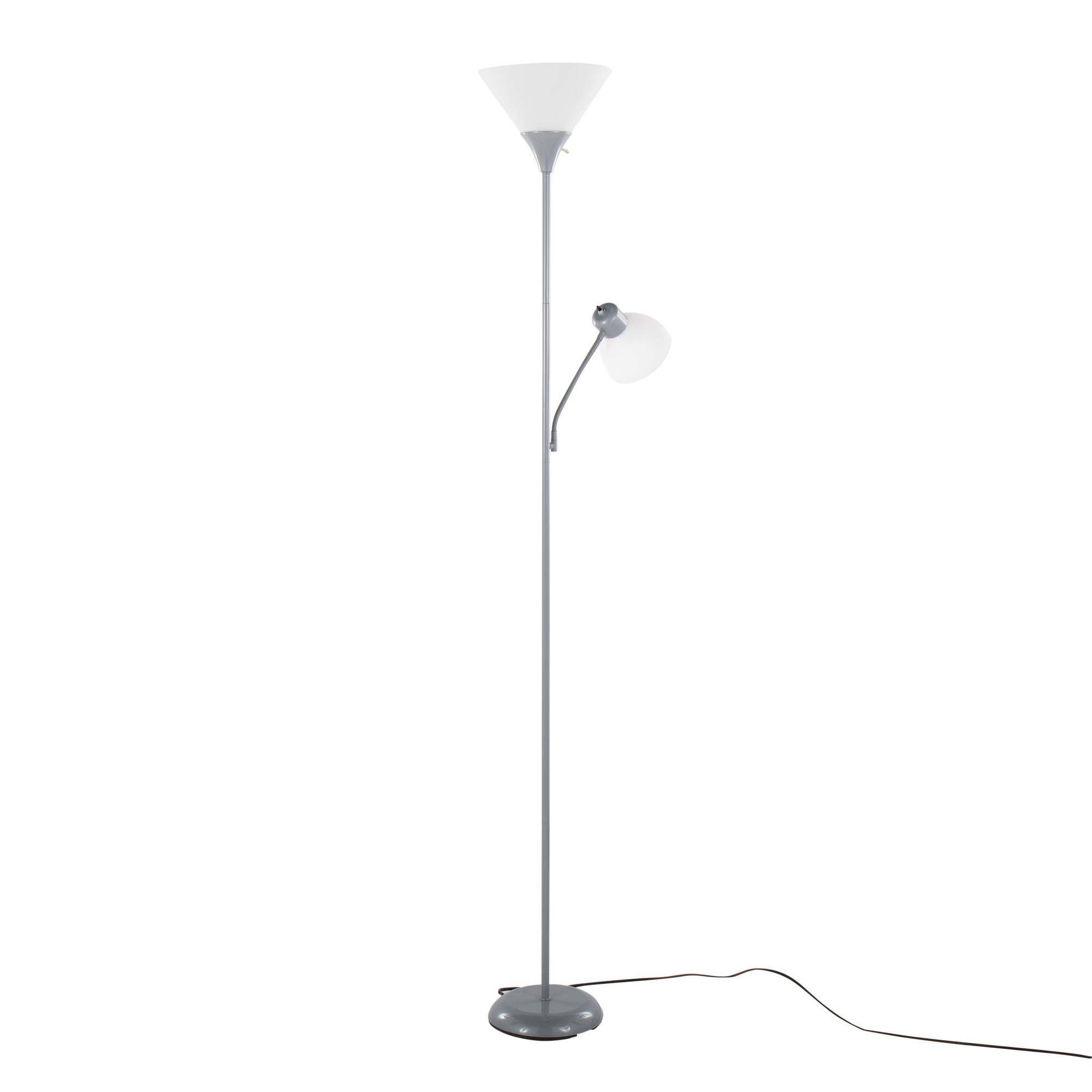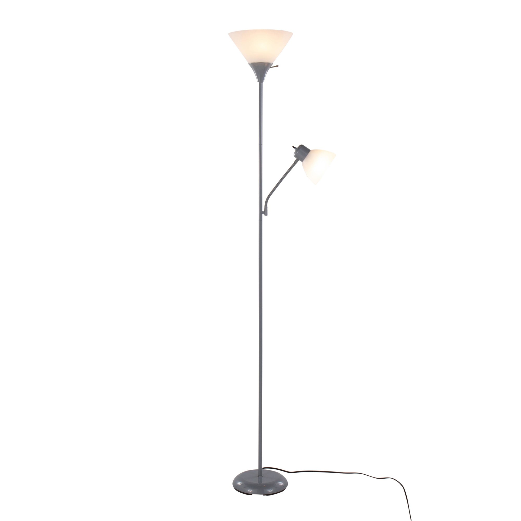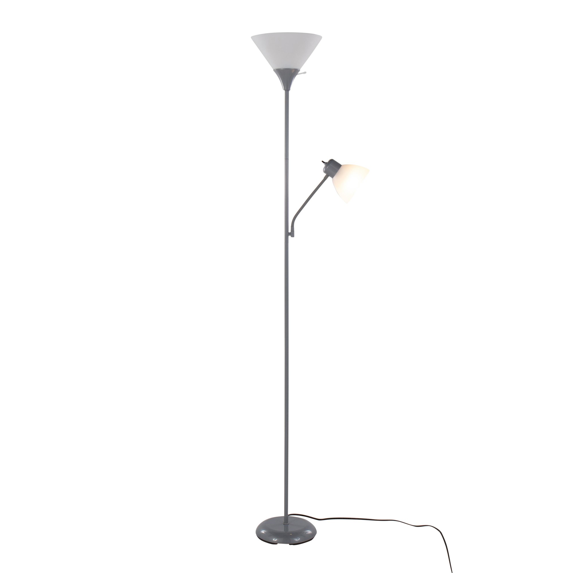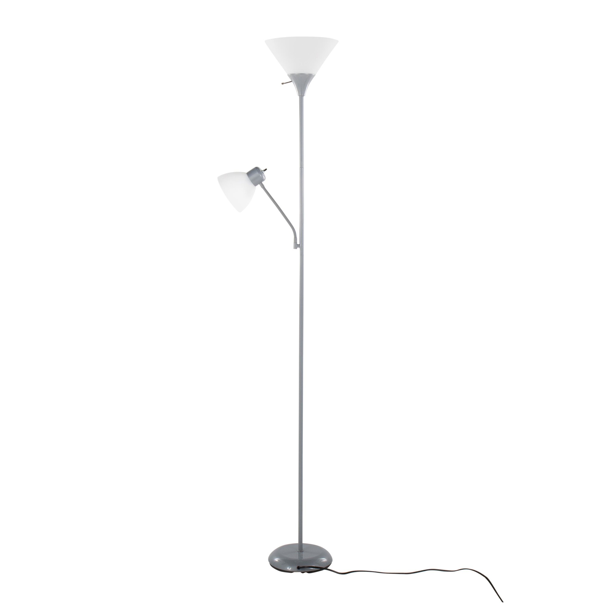 The dual-head design and adjustable arms let you customize the lighting to suit your needs, whether you’re reading, working, or simply relaxing. The silver finish and frosted white plastic shades add a touch of contemporary style to any room.