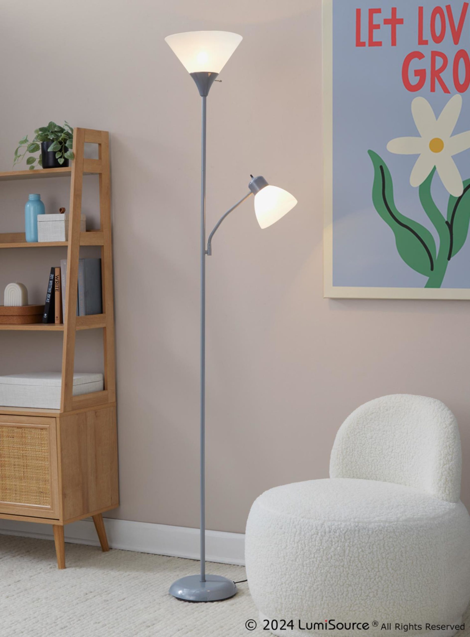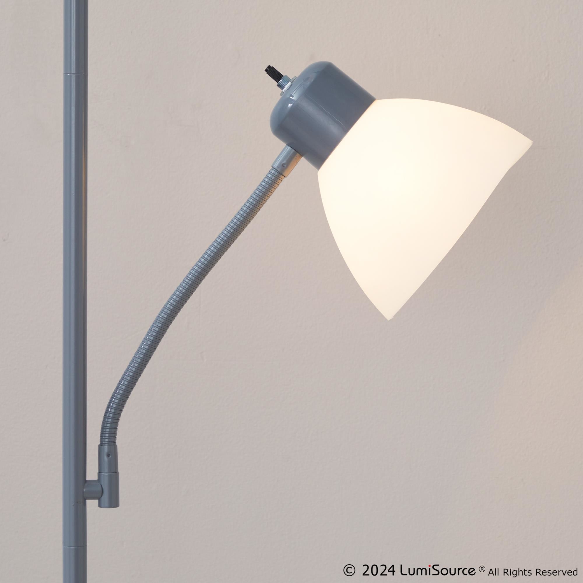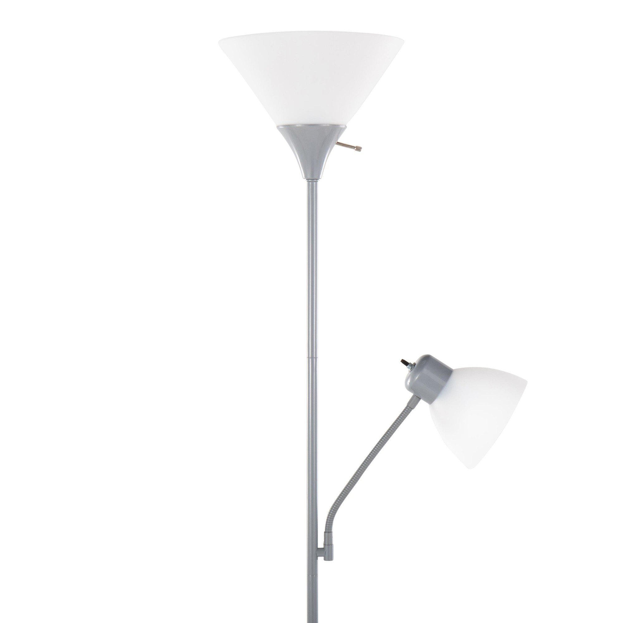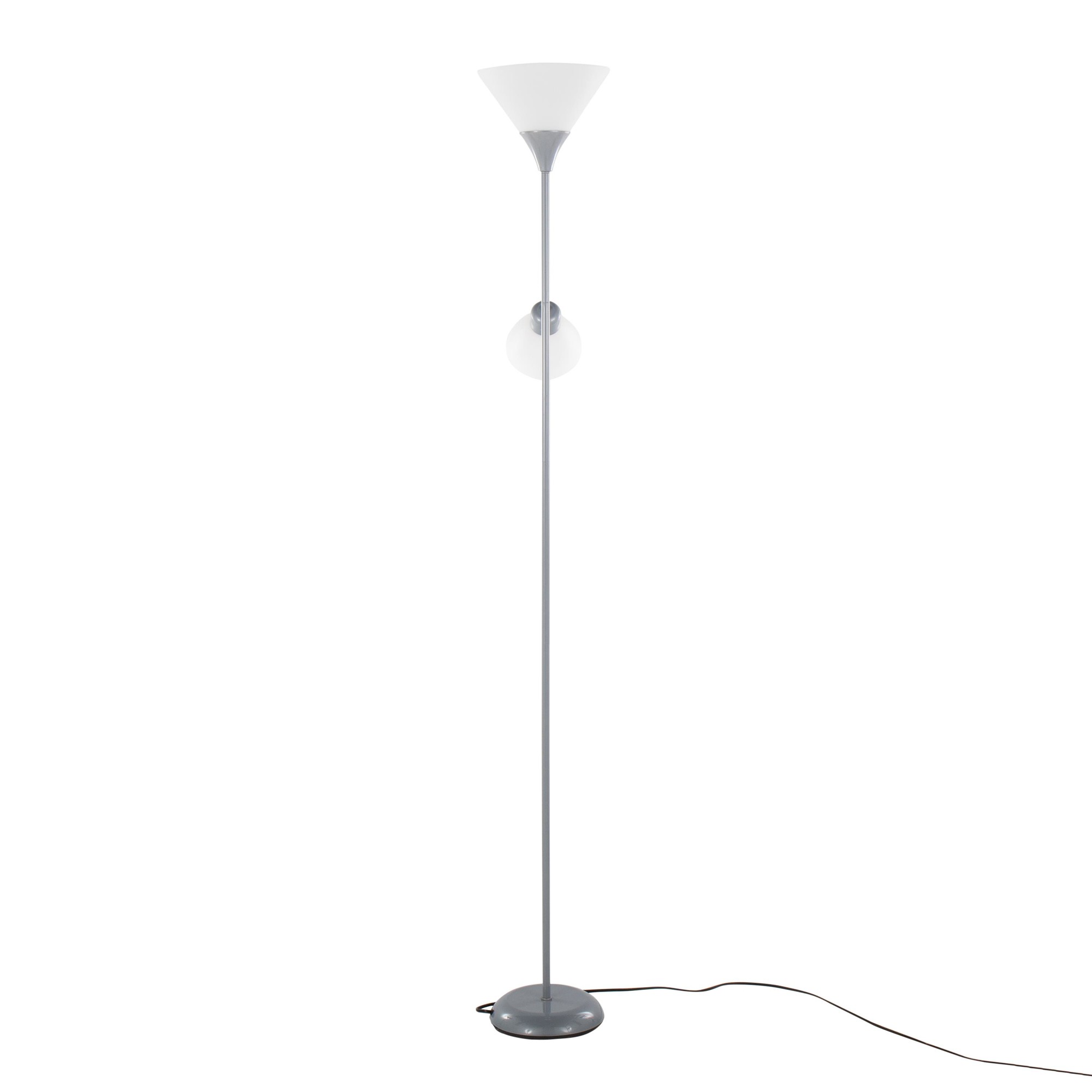 The dual-head design and adjustable arms let you customize the lighting to suit your needs, whether you’re reading, working, or simply relaxing. The silver finish and frosted white plastic shades add a touch of contemporary style to any room.
